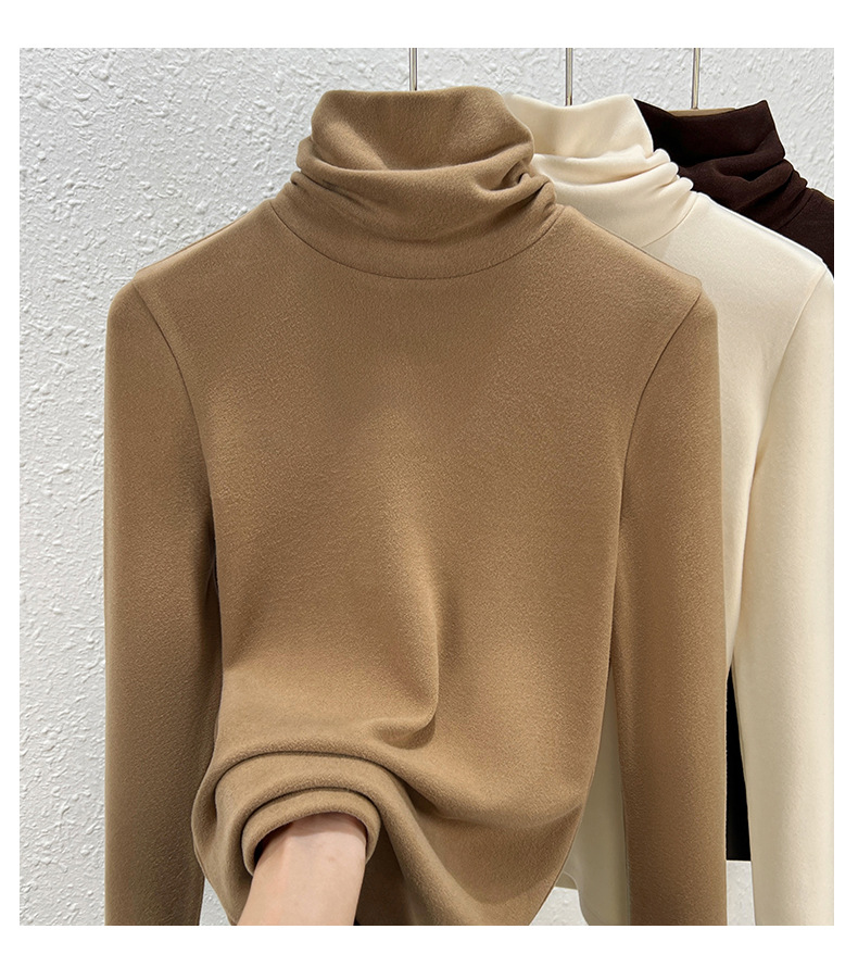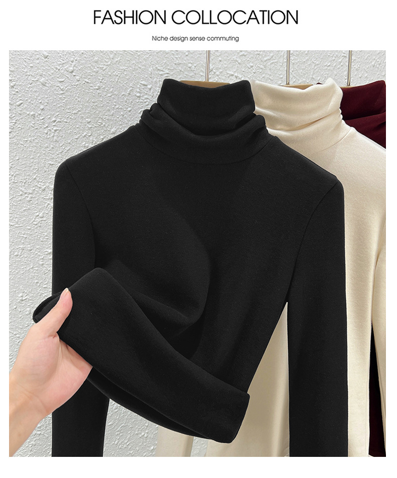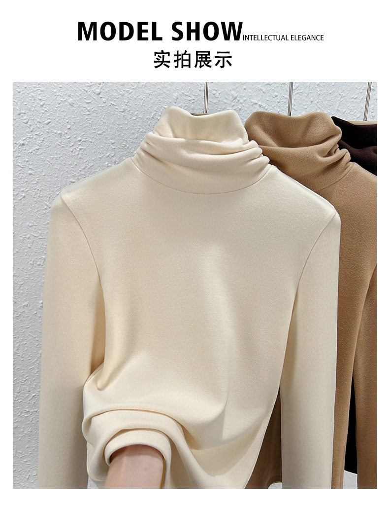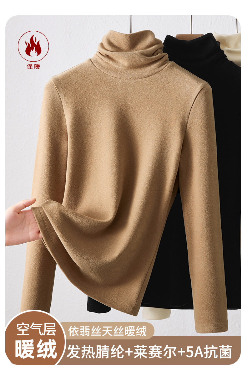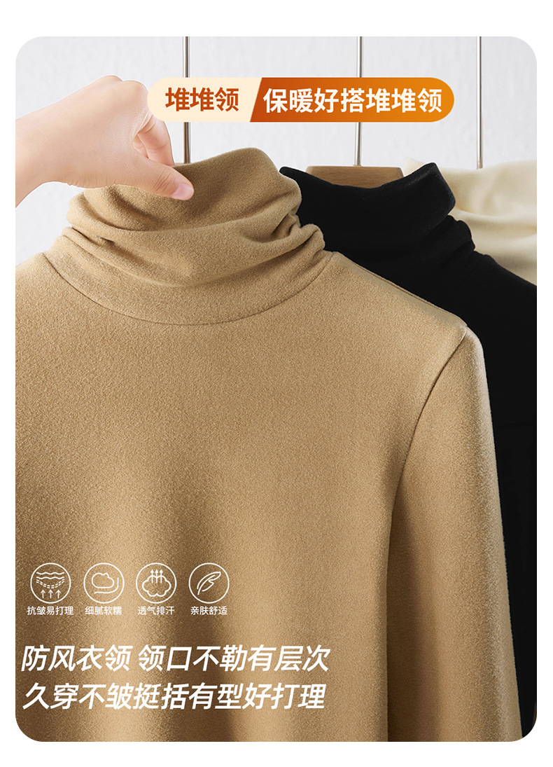 丁摩 高领双面天丝绒打底衫女秋冬加绒加厚内搭磨毛堆堆领上衣5ZF-M642