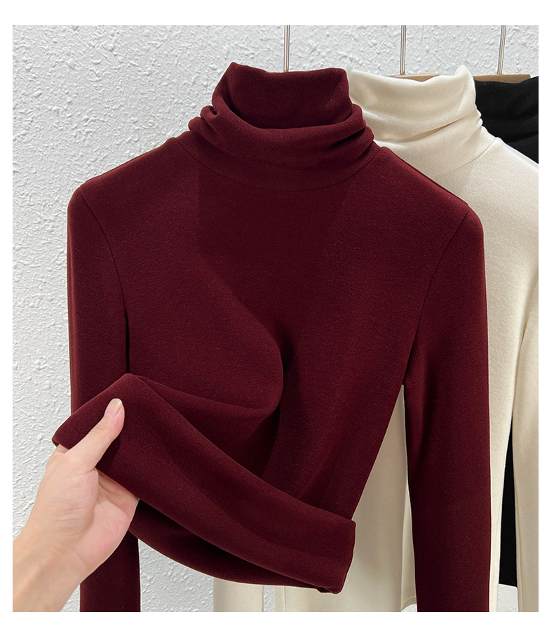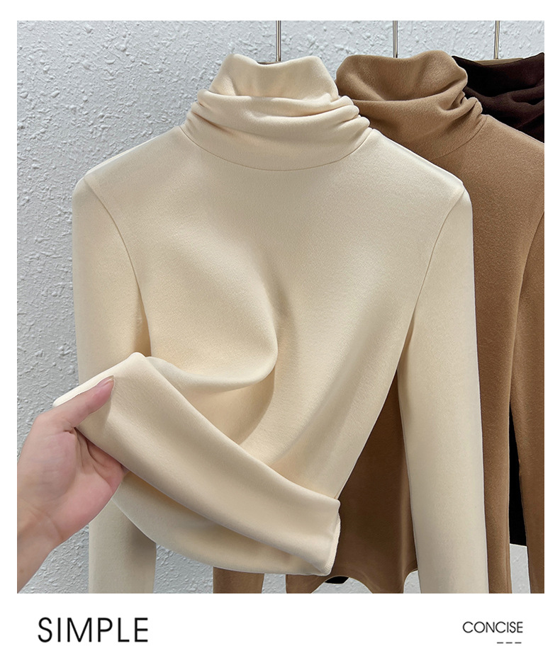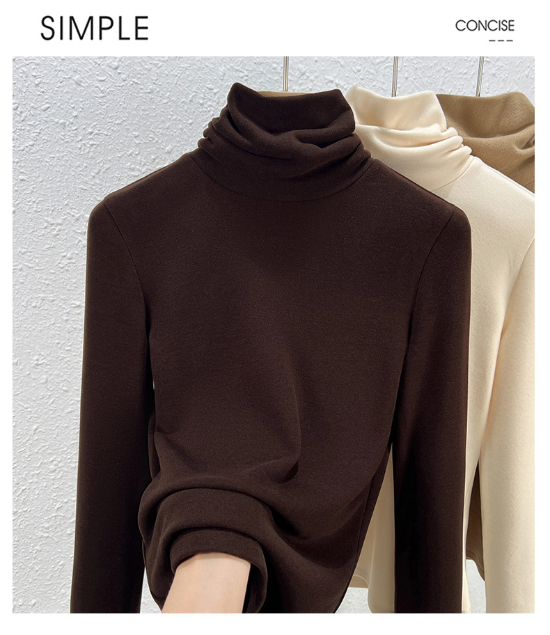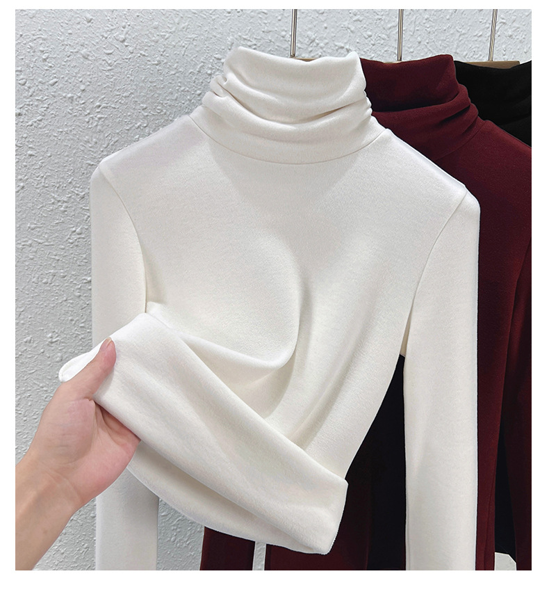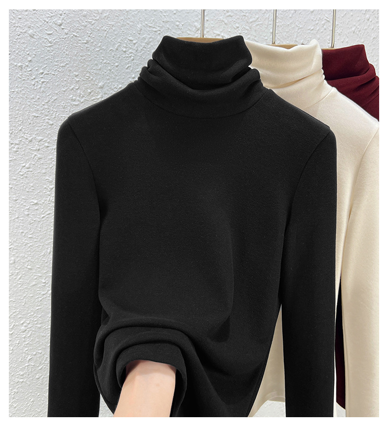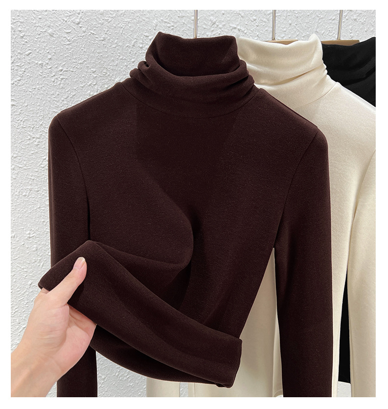 丁摩 高领双面天丝绒打底衫女秋冬加绒加厚内搭磨毛堆堆领上衣5ZF-M642