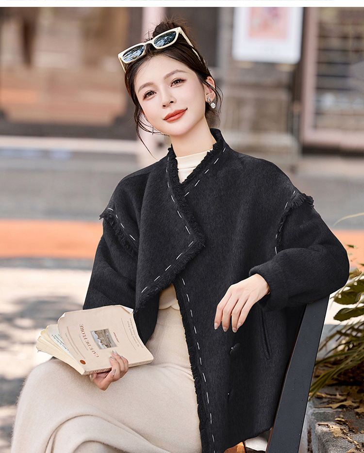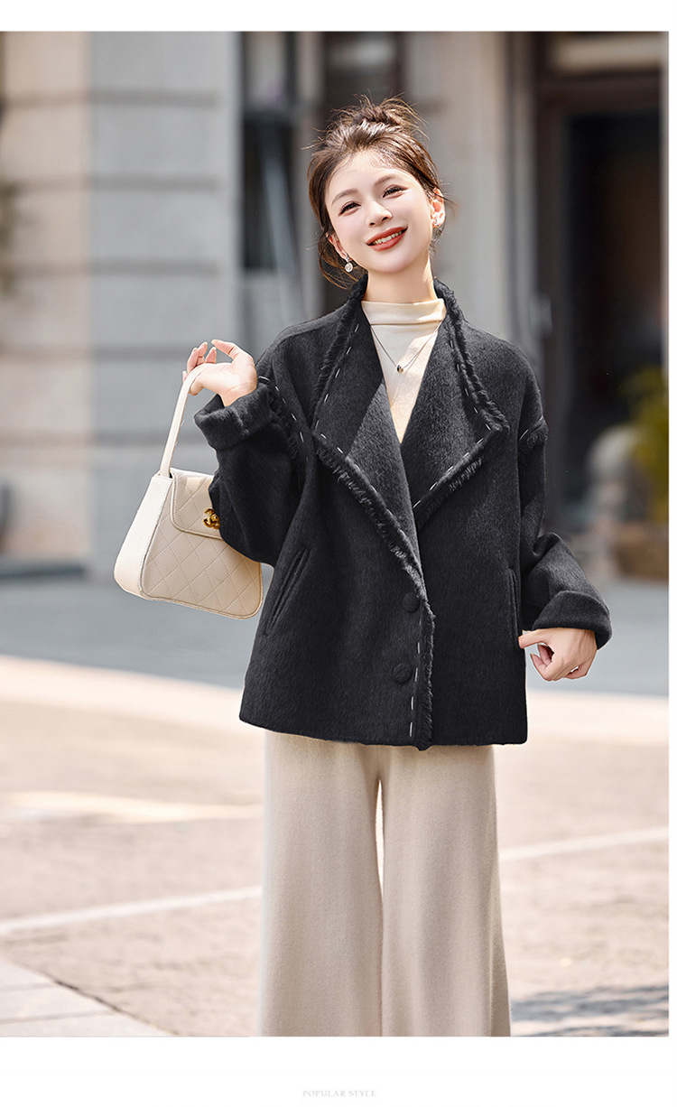 休闲风毛呢大衣女2025秋冬新韩版时尚宽松大翻领短款双面羊毛外套 商品图2