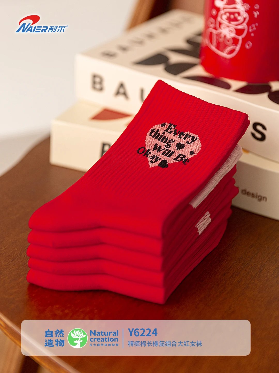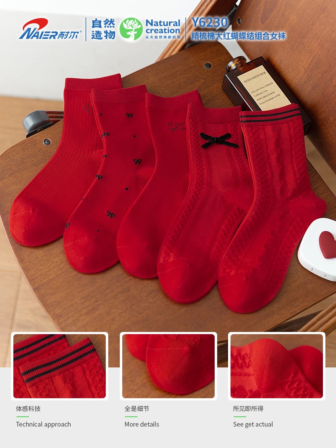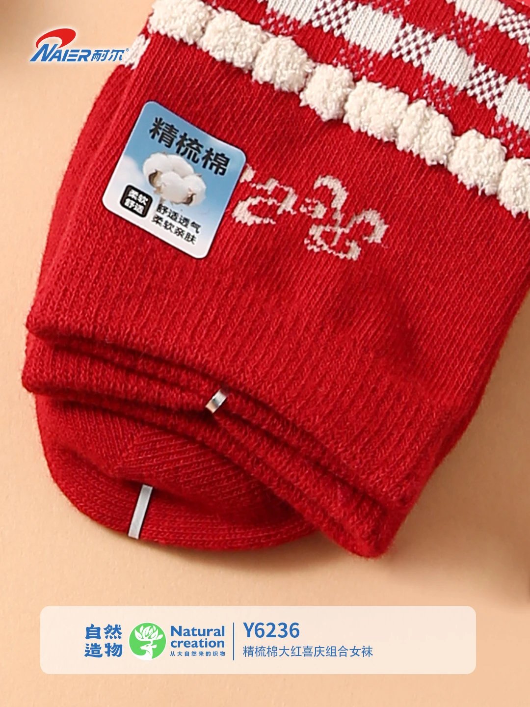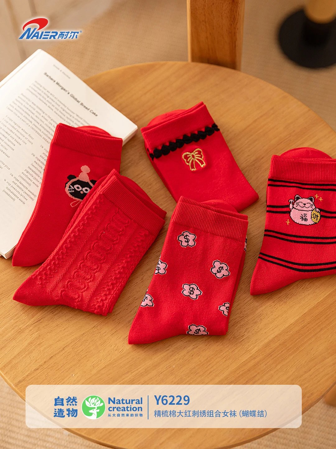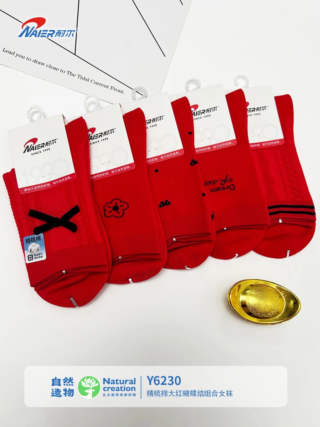5双【新疆阳光棉 添加莱卡纤维 高弹不紧绷】耐尔精梳棉本命年鸿运袜5双装