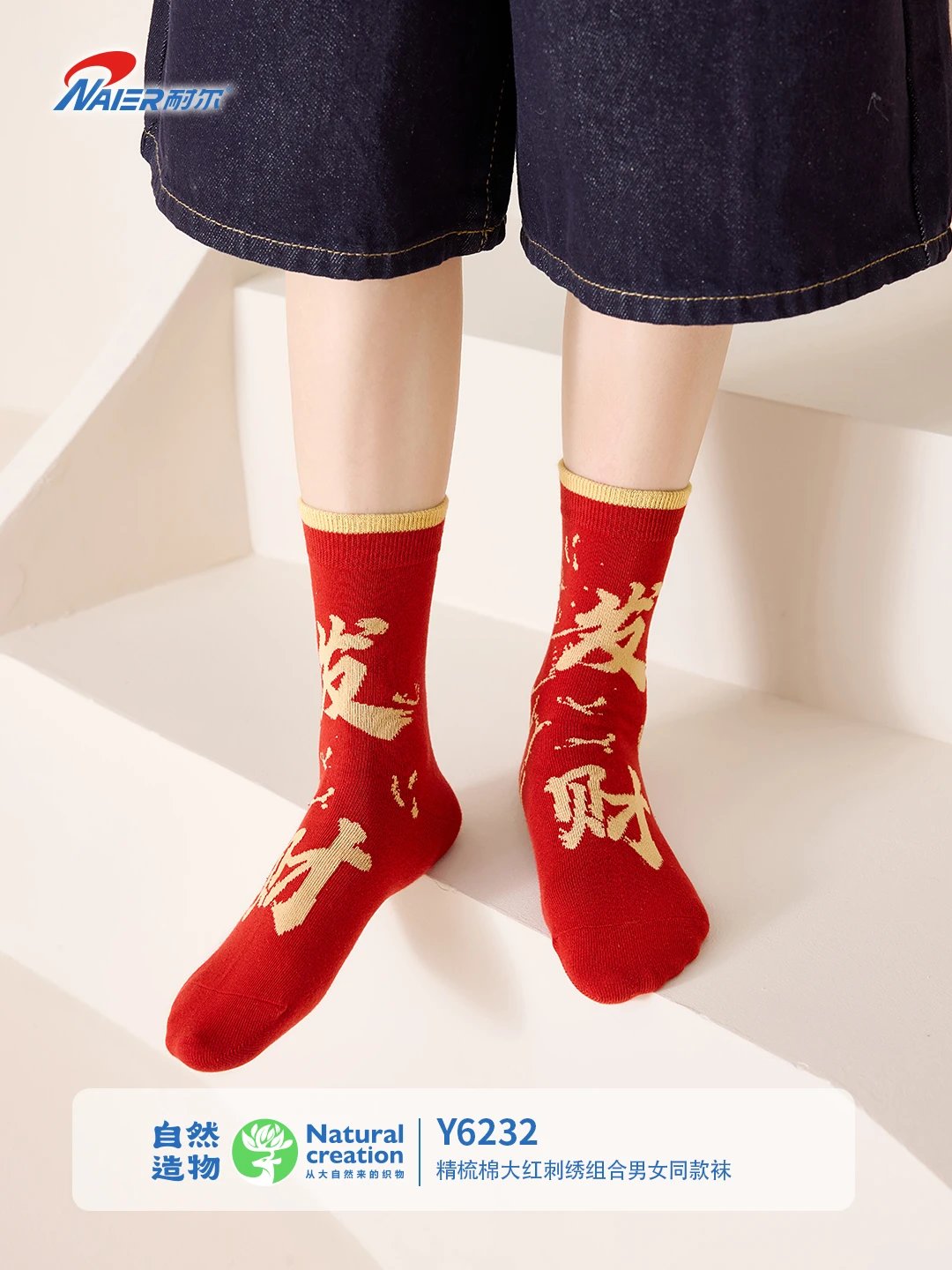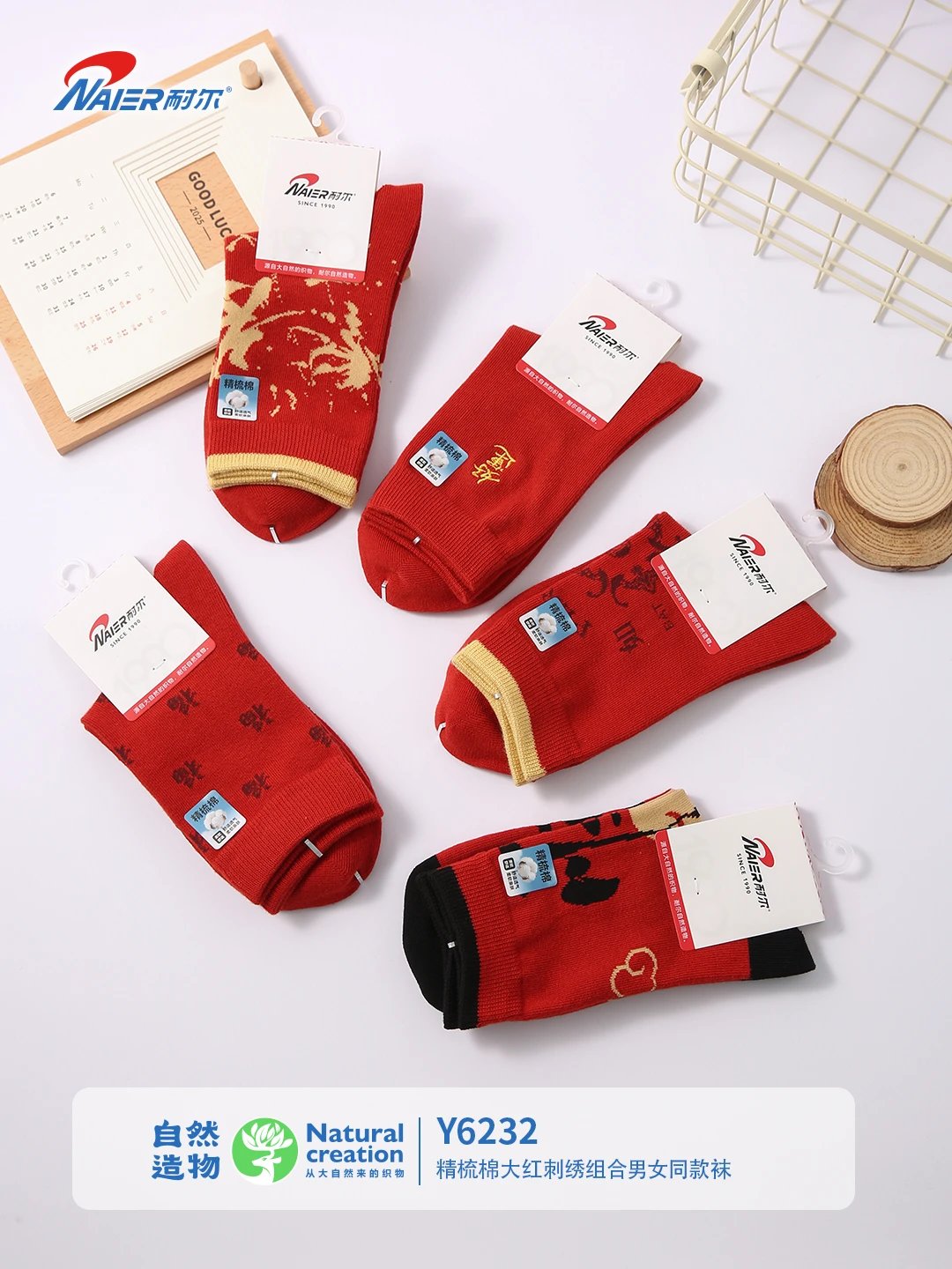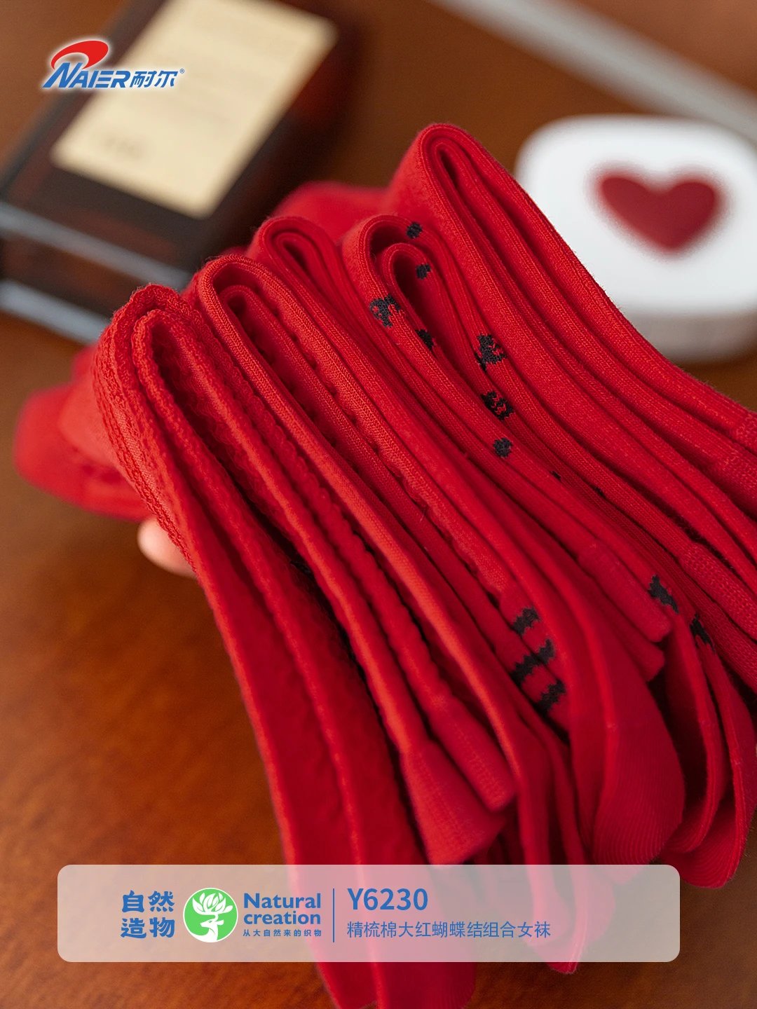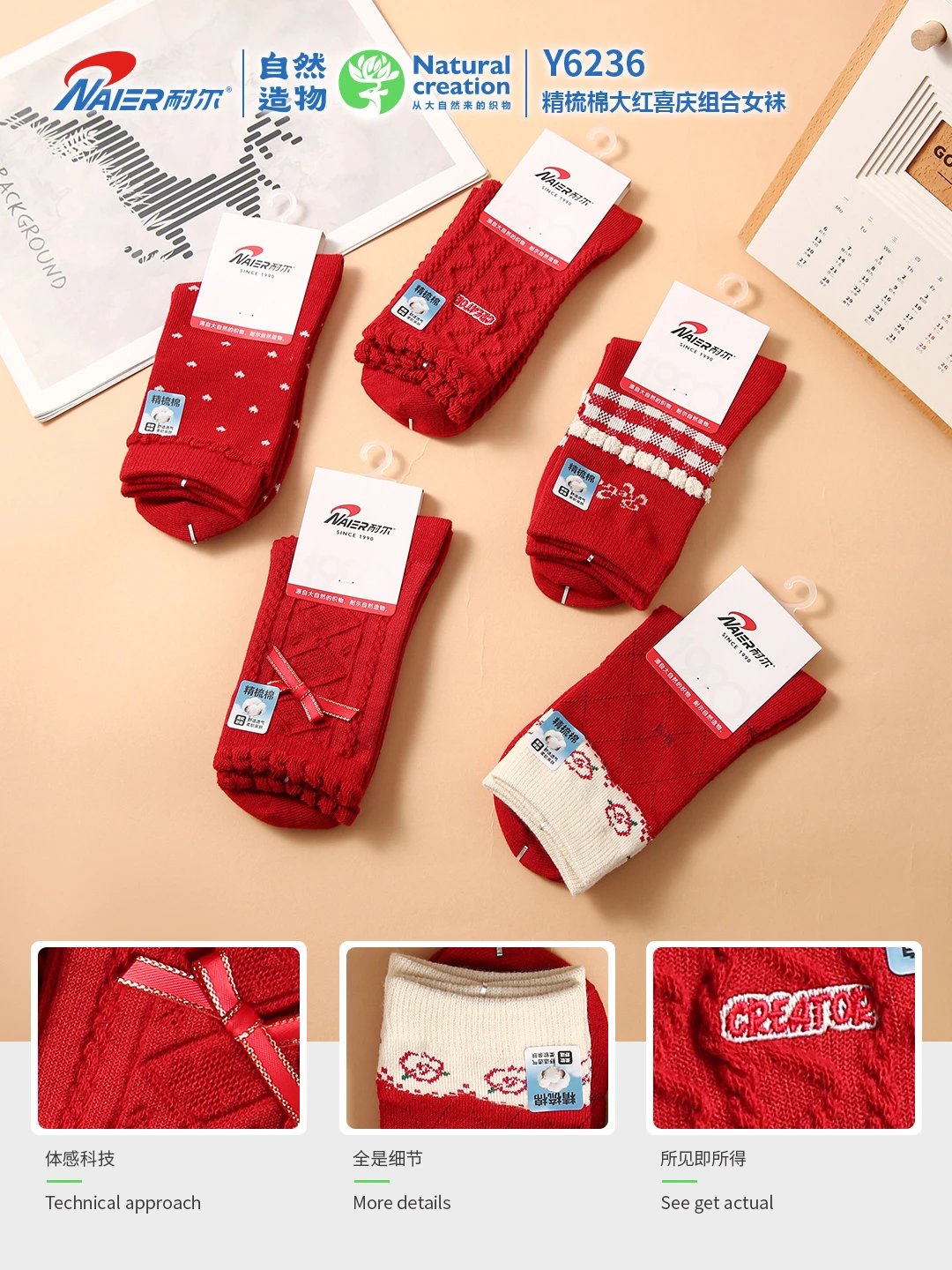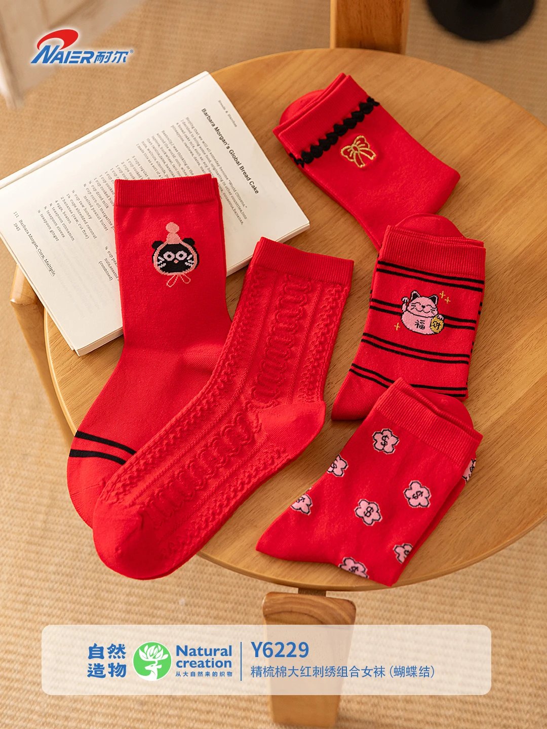 5双【新疆阳光棉 添加莱卡纤维 高弹不紧绷】耐尔精梳棉本命年鸿运袜5双装