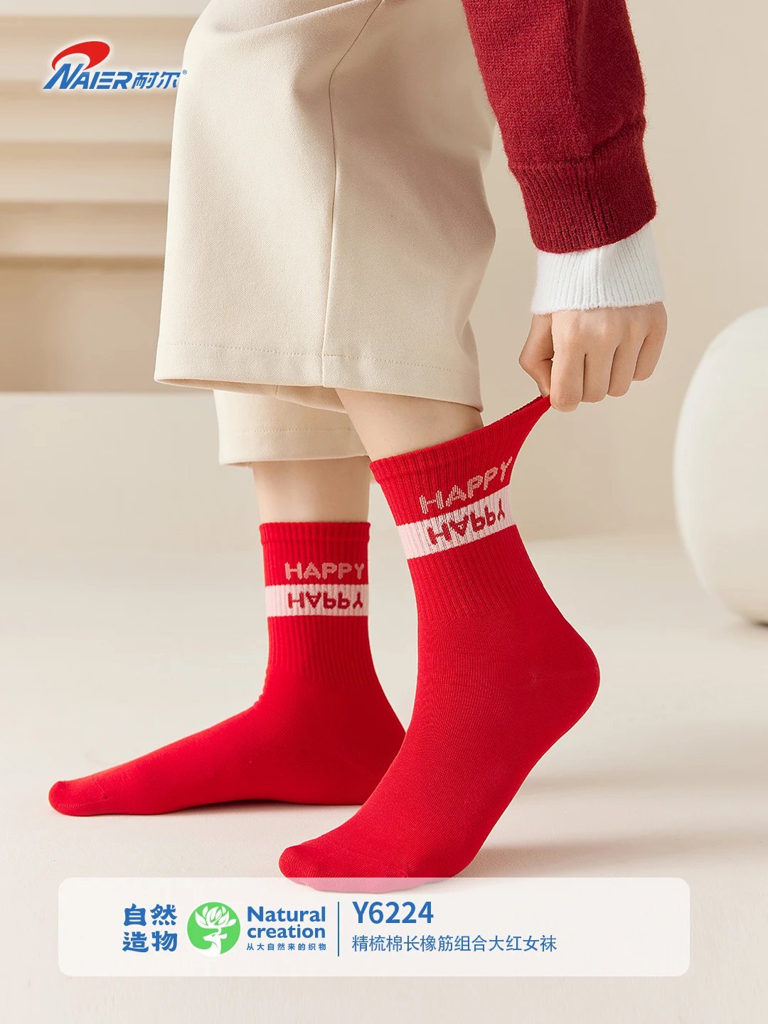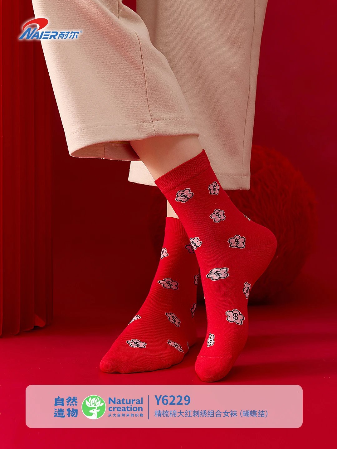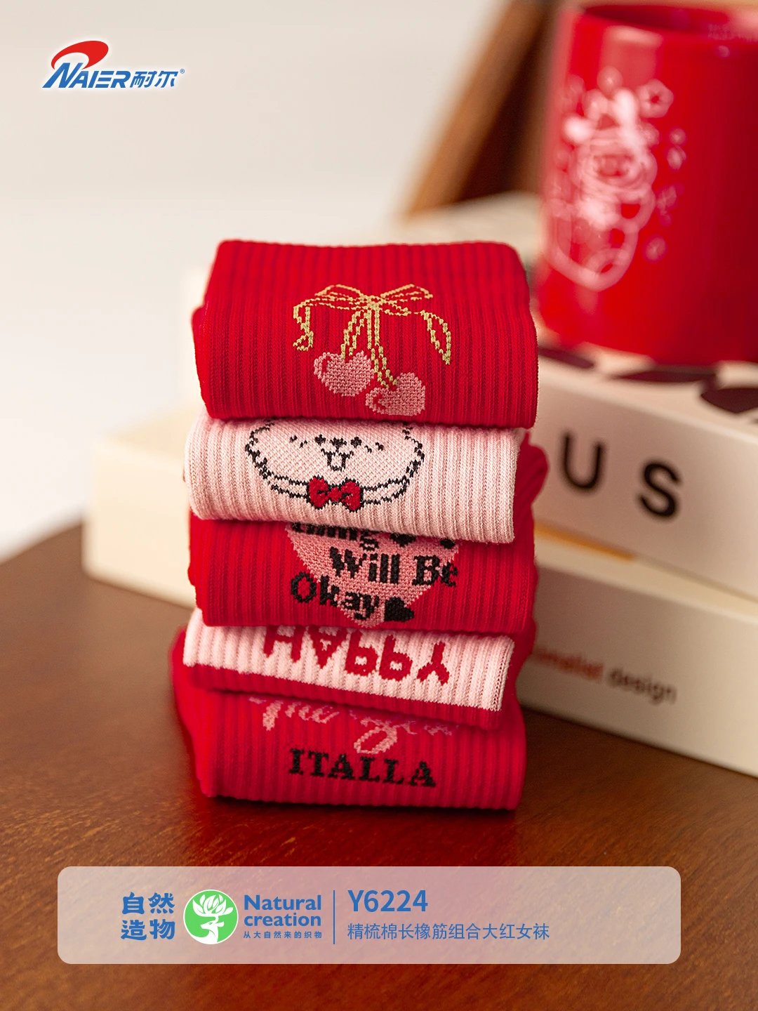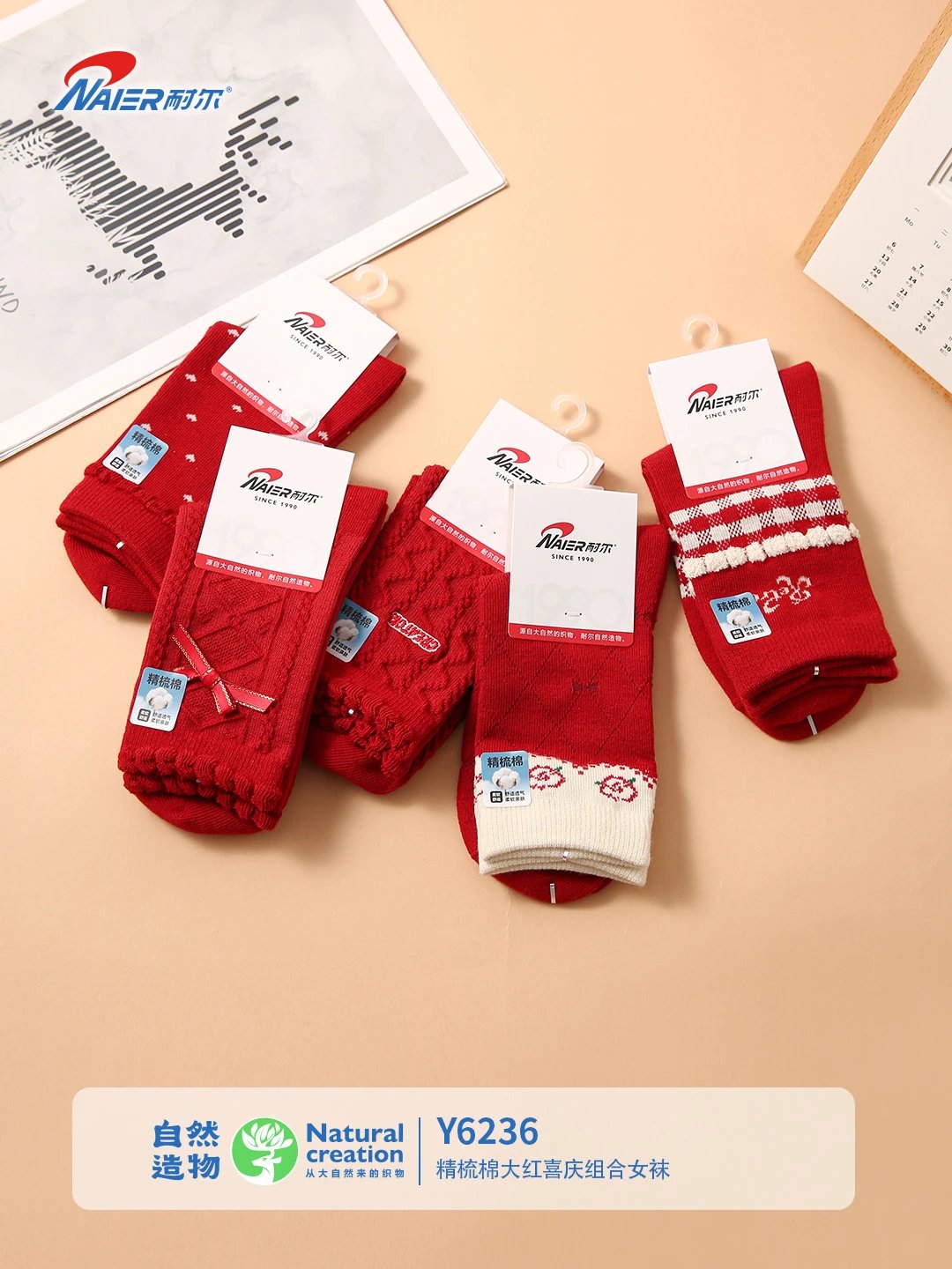 5双【新疆阳光棉 添加莱卡纤维 高弹不紧绷】耐尔精梳棉本命年鸿运袜5双装