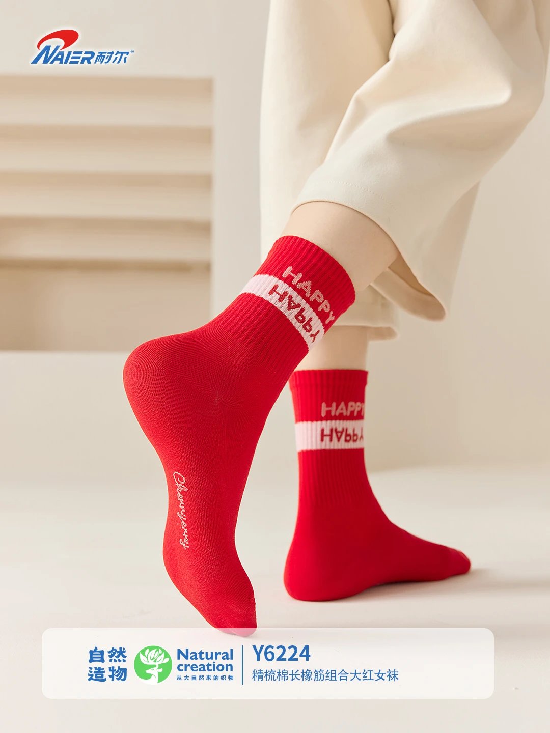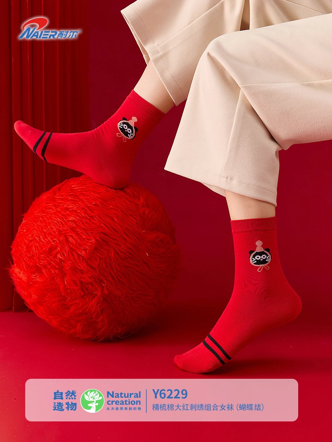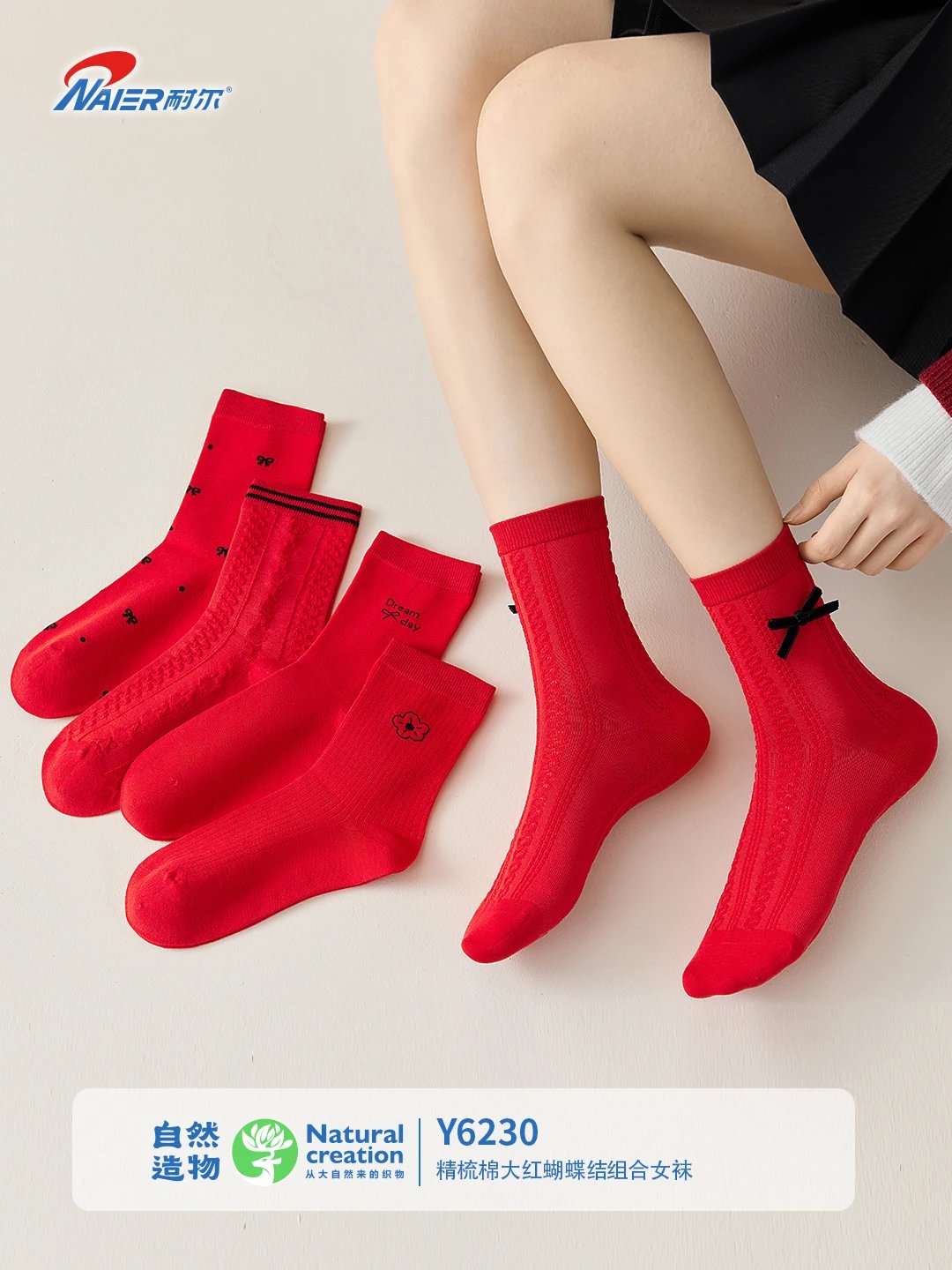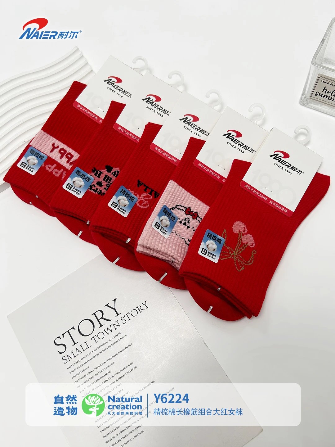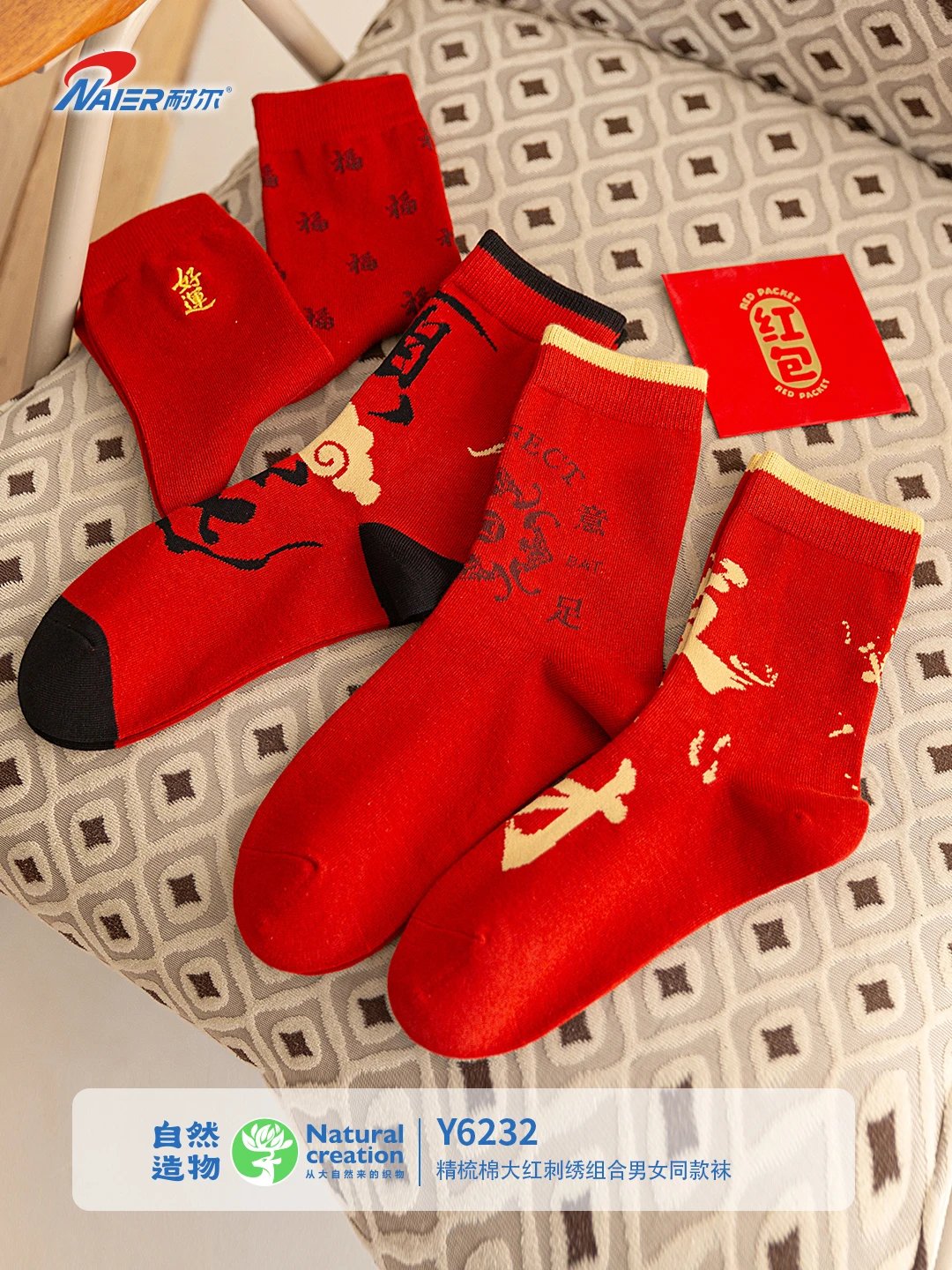 5双【新疆阳光棉 添加莱卡纤维 高弹不紧绷】耐尔精梳棉本命年鸿运袜5双装