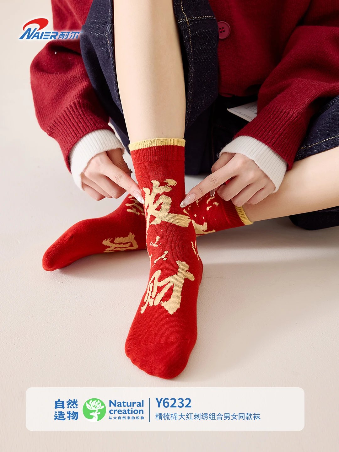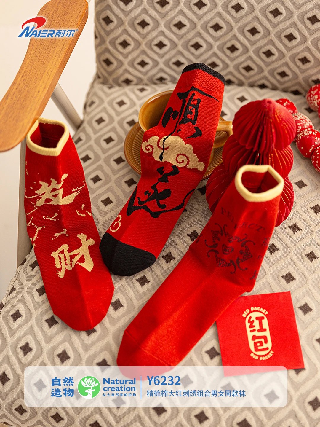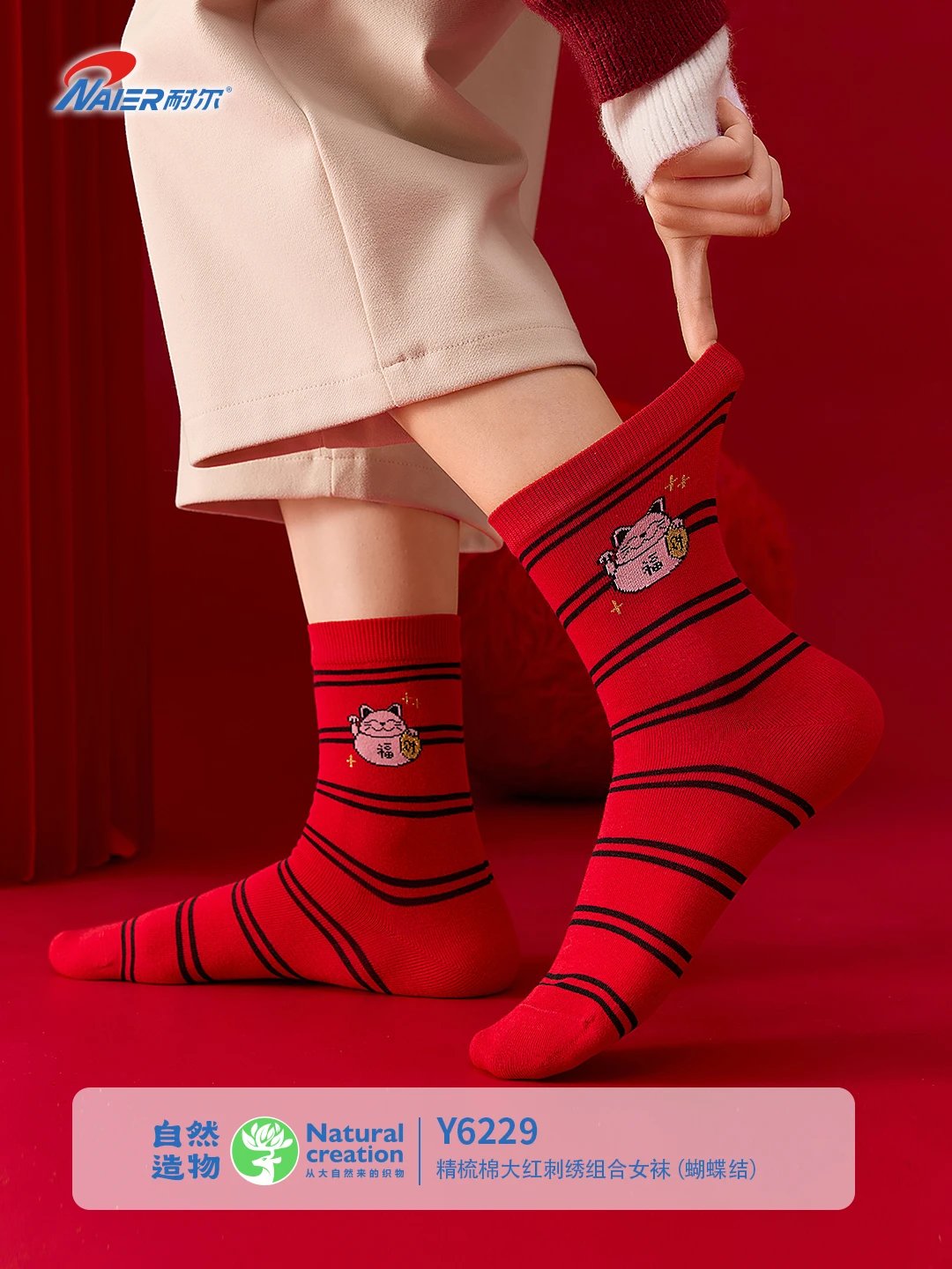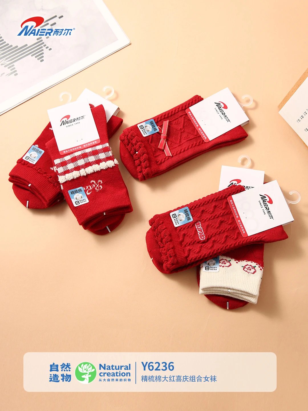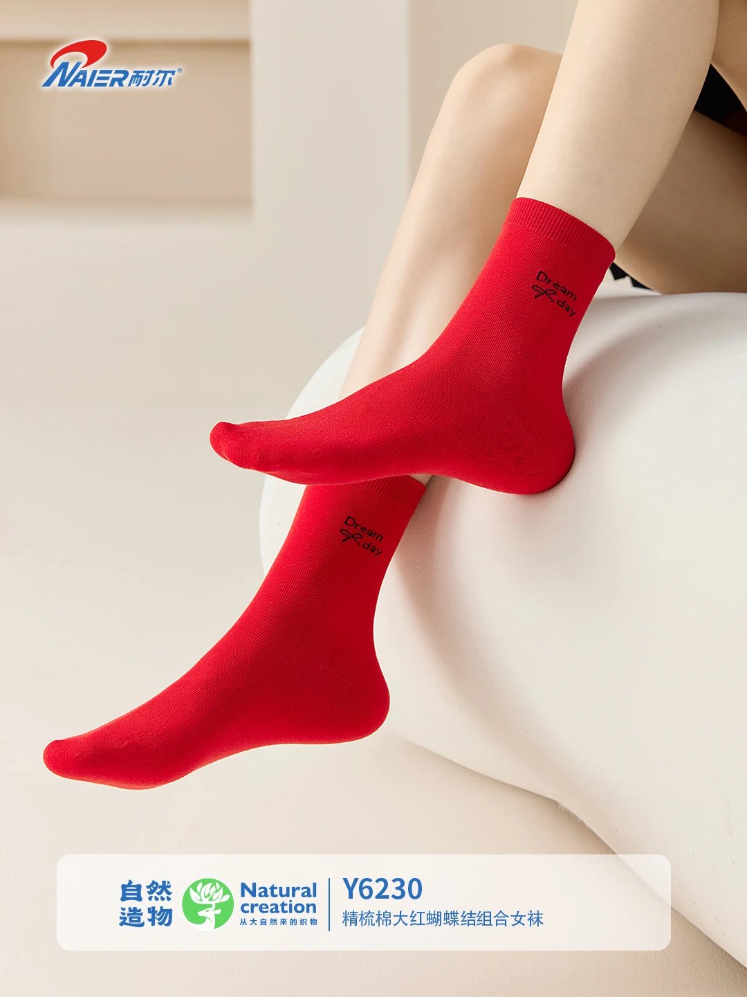 5双【新疆阳光棉 添加莱卡纤维 高弹不紧绷】耐尔精梳棉本命年鸿运袜5双装
