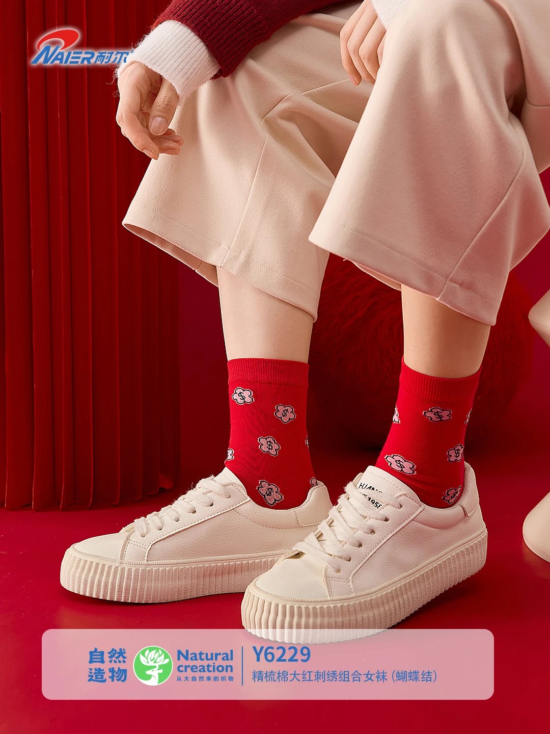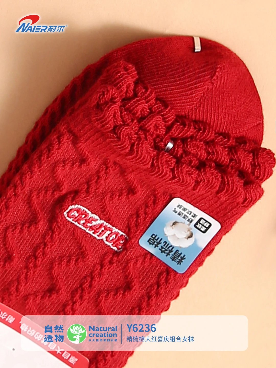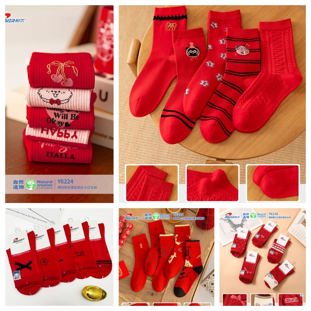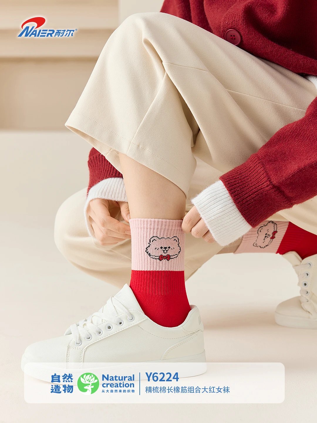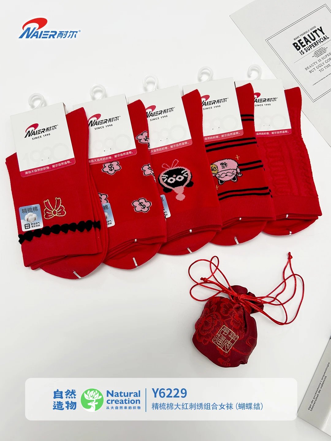 5双【新疆阳光棉 添加莱卡纤维 高弹不紧绷】耐尔精梳棉本命年鸿运袜5双装