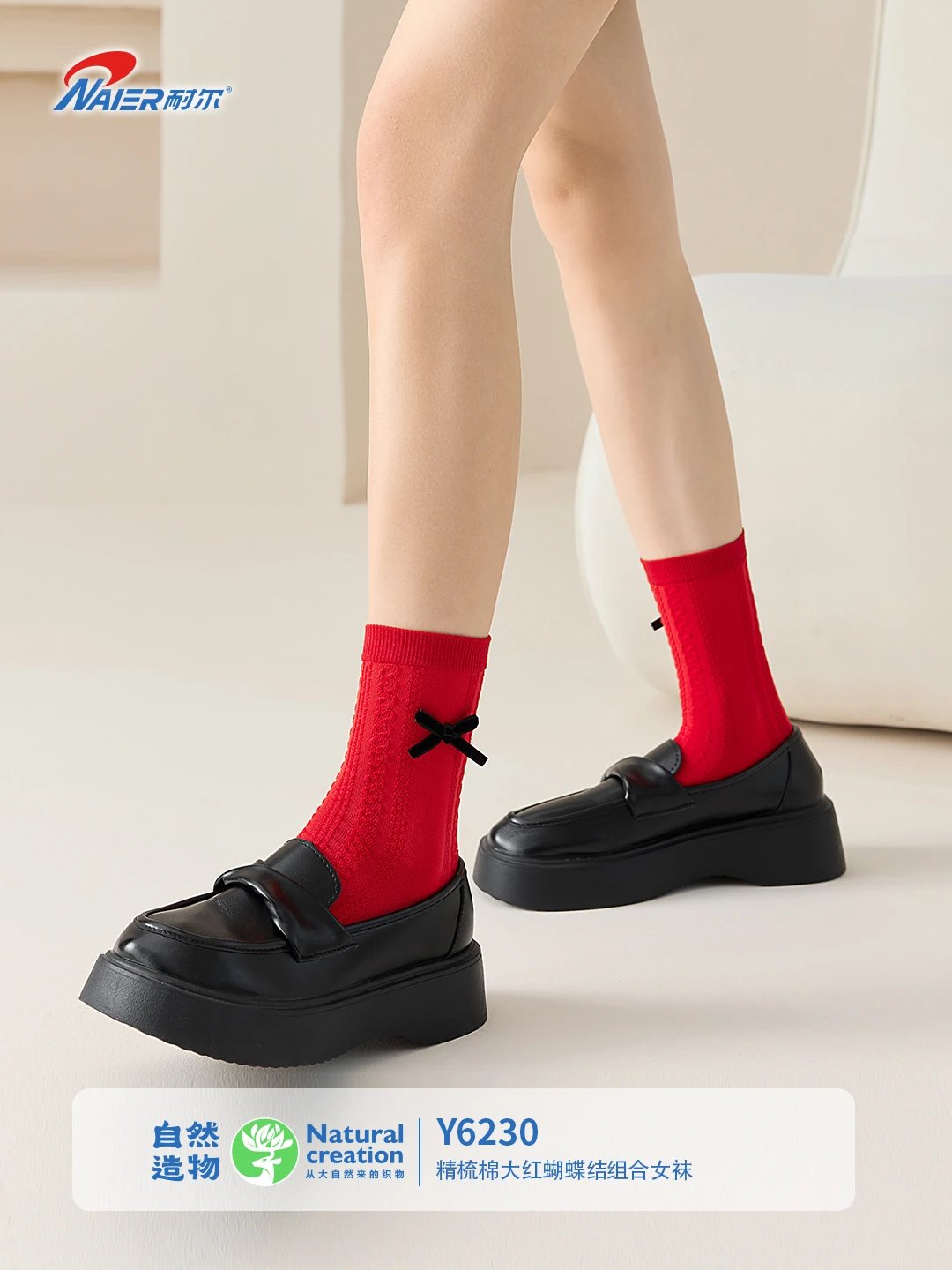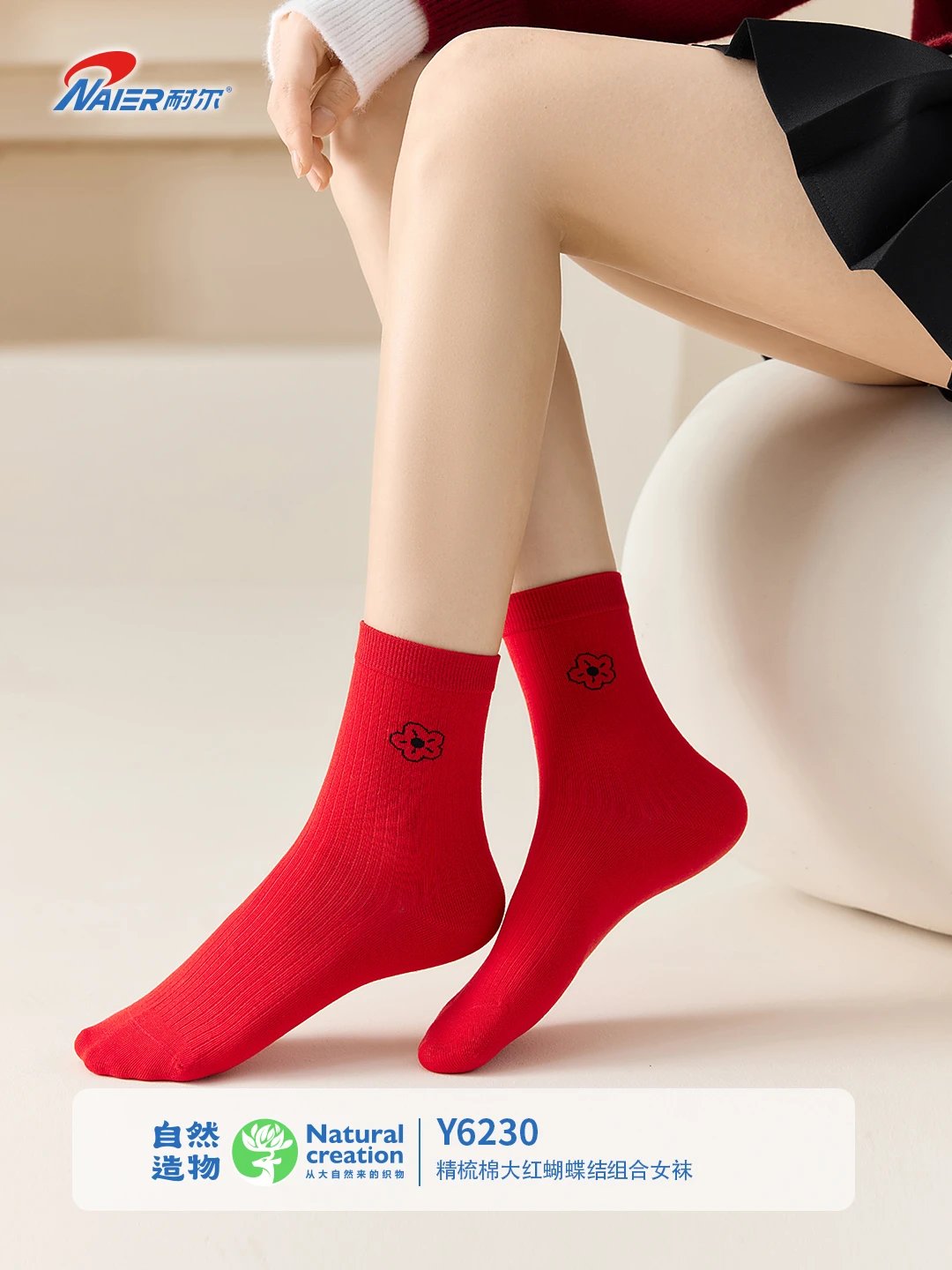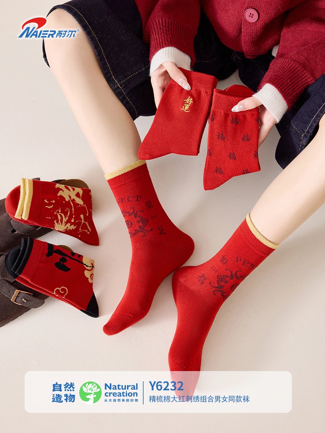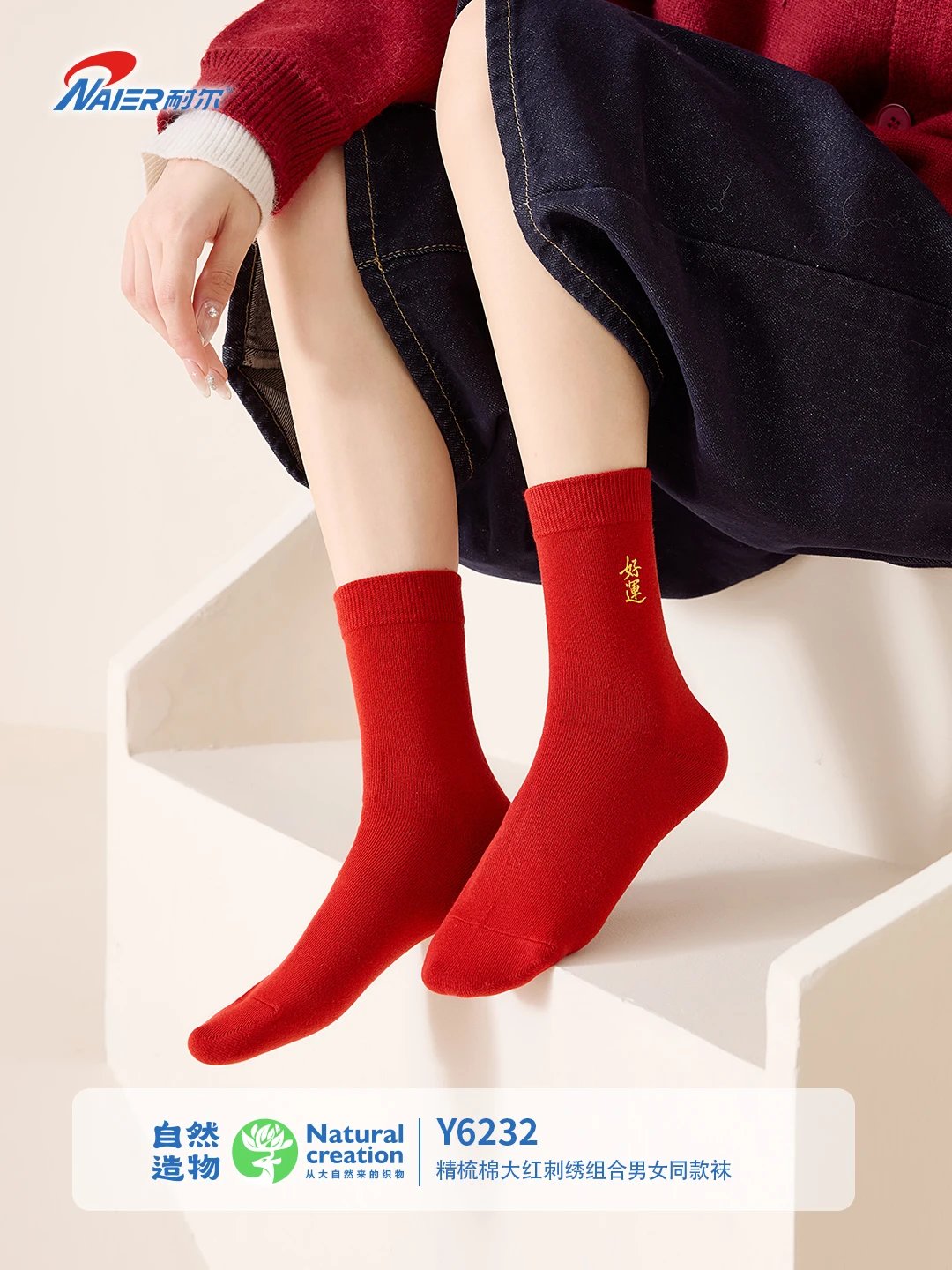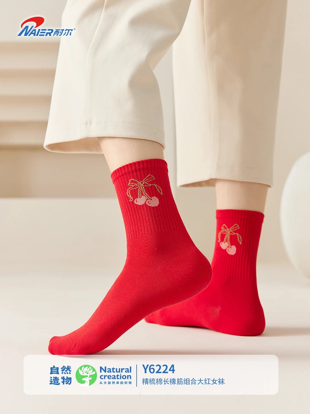 5双【新疆阳光棉 添加莱卡纤维 高弹不紧绷】耐尔精梳棉本命年鸿运袜5双装