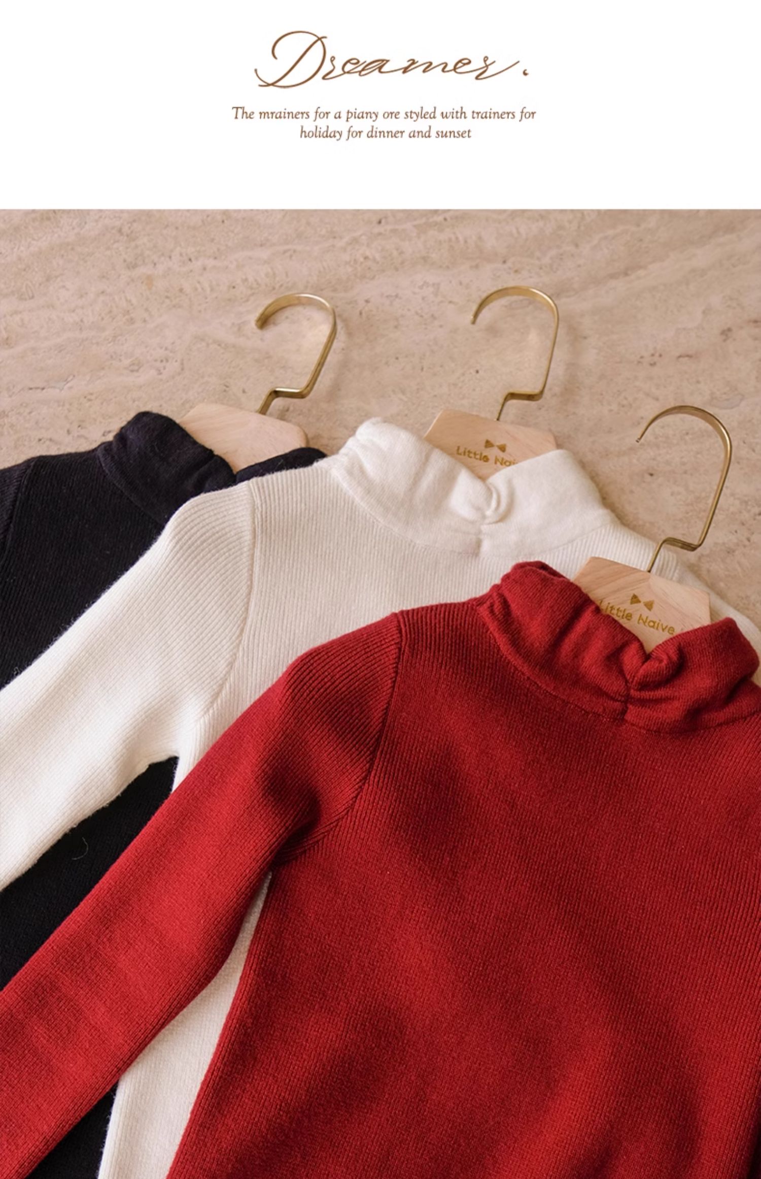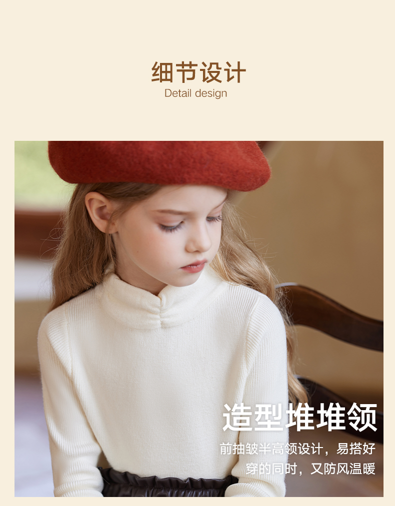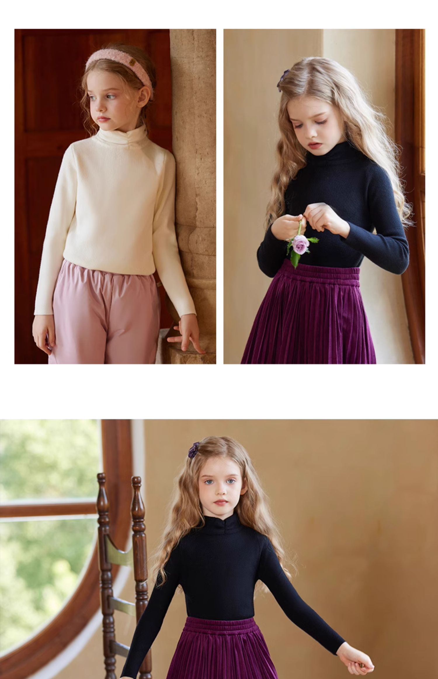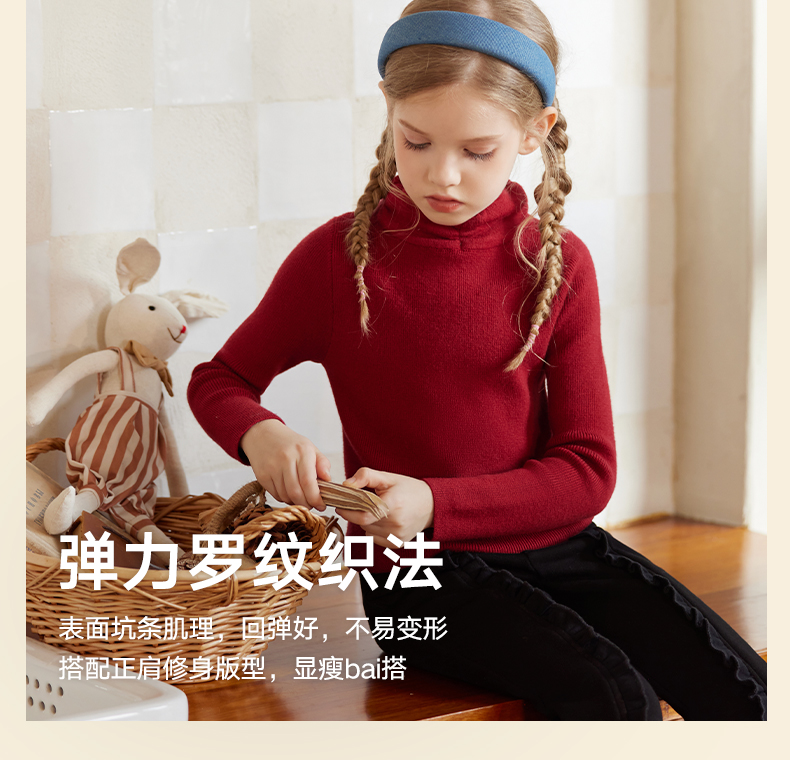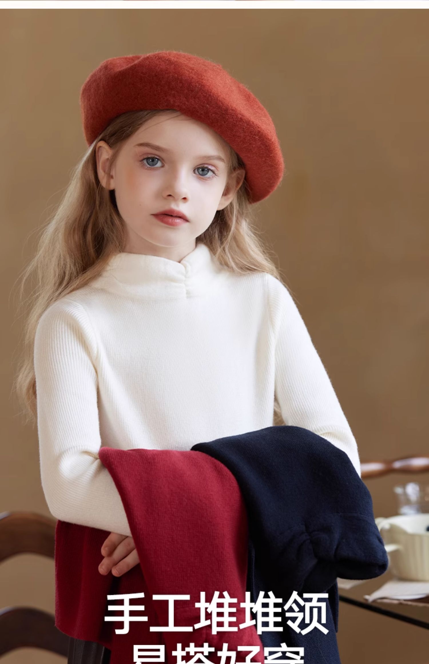LittleNaive女童毛衣冬季新款堆堆领防风打底衫儿童高领针织衫