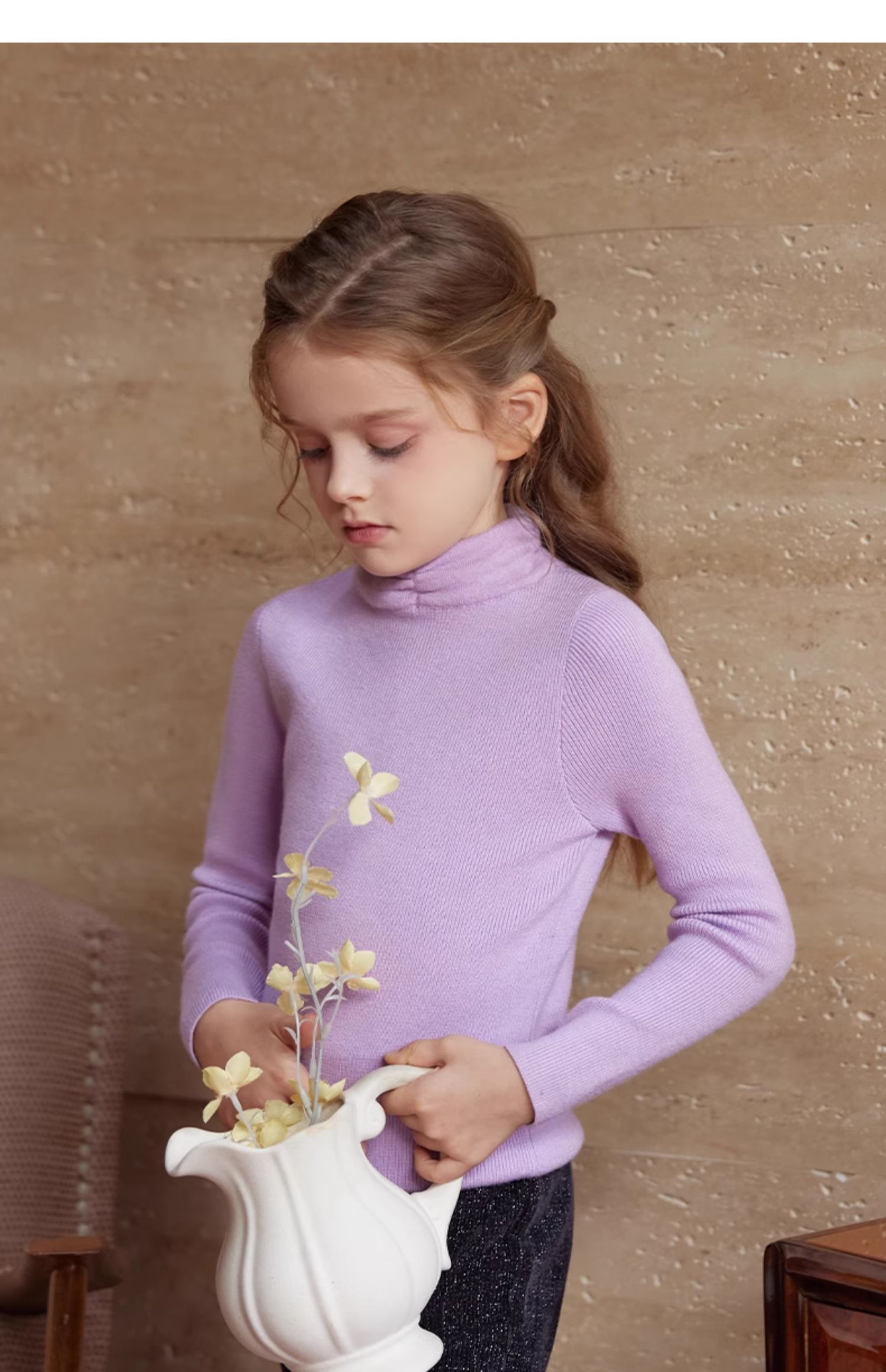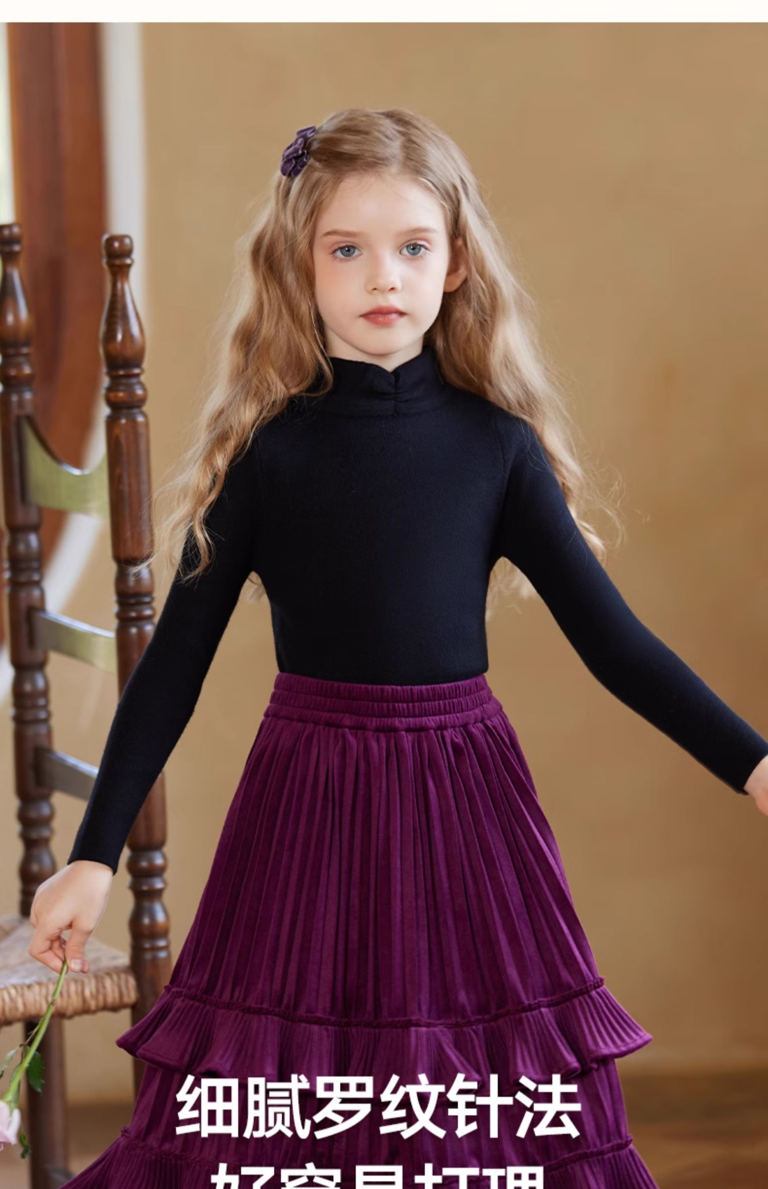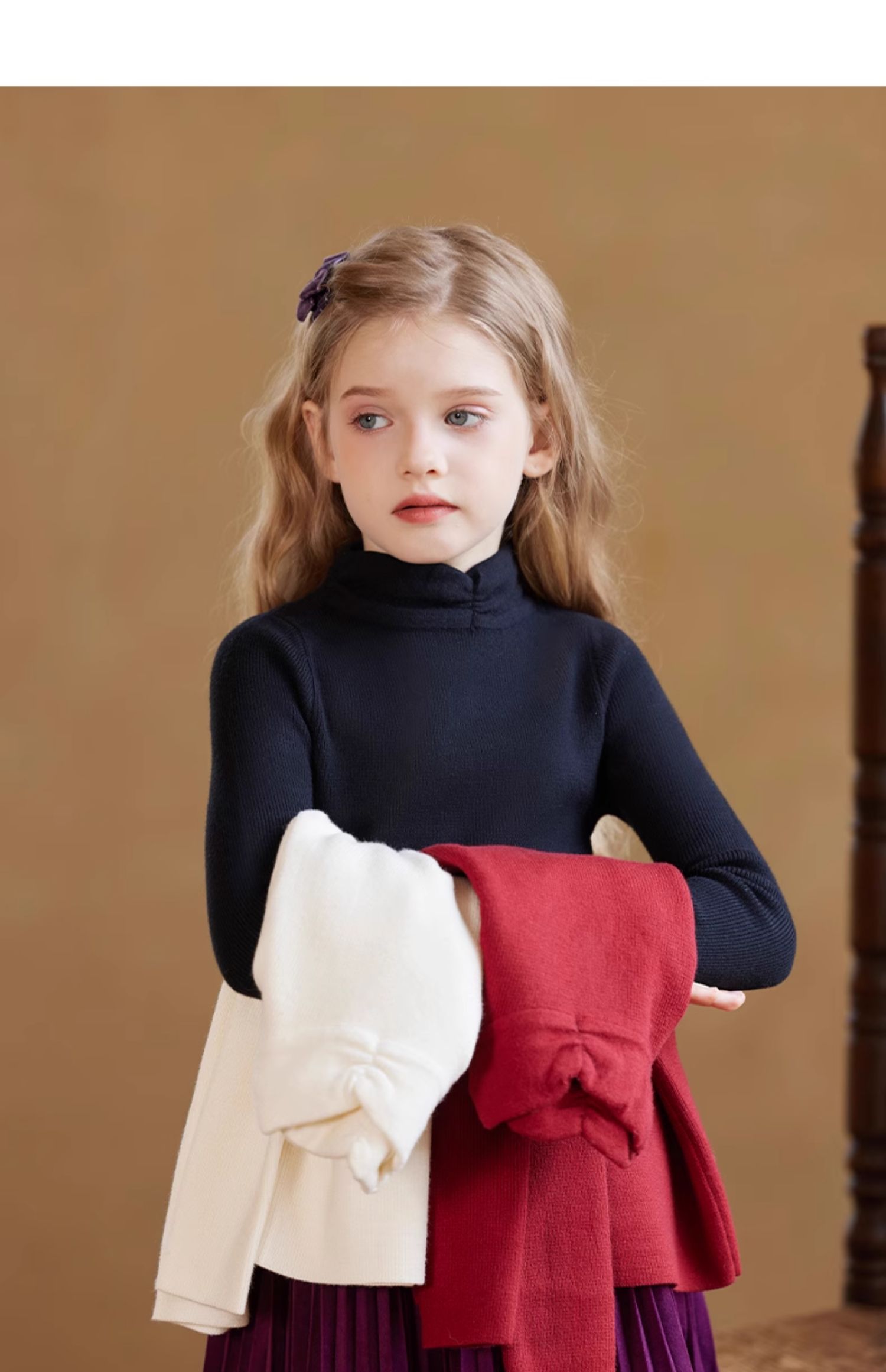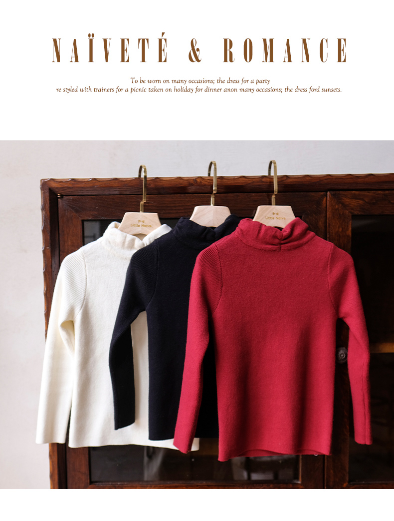 LittleNaive女童毛衣冬季新款堆堆领防风打底衫儿童高领针织衫