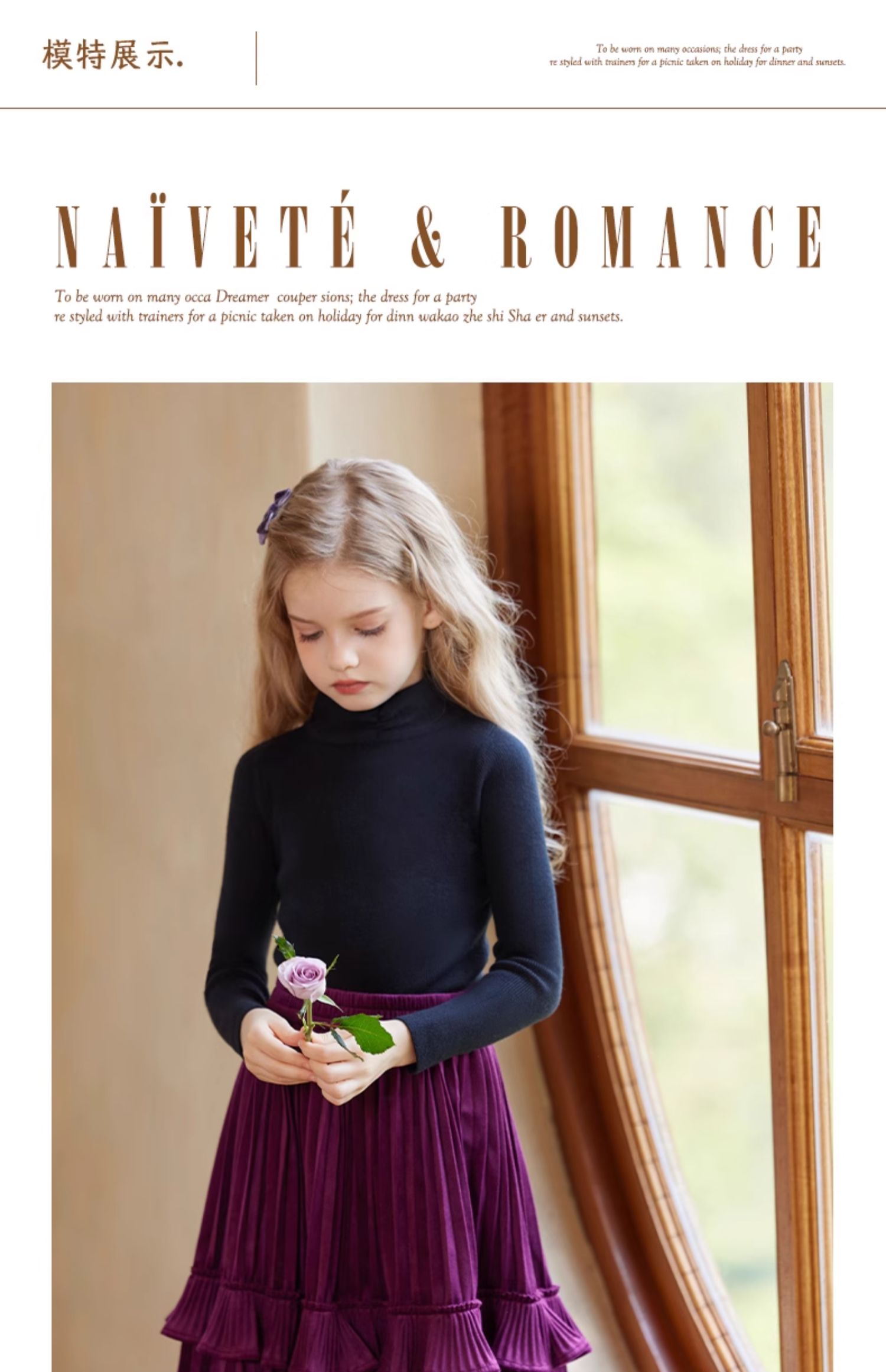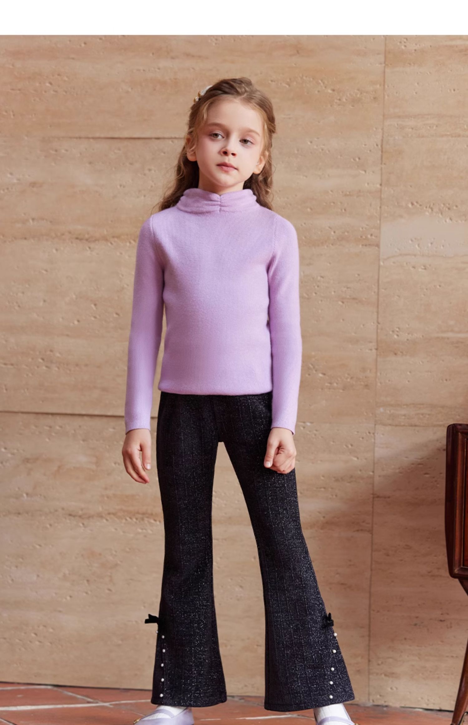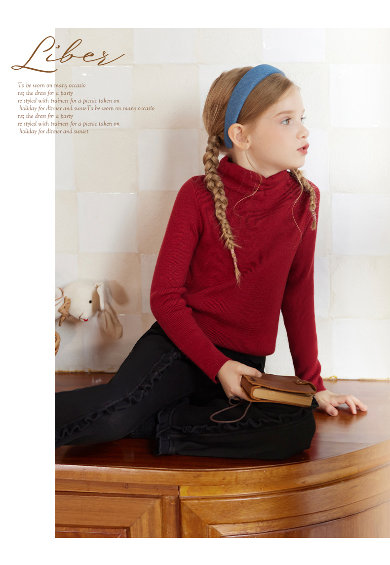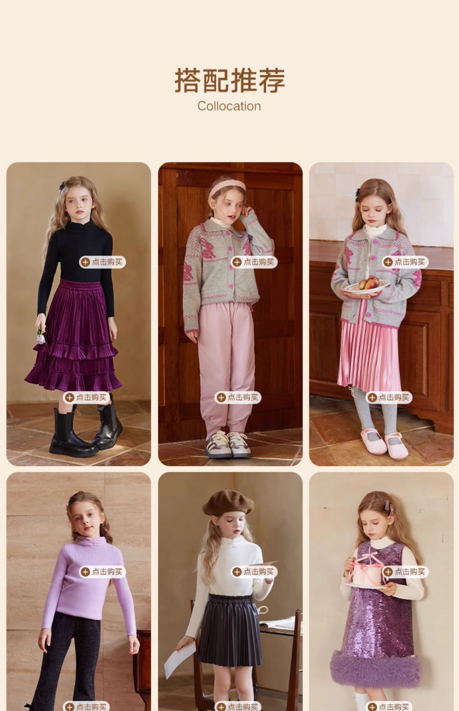 LittleNaive女童毛衣冬季新款堆堆领防风打底衫儿童高领针织衫