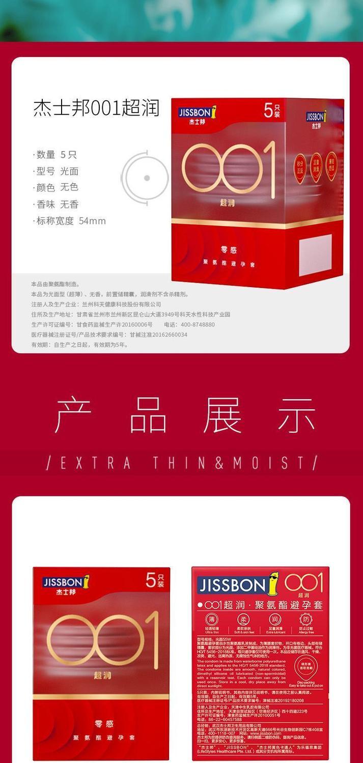 【年末亏本清仓】杰士邦001超润避孕套安全套 5只装