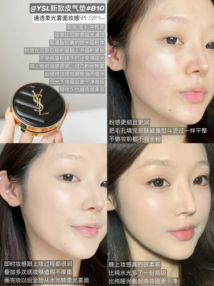 👑YSL 圣罗兰皮革气垫 SPF23(磁吸扣) 🙌新升级:微米级细腻粉质,细节处不卡纹,整脸妆若天城 ✨新升级:水雾光遮瑕分子,精华水包裹遮瑕体,层层叠加不假面 💥高定妆效,自然通透,宛如第二层肌肤的自然光 🙌新升级:粉扑改为【菱形】更能照顾眼角鼻翼位置 💦它更薄、更养肤、更保湿,减少占用包包空间 💥新版本防晒值:防晒指数SPF23/PA++,帮你解决日常通勤防晒+底妆 #B10:象牙白色,适合偏白肤色 #B20:透亮白色,适合自然肤色