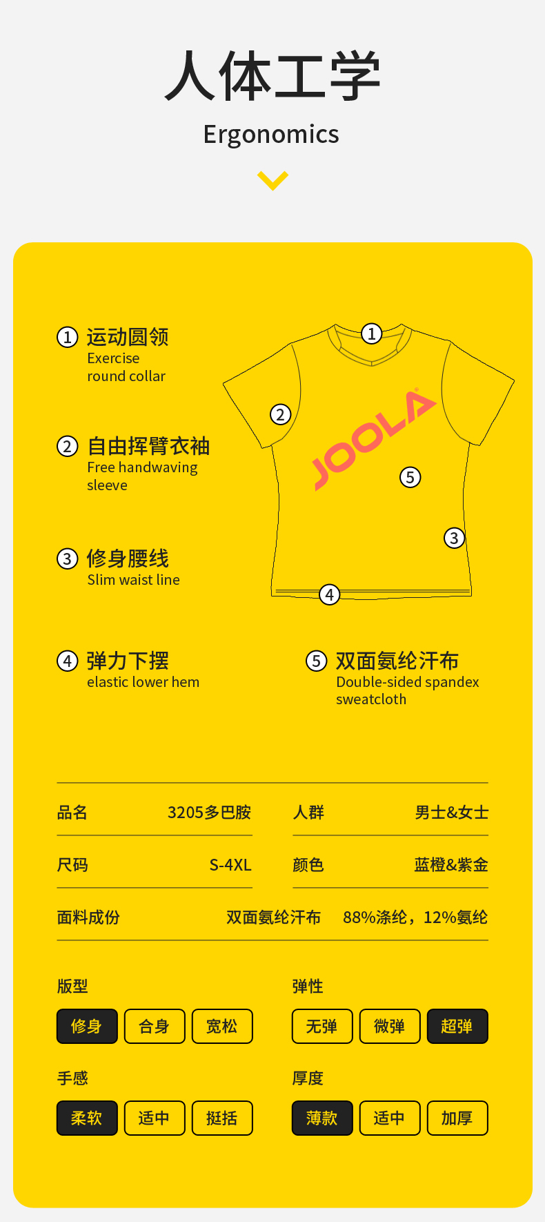 JOOLA优拉尤拉乒乓球服装男比赛服运动短袖上衣多巴胺
