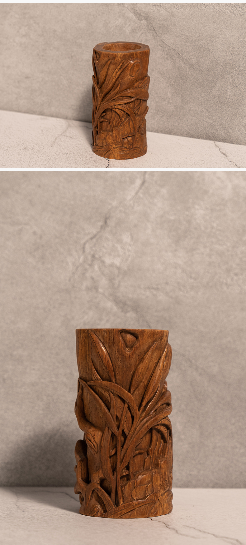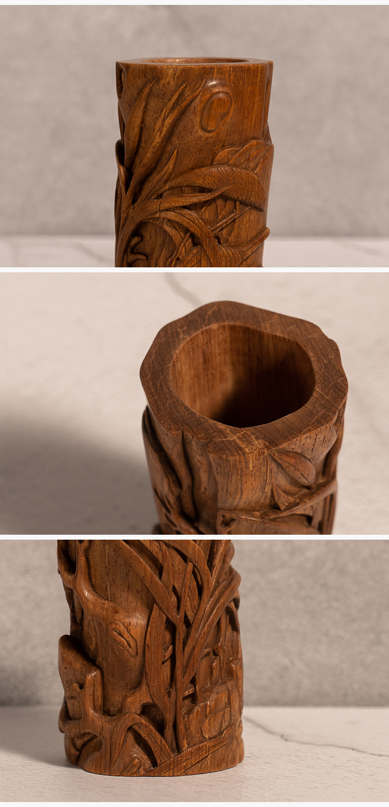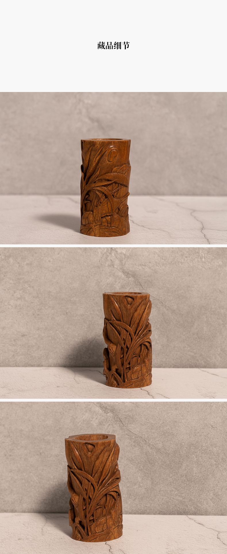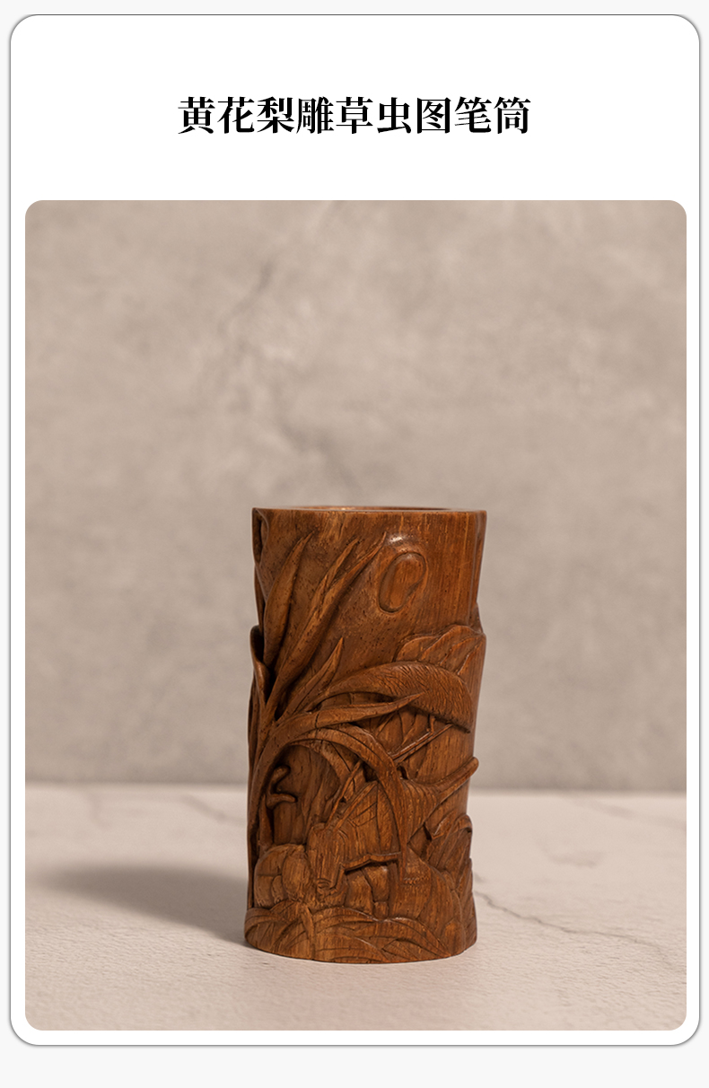 清 黄花梨百宝嵌花鸟诗文笔筒
