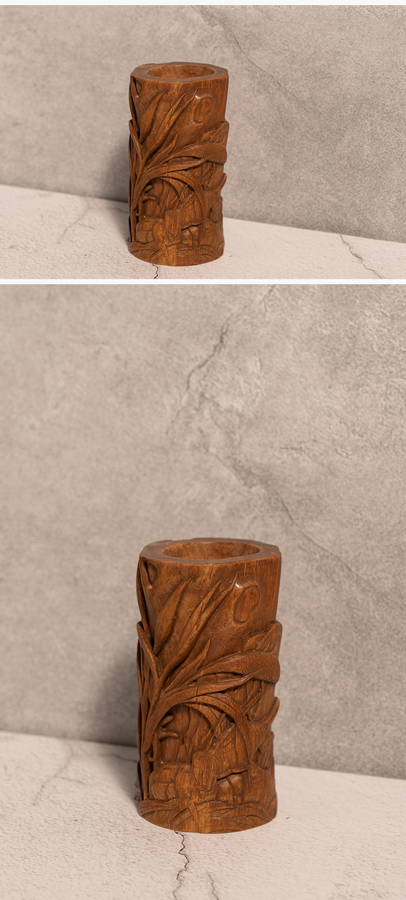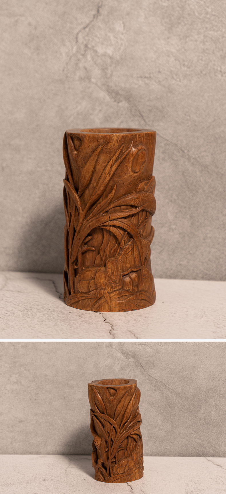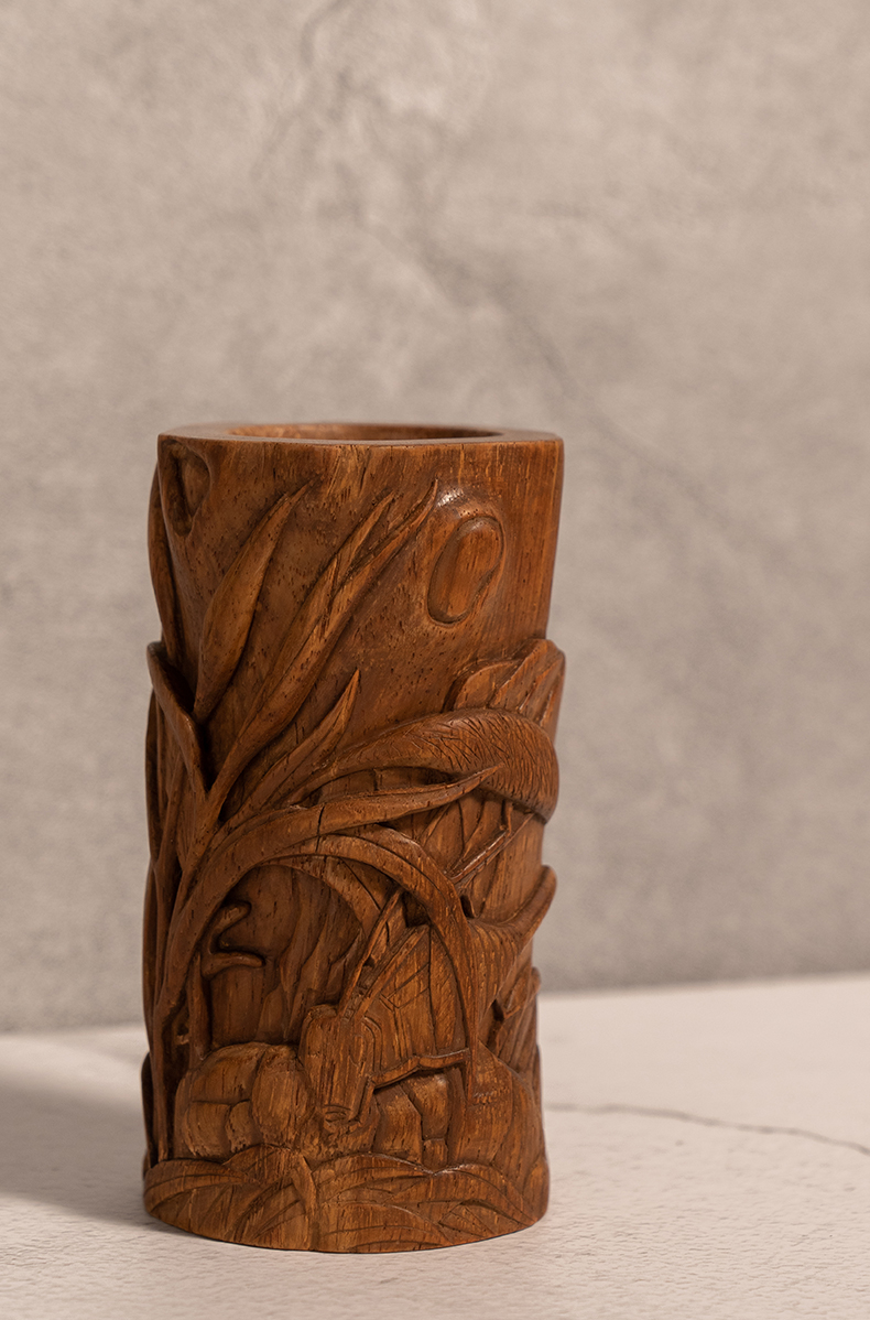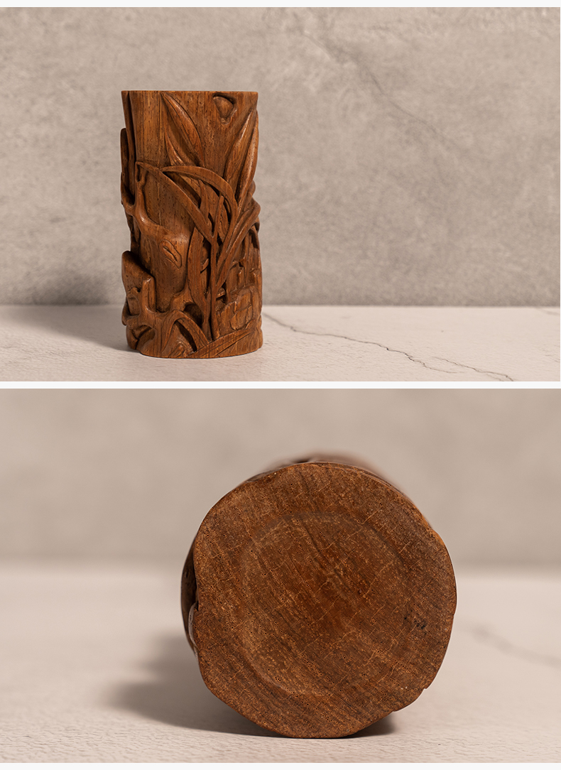 清 黄花梨百宝嵌花鸟诗文笔筒