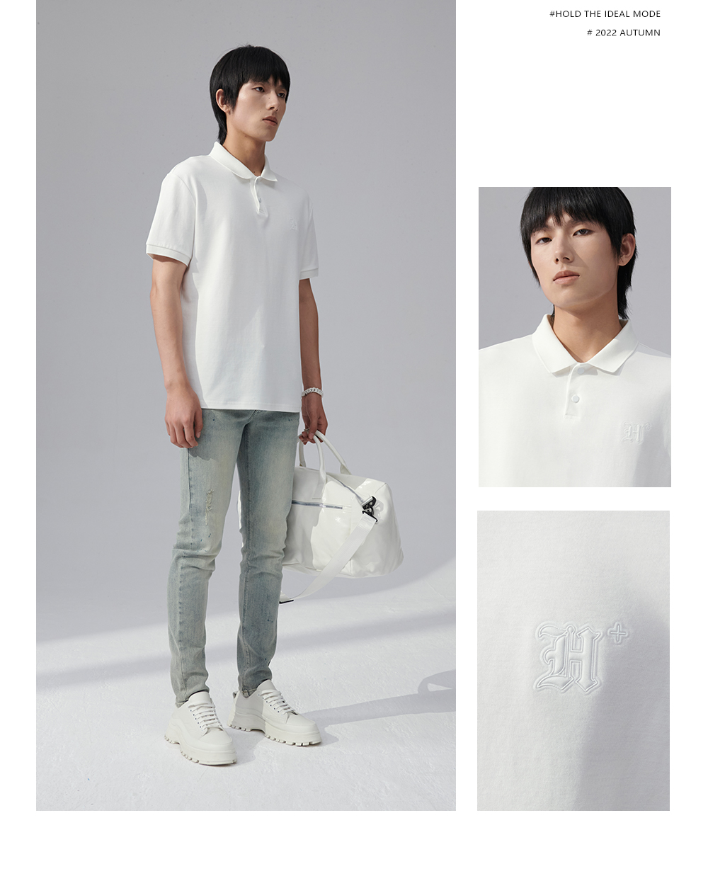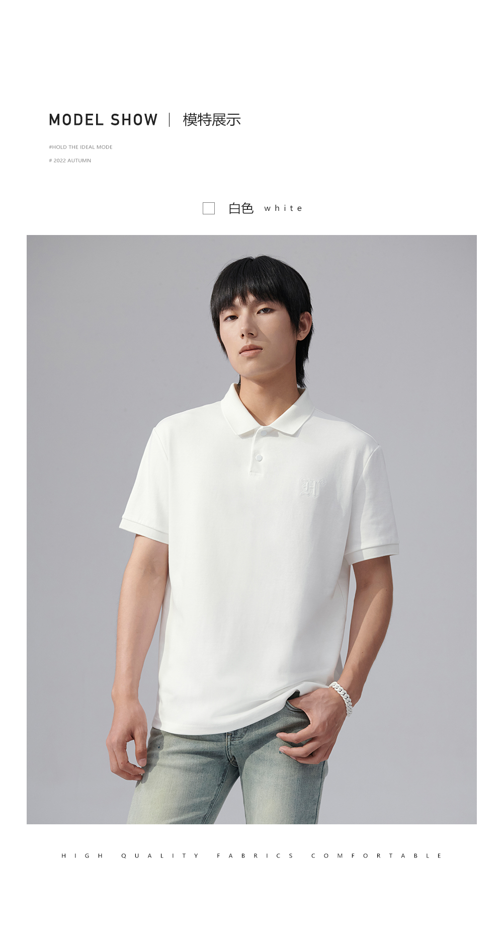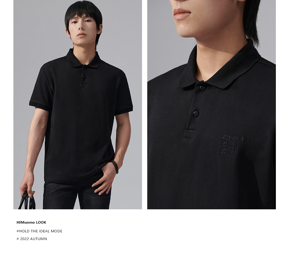 HIM漢崇 POLO潮流男士2026夏季新款简约压花商务休闲百搭短袖上衣