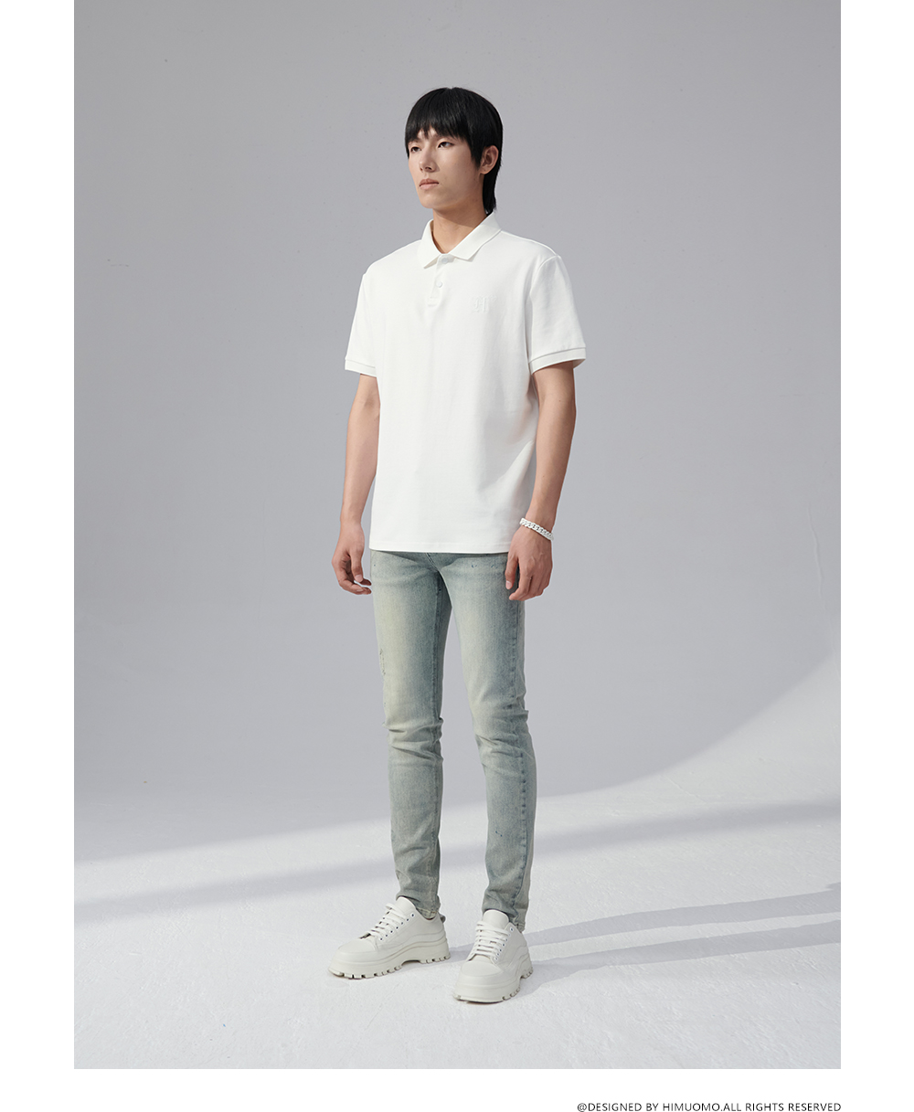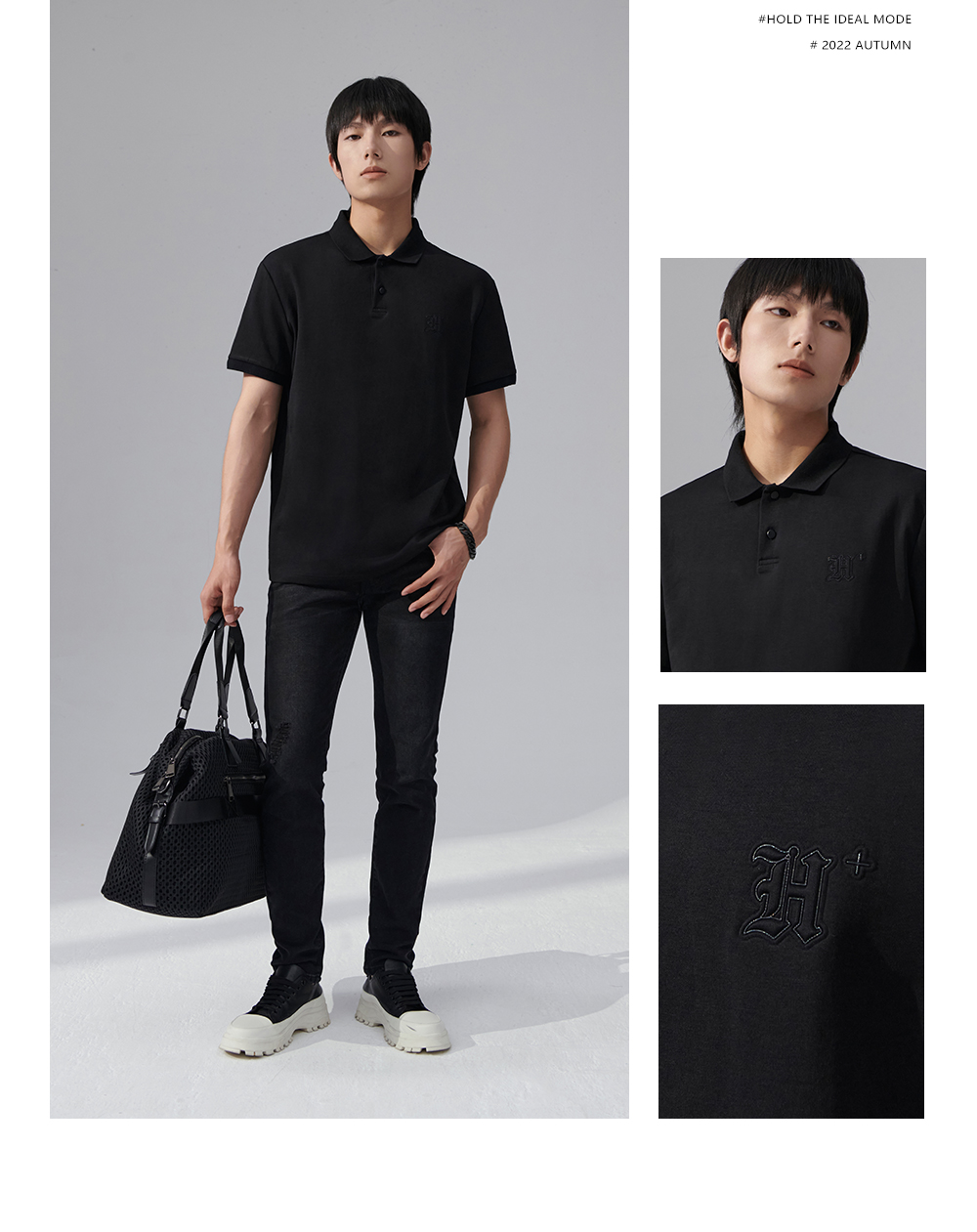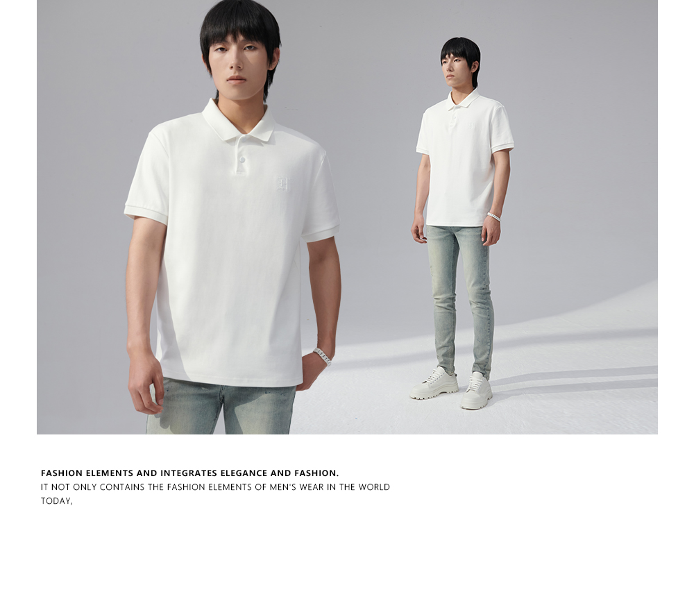 HIM漢崇 POLO潮流男士2026夏季新款简约压花商务休闲百搭短袖上衣