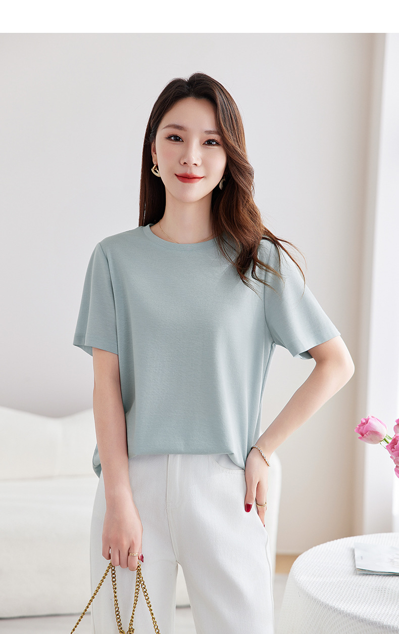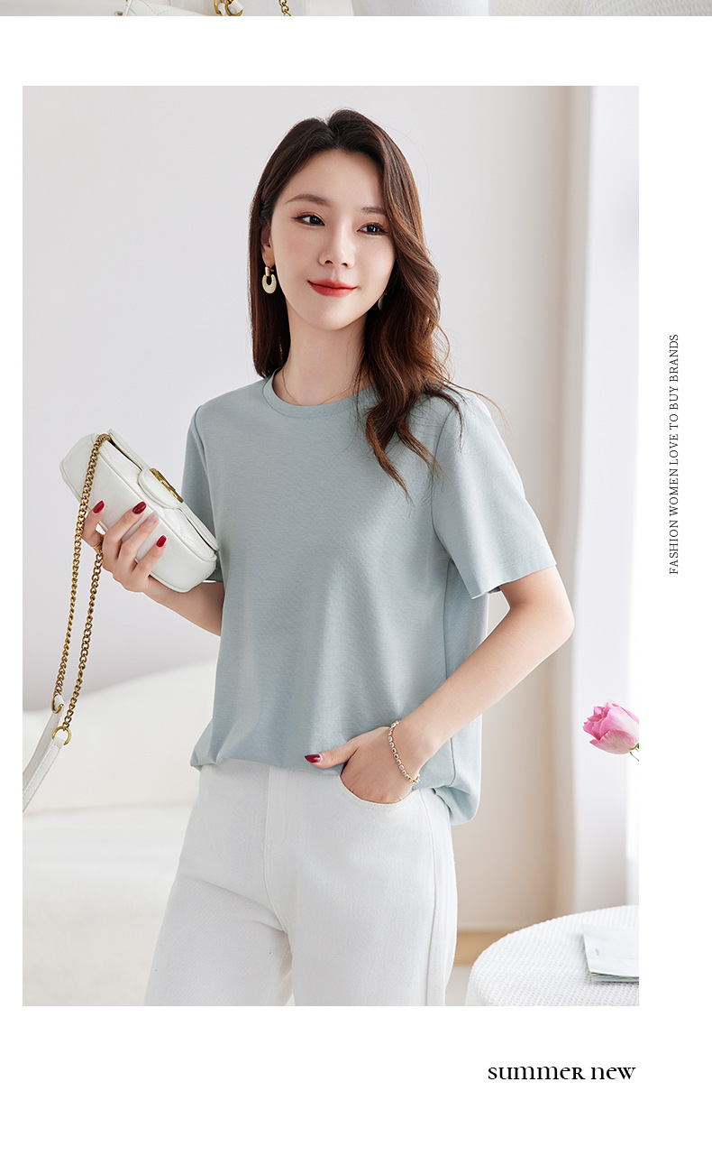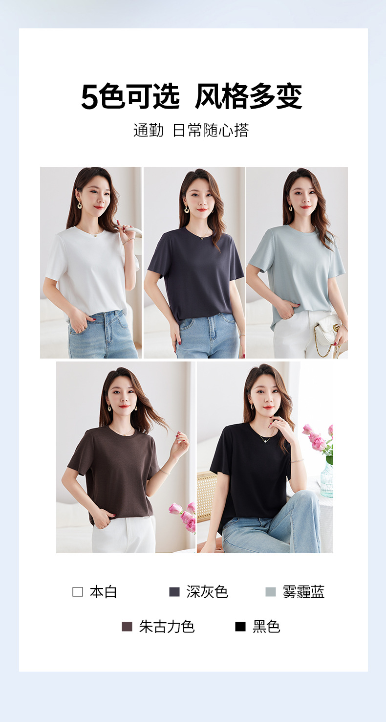 丁摩 【真丝混纺再生纤维】夏季新款圆领显瘦T恤女宽松百搭打底衫5ZF-9060