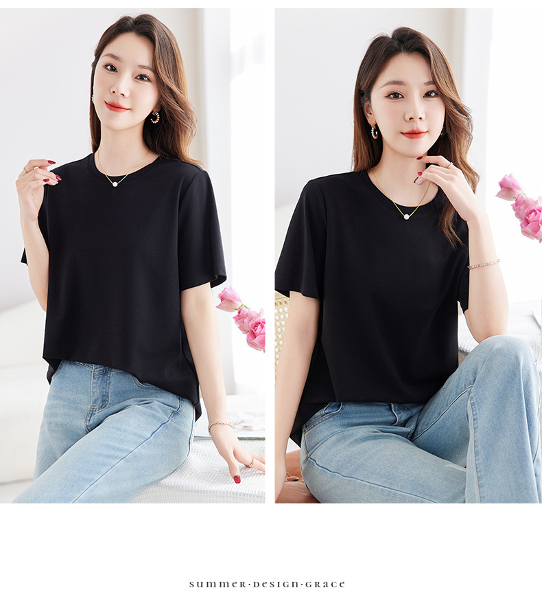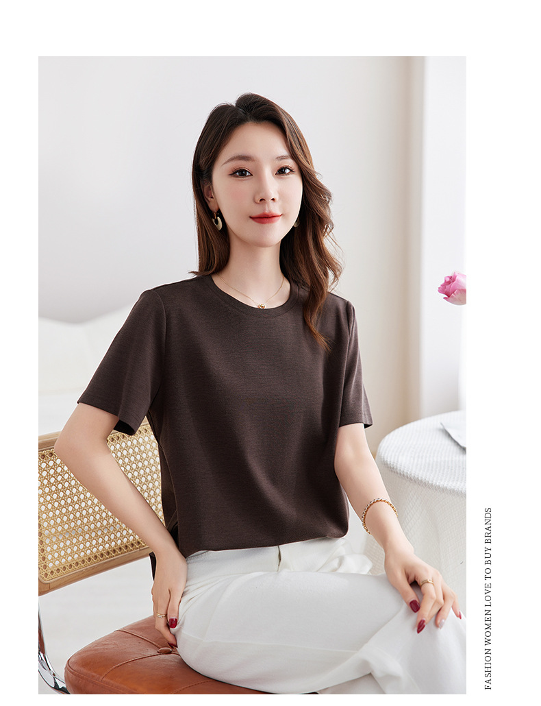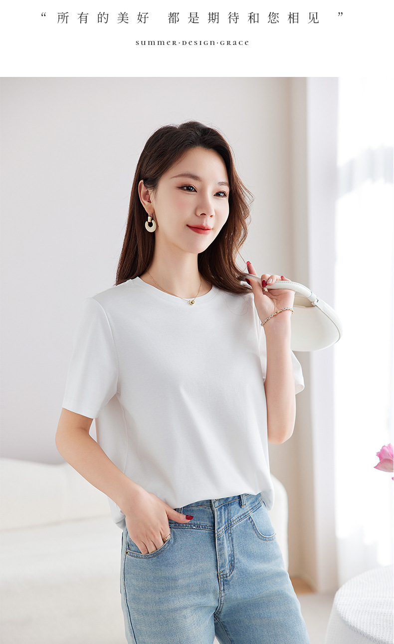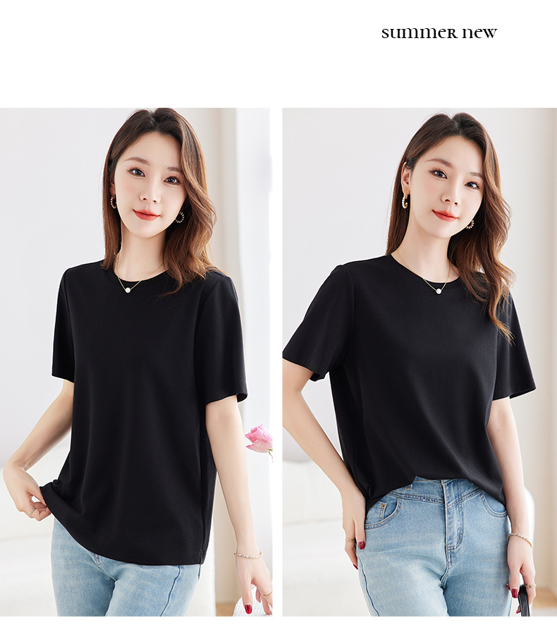丁摩 【真丝混纺再生纤维】夏季新款圆领显瘦T恤女宽松百搭打底衫5ZF-9060