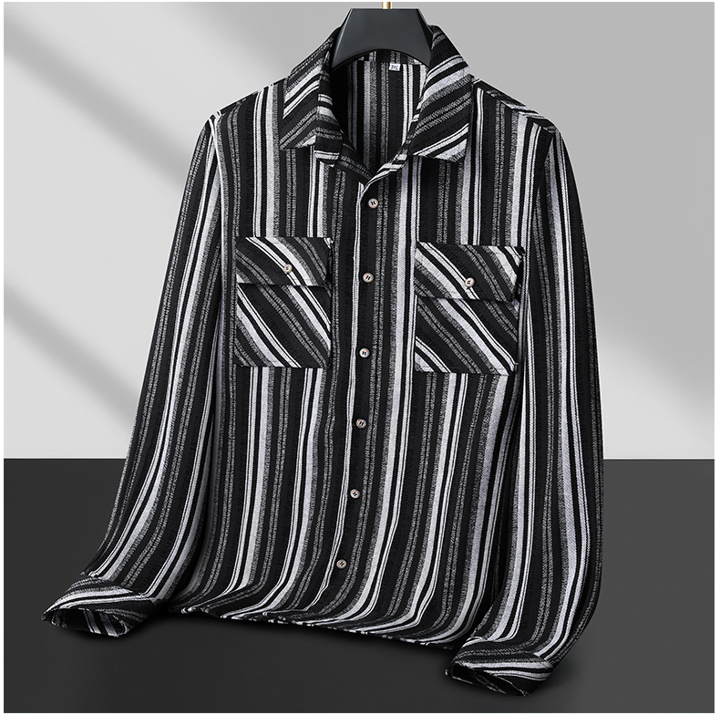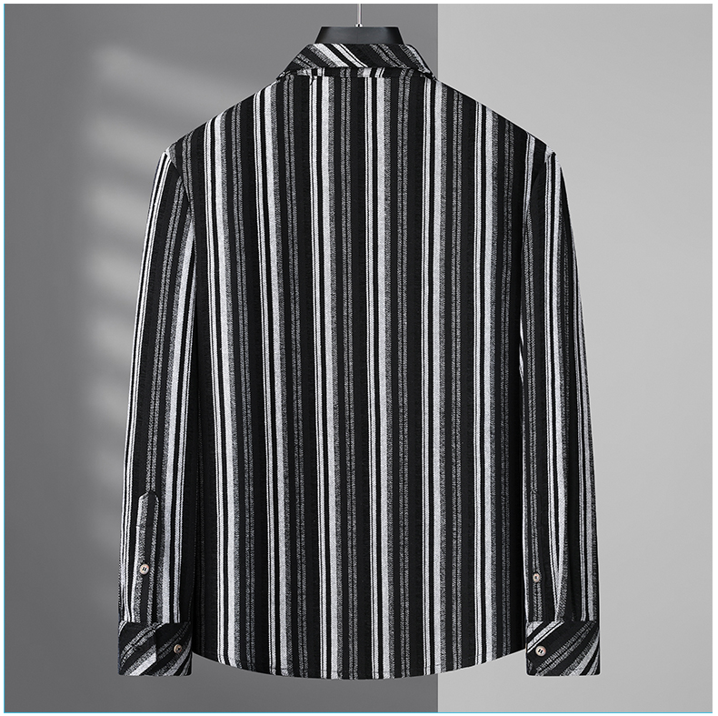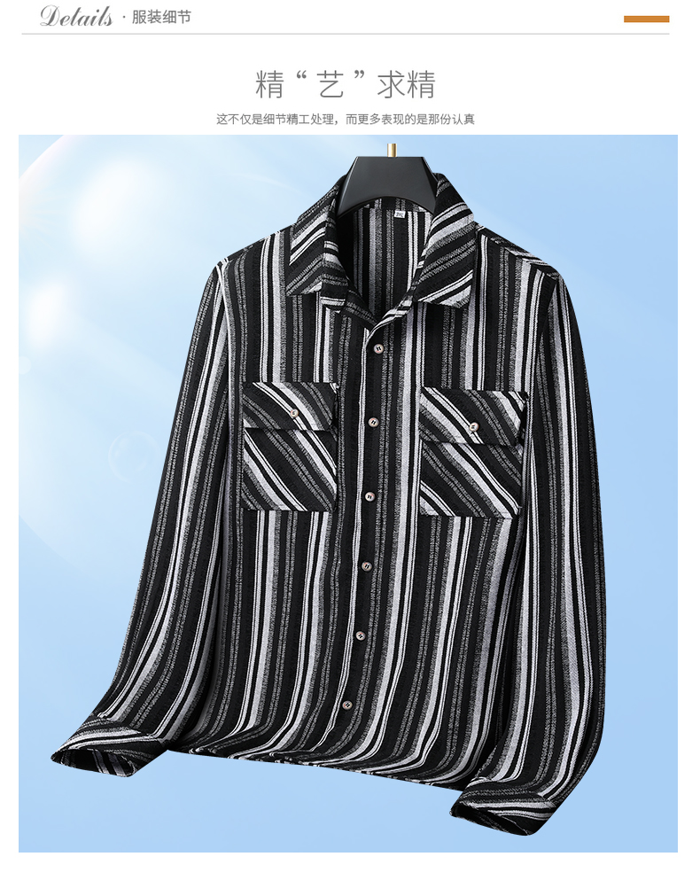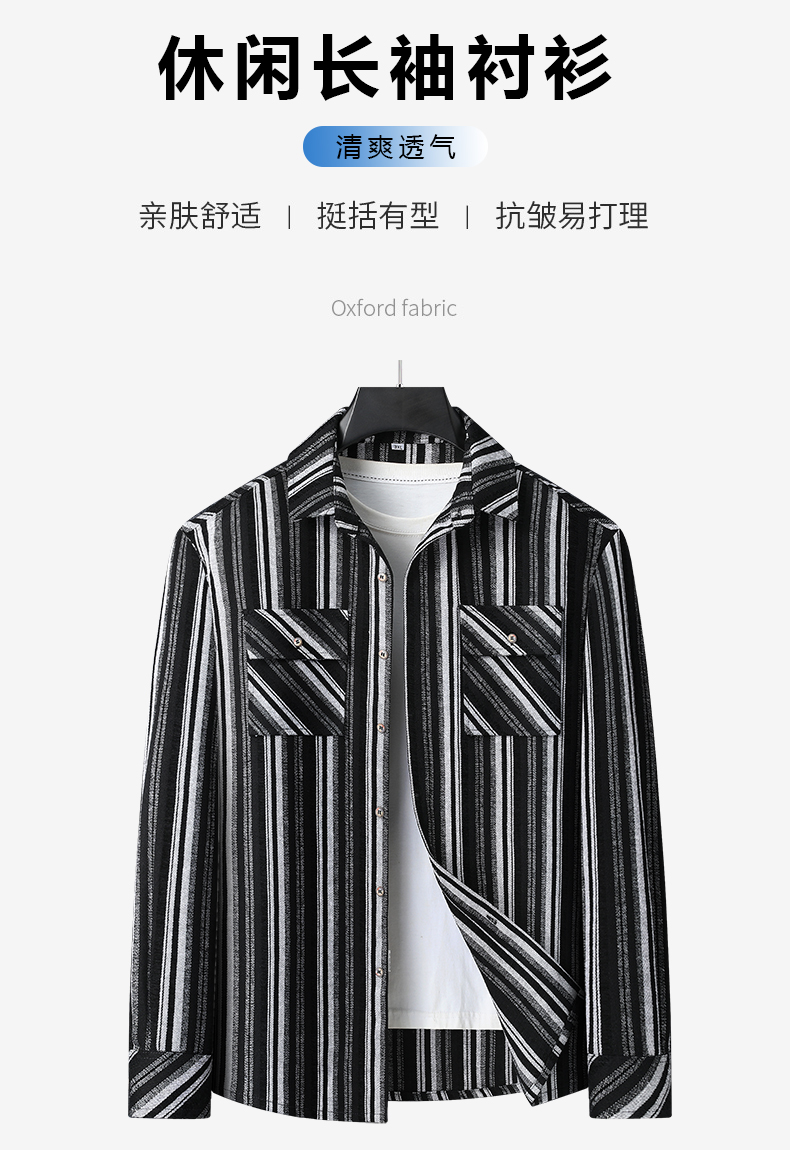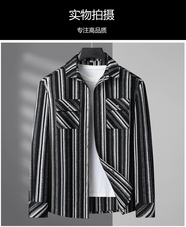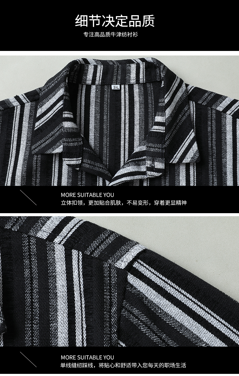 【新款DB】大依优型大码男装厚长袖衬衫条纹商务休闲上衣外套加肥加大胖子舒适打底