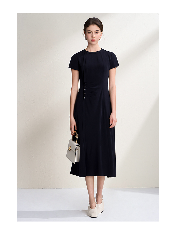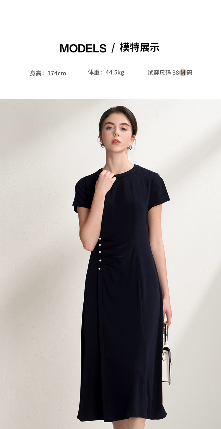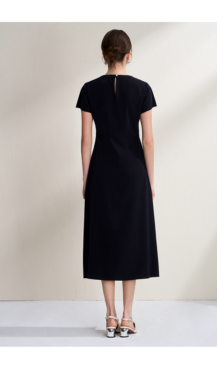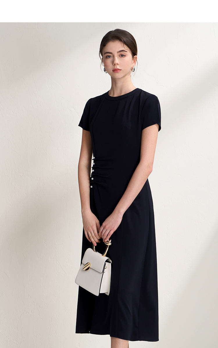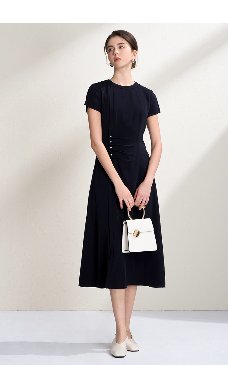 EITIE爱特爱简约不对称捏褶珍珠扣开叉飞飞袖连衣裙2026夏季新款B2607216