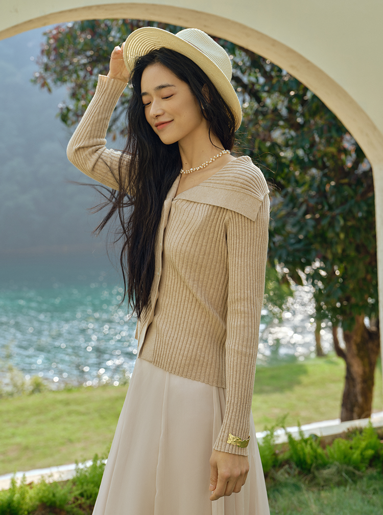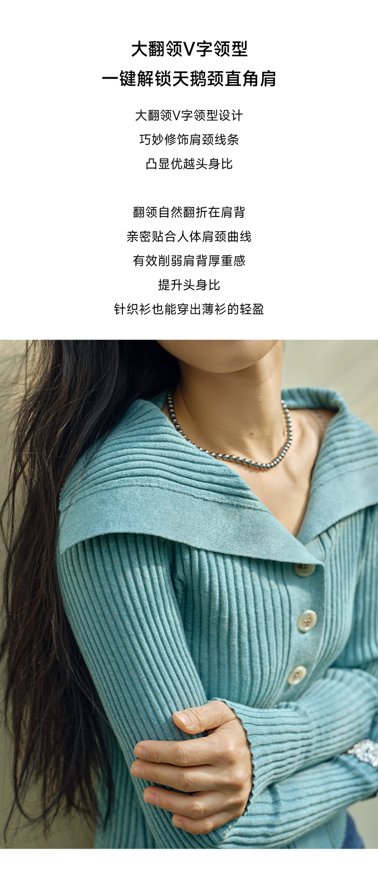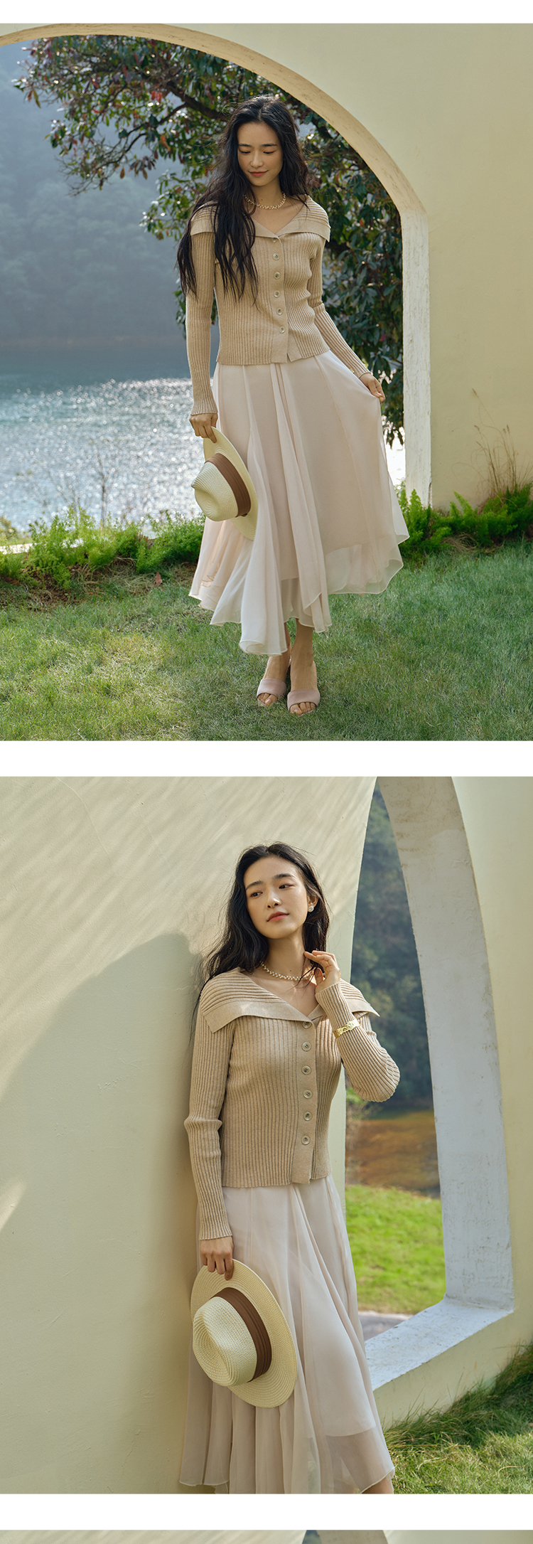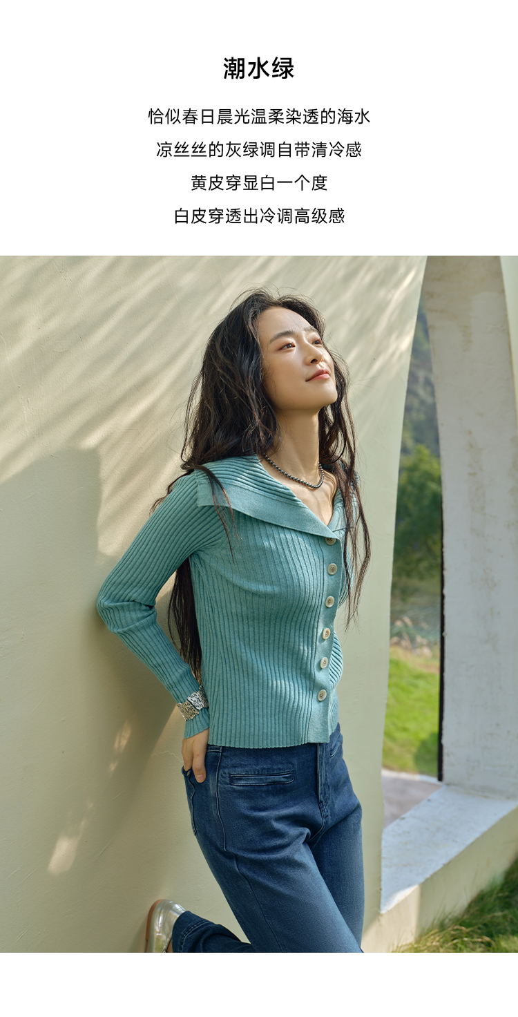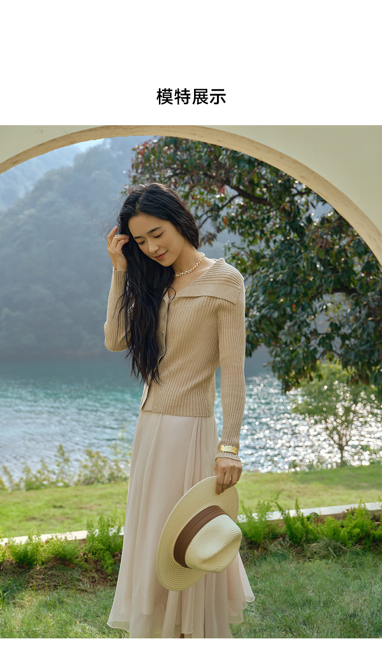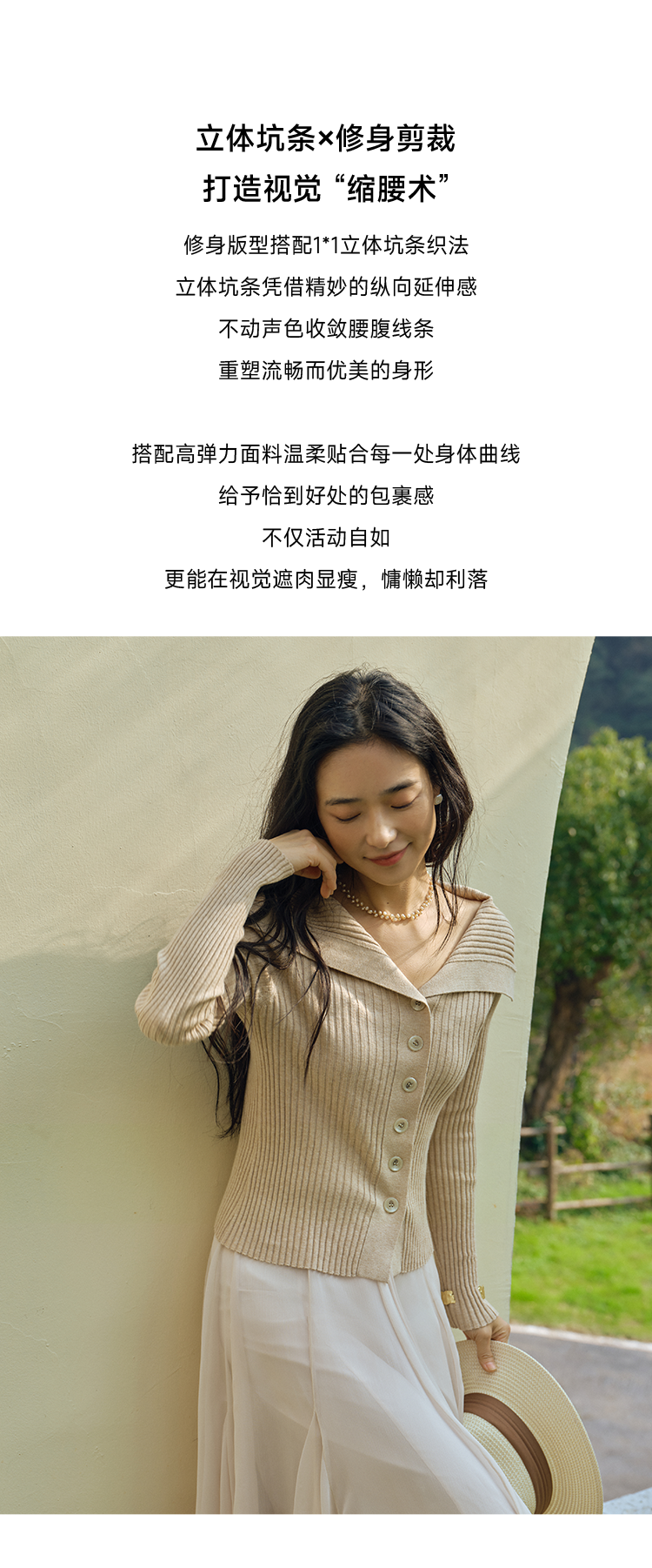柔春佳人 丝棉混纺翻领开衫FCF1WSC043