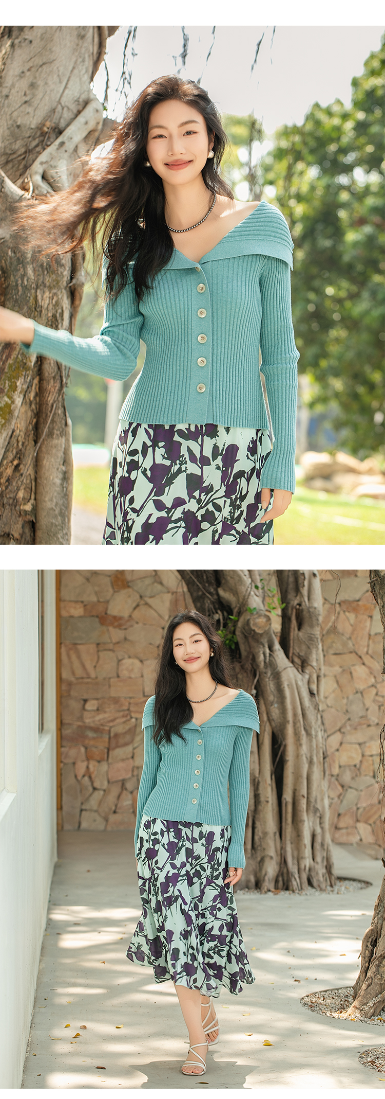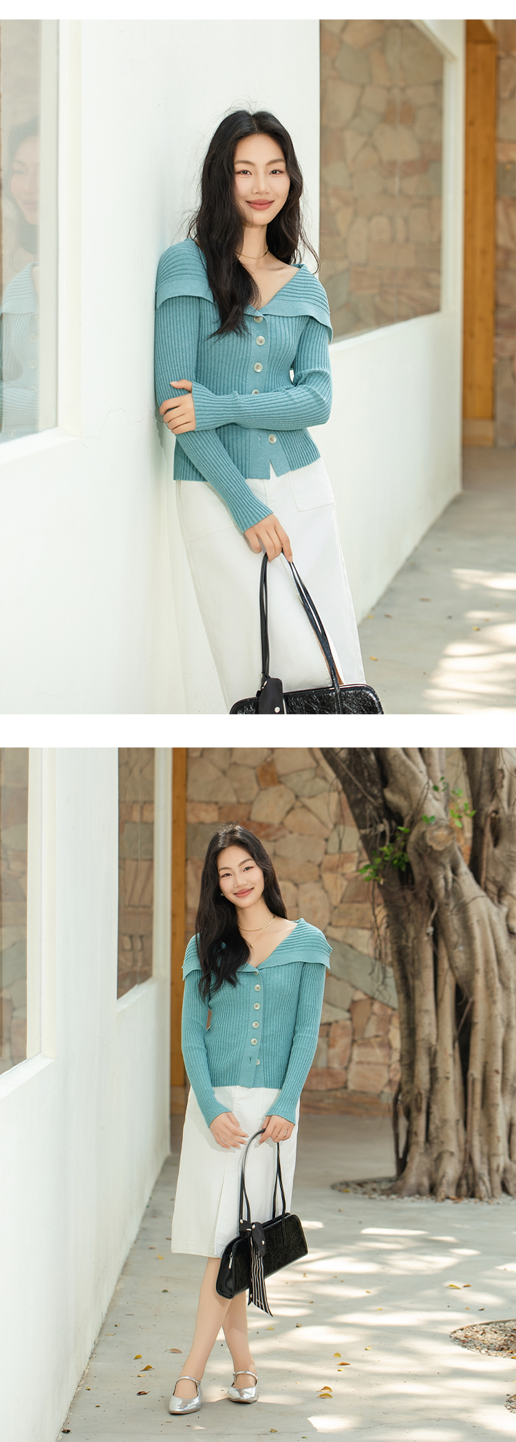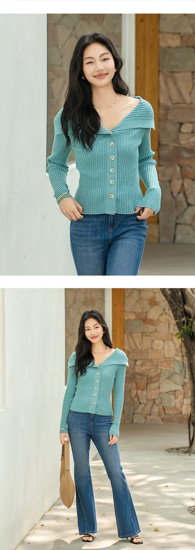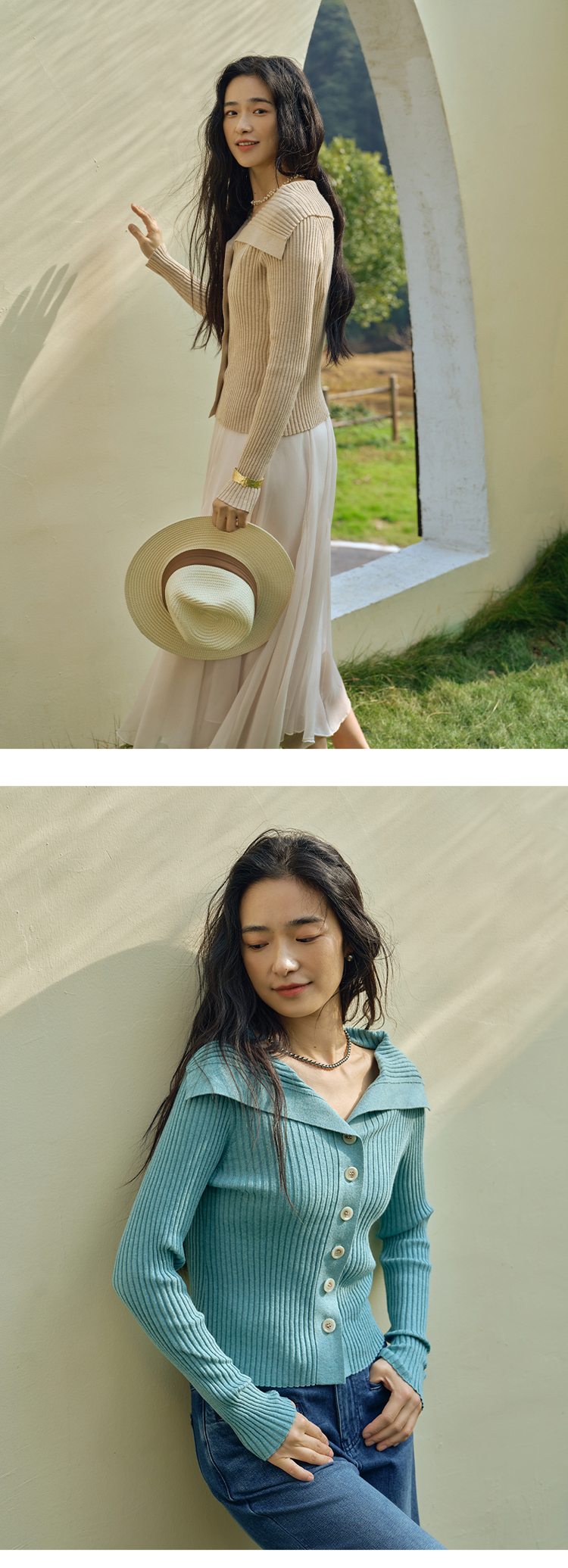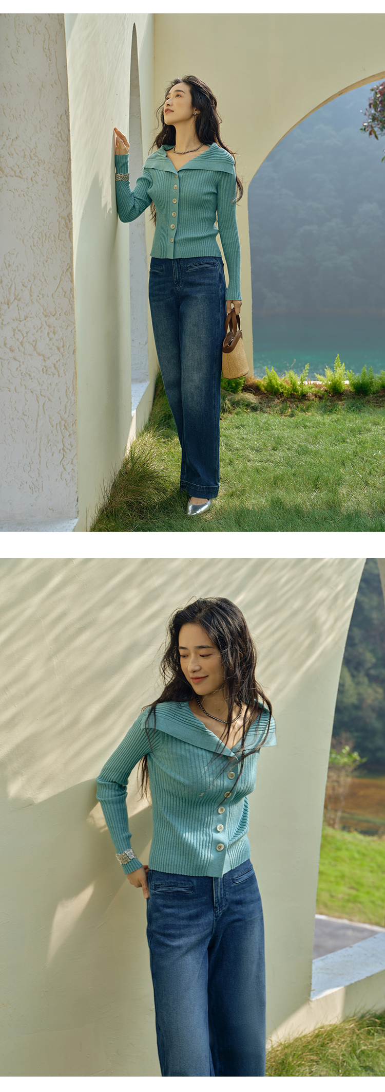 柔春佳人 丝棉混纺翻领开衫FCF1WSC043