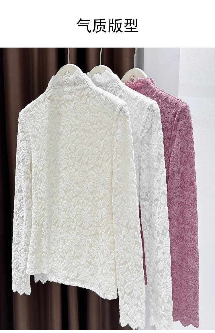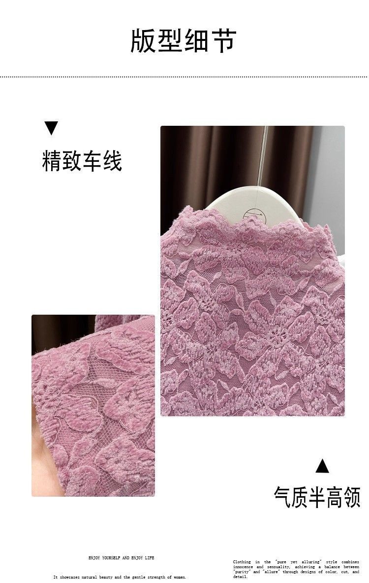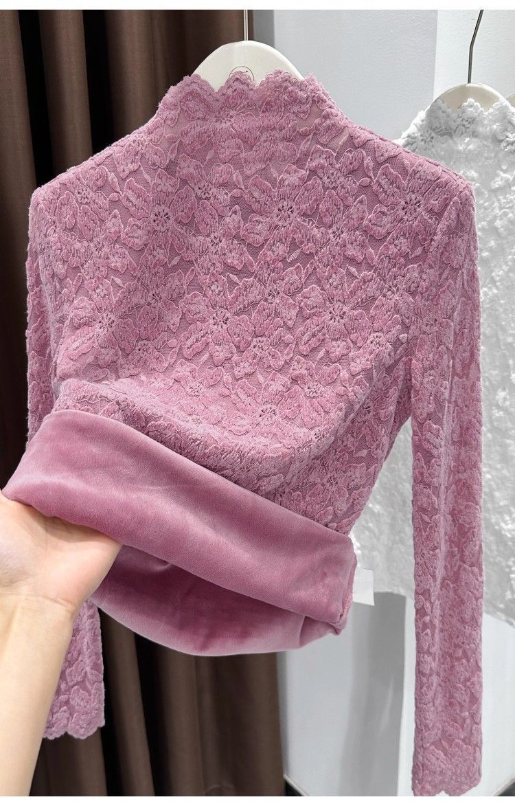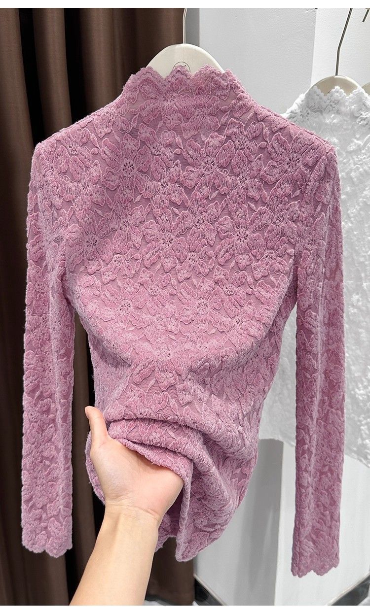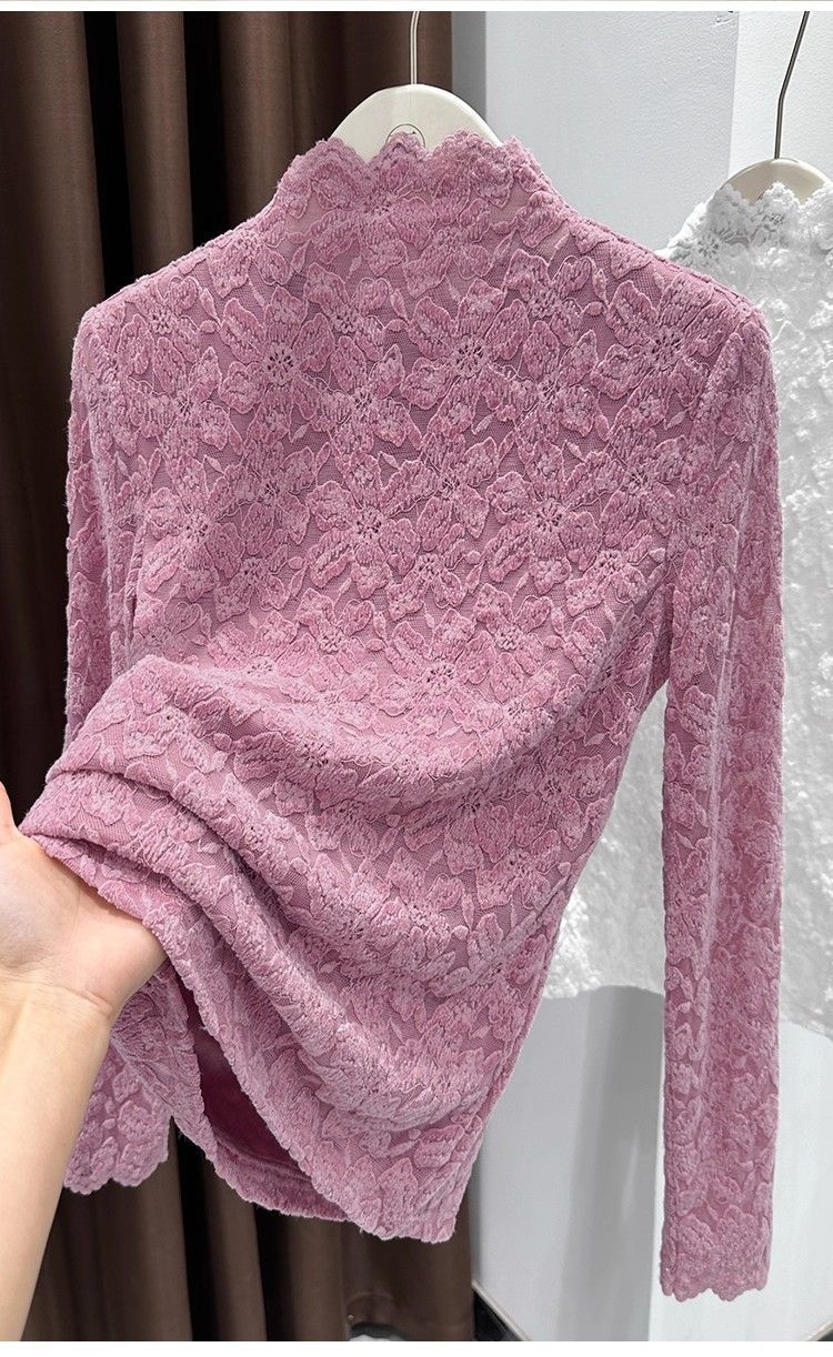 百媚生 蕾丝加绒加厚打底衫提花显瘦中领上衣