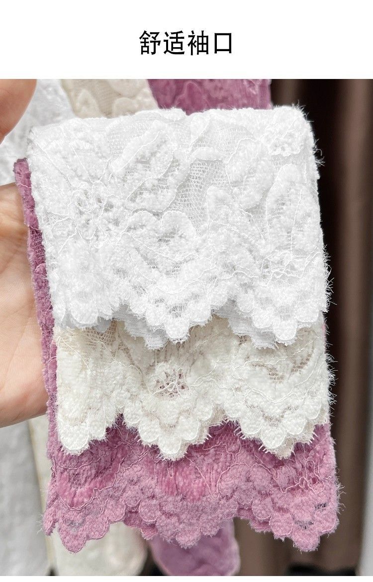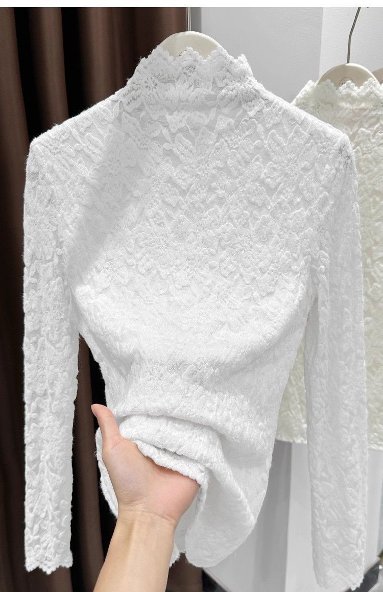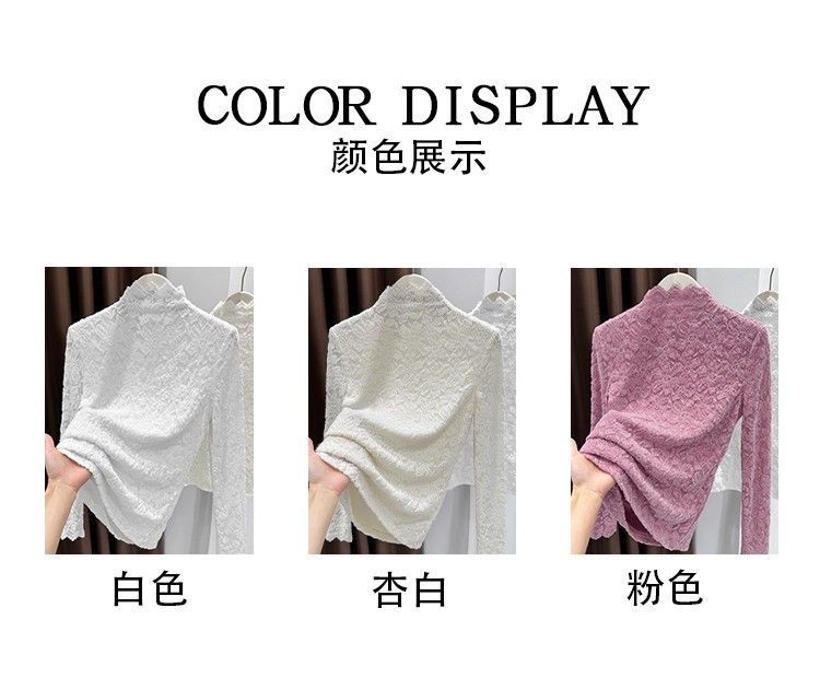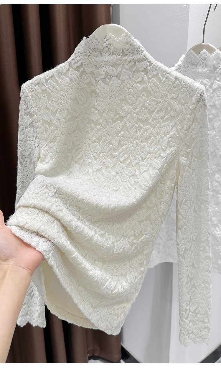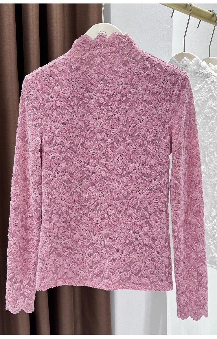 百媚生 蕾丝加绒加厚打底衫提花显瘦中领上衣