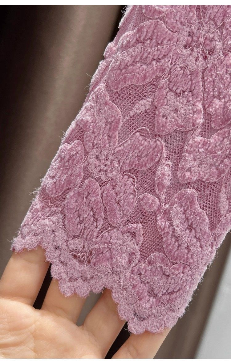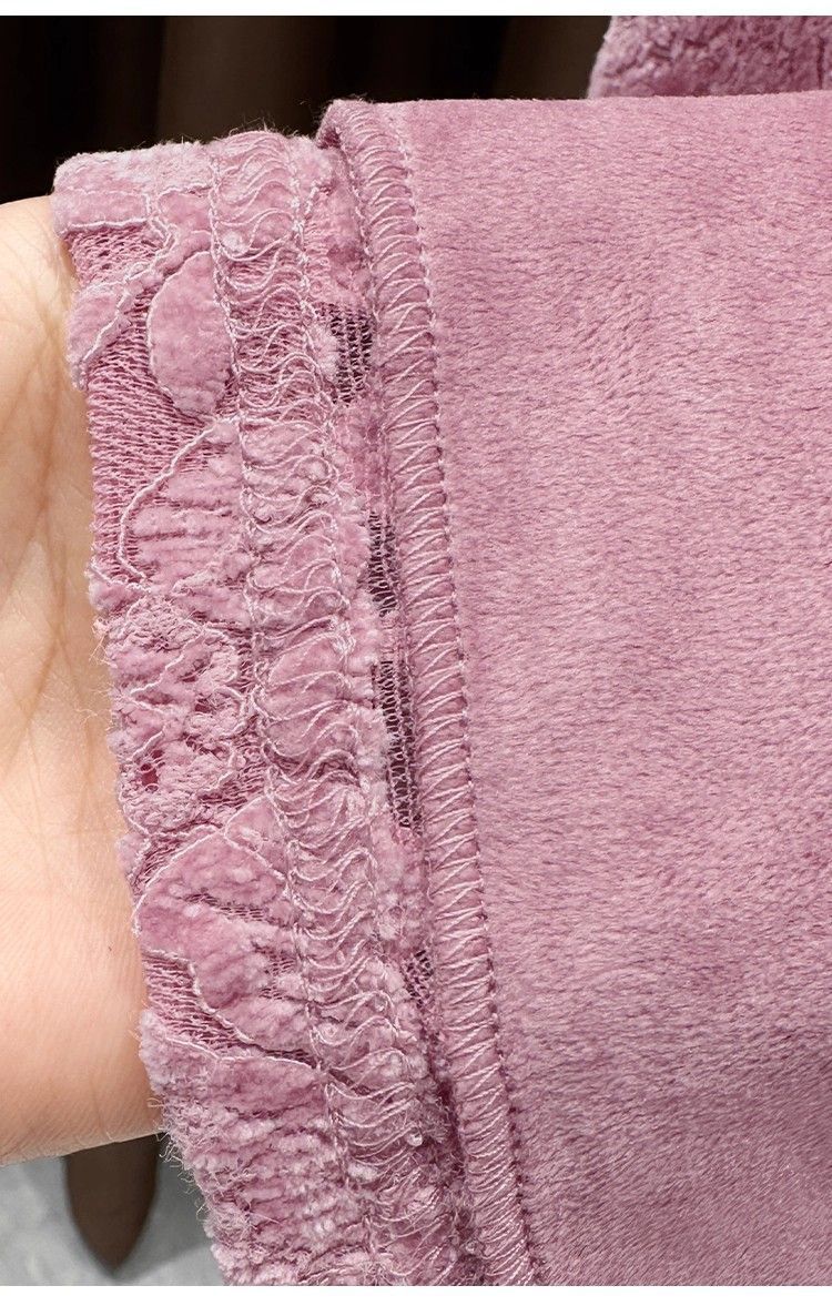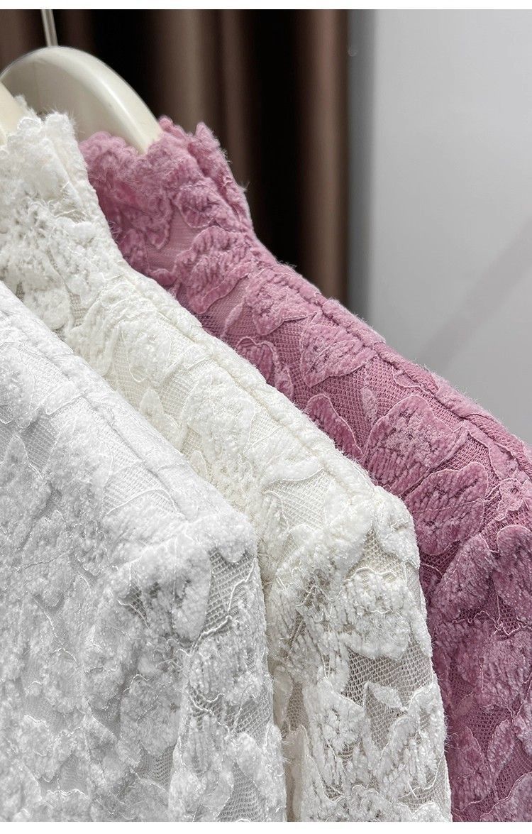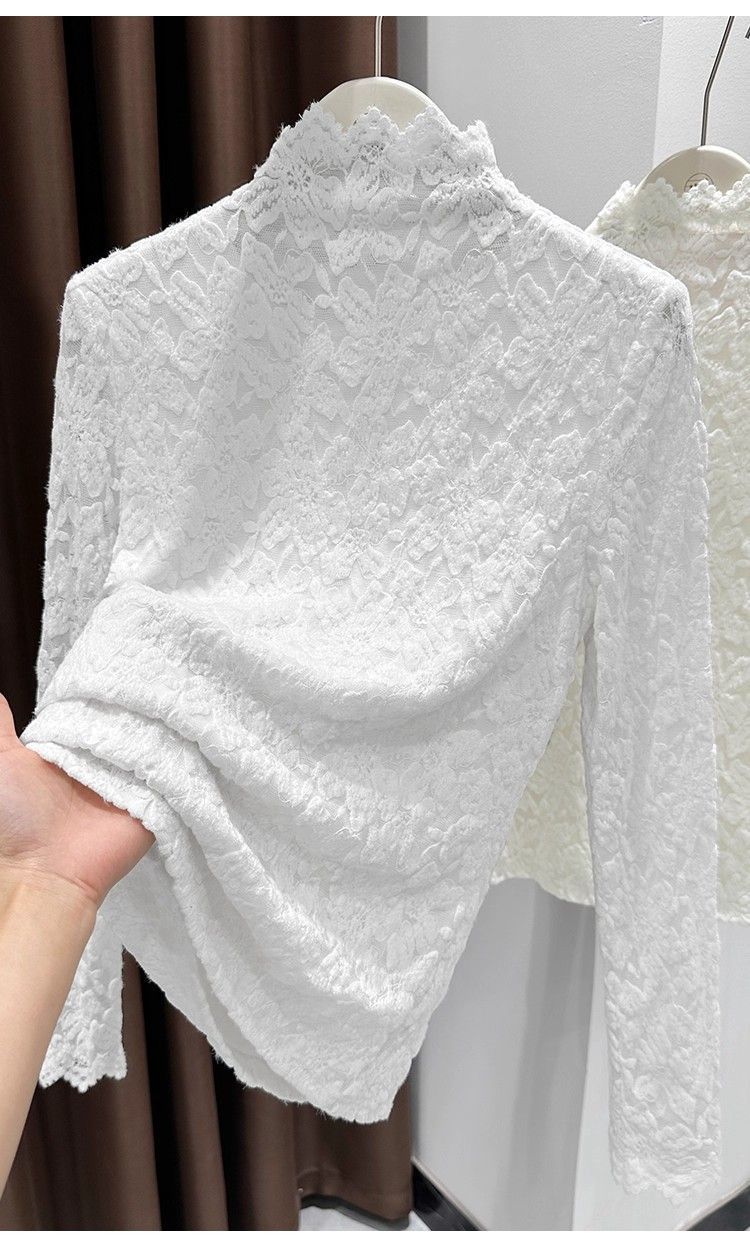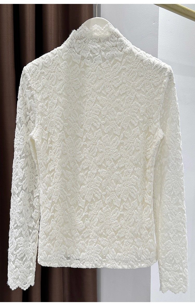 百媚生 蕾丝加绒加厚打底衫提花显瘦中领上衣