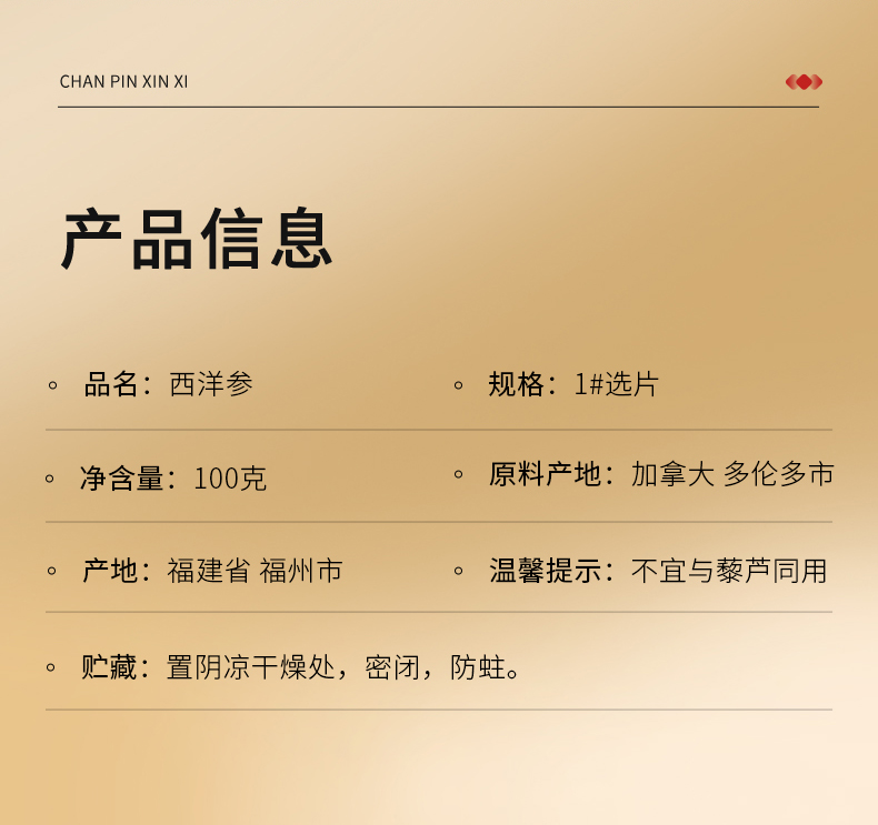 【正宗同仁堂品牌】北京同仁堂 青源堂 加拿大西洋参摆片礼盒100克 约1.6-2.0cm 西洋参片主根正切 片片精华SY