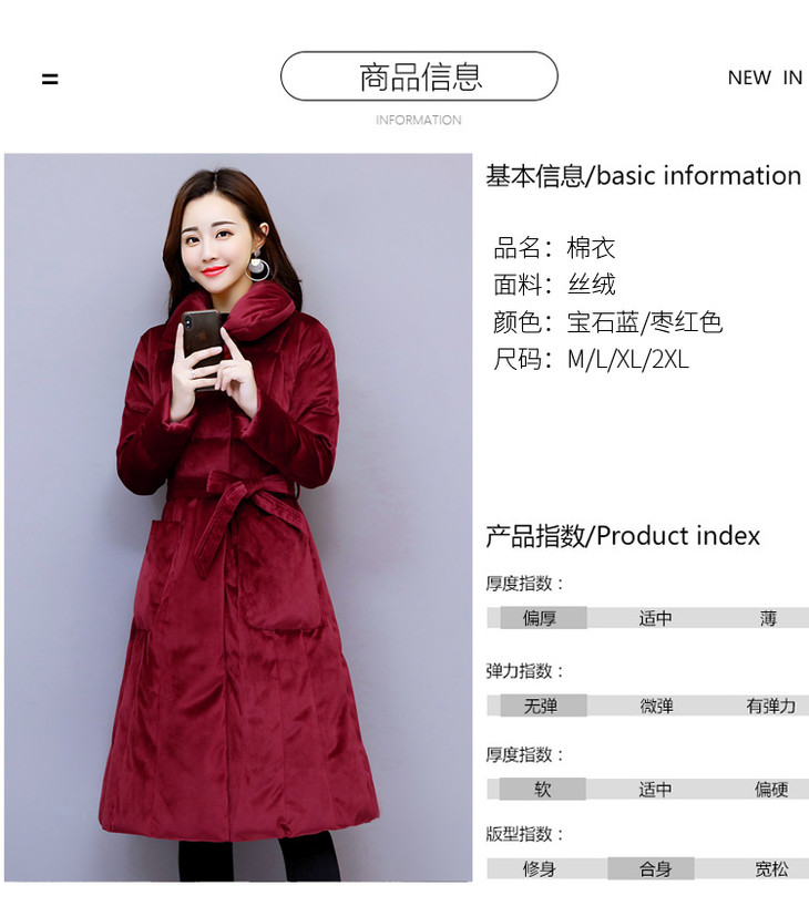 WZNH-MYYS1871冬新款时尚加厚修身中长款保暖棉服