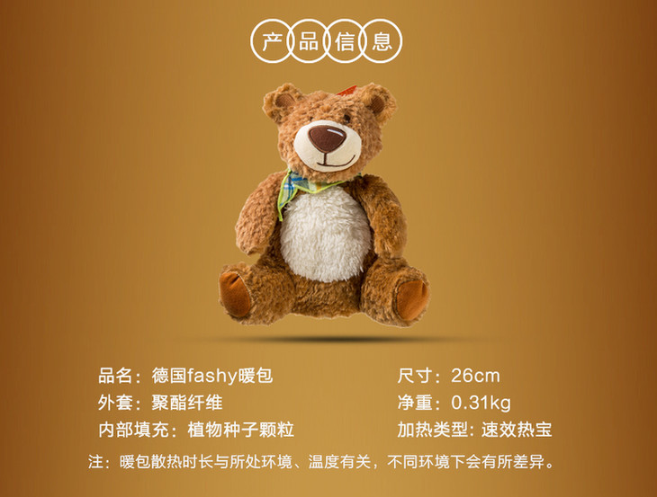 德国fashy暖包小熊款微波炉加热暖包本尼熊6349