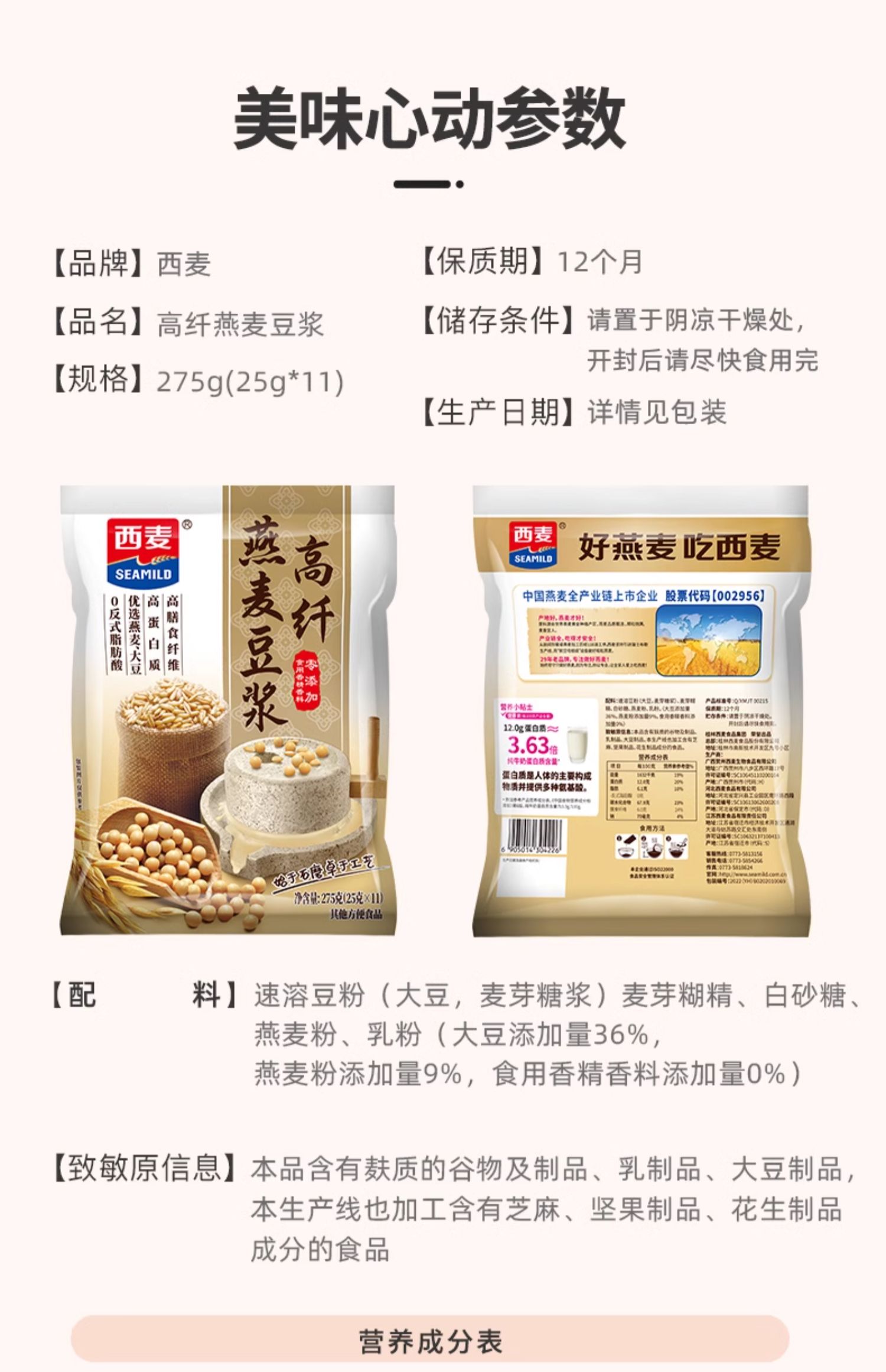 西麦燕麦豆浆275g*4袋独立小包高纤高蛋白质营养冲饮