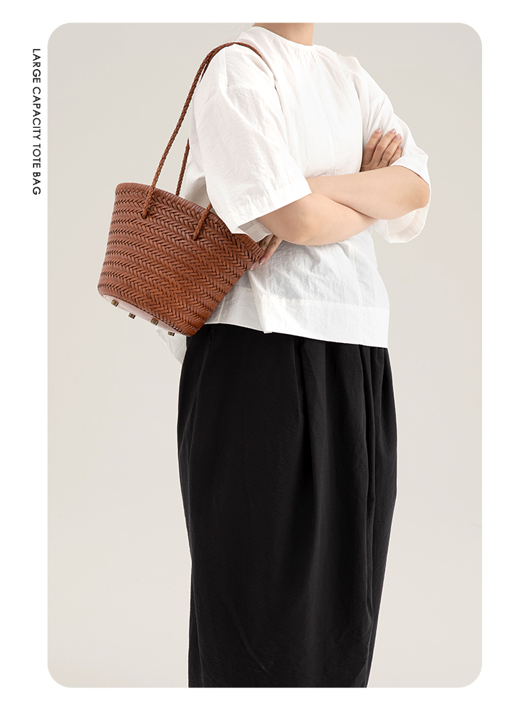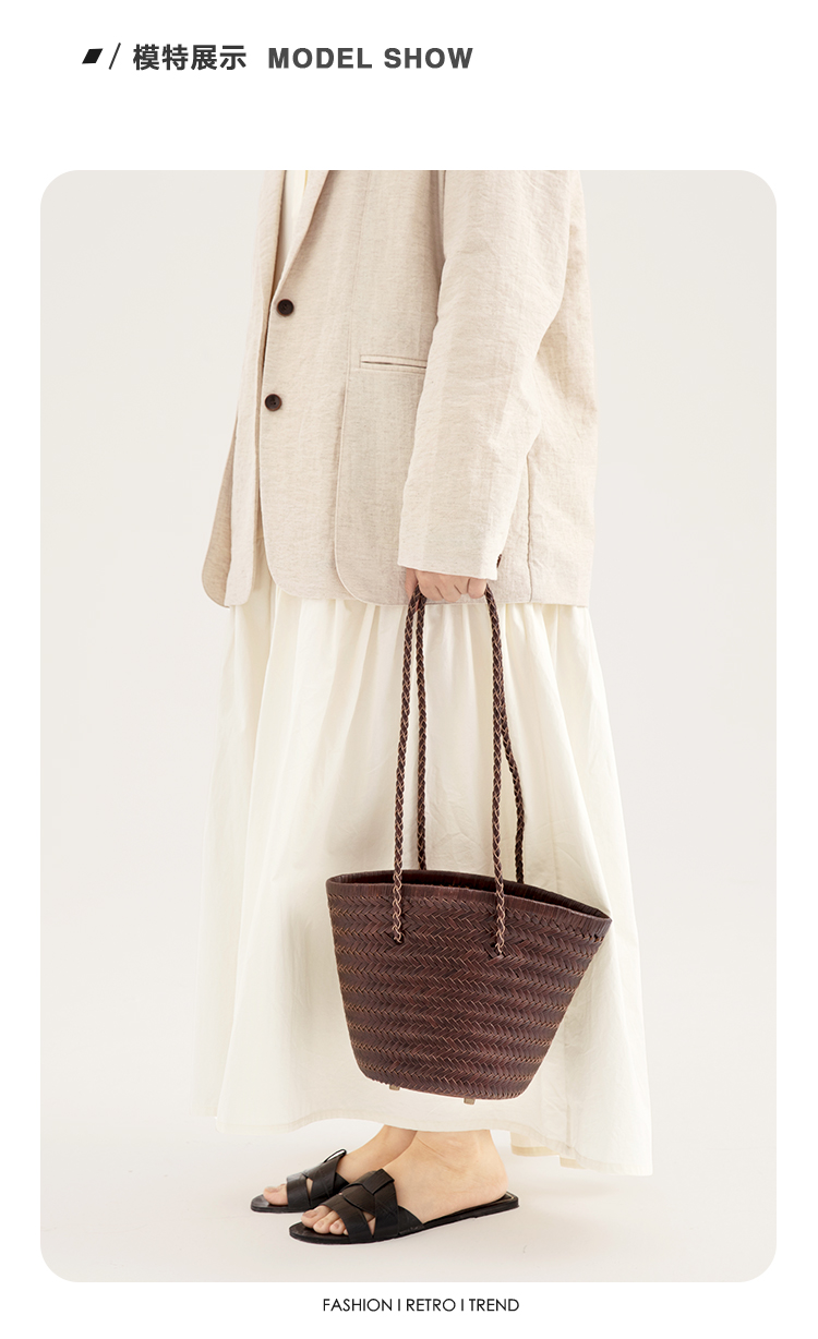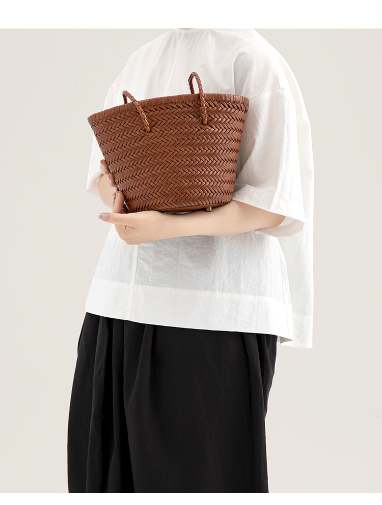 TENNCO【编织水桶包】真皮高级感水桶包度假风法式单肩腋下包女