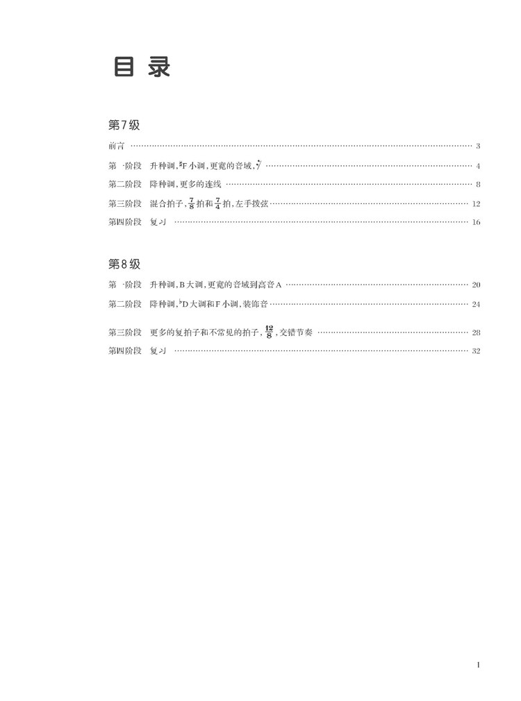 本册是高级,包括升F小调、B大调、降D大调、F小调、等的复合拍子(7/8、7/4、12/8)、更多的连线、左手拨弦、更宽的音域、装饰音,以及复习等训练内容,旨在通过科学而有效地练习,快速有效的提高学习者的视奏能力。本套教程由原西南大学音乐学院教授、硕士生导师、音乐学院学术委员会委员文思隆翻译,文老师长期从事音乐教育与舞台表演实践,一直担任学院小提琴教学与表演教学,具有丰富的教学经验,为国家培养了大批音乐人才。 本套教程除了可以参加英皇视奏考级外,还可作为国内各高校音乐院校的小提琴视奏教材,也适用于各培训中心、小提琴学习者视奏练习。