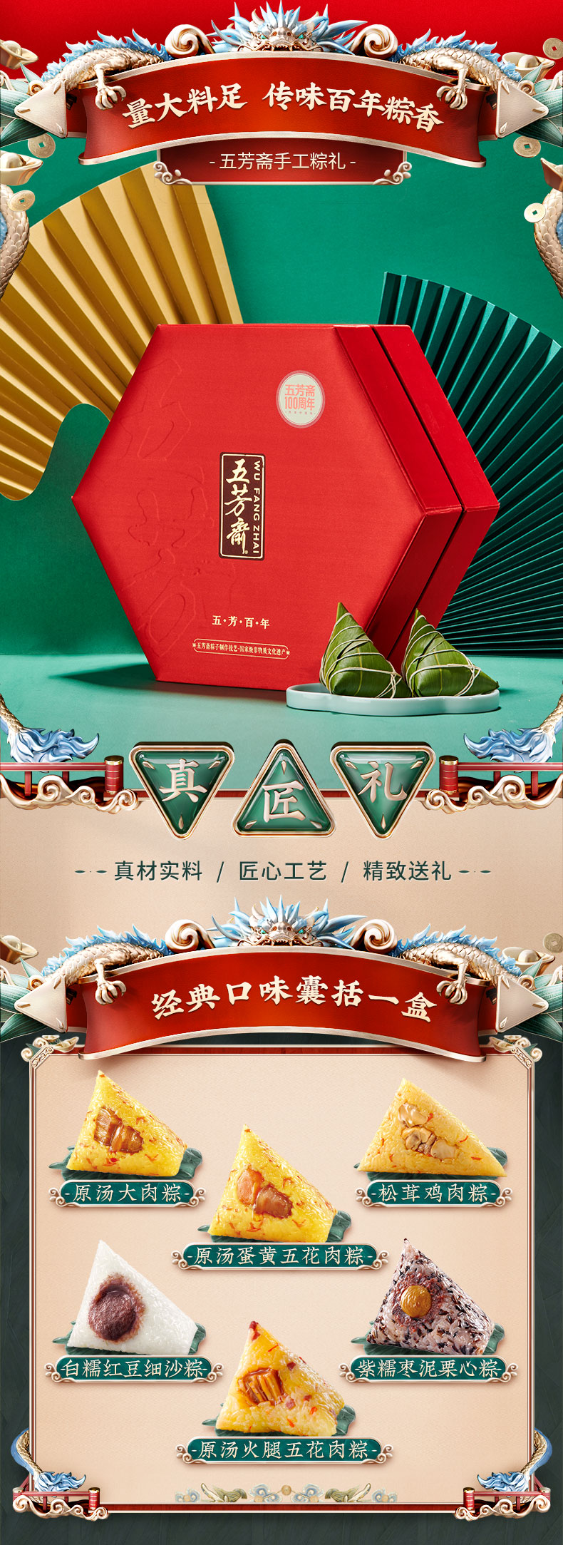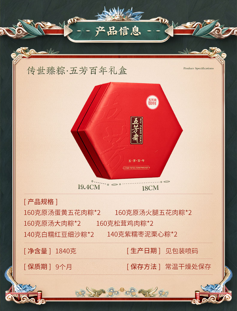 五芳斋 粽子礼盒 端午节嘉兴粽子 端午送礼12粽子大礼包 传世臻粽五芳百年礼盒1840g