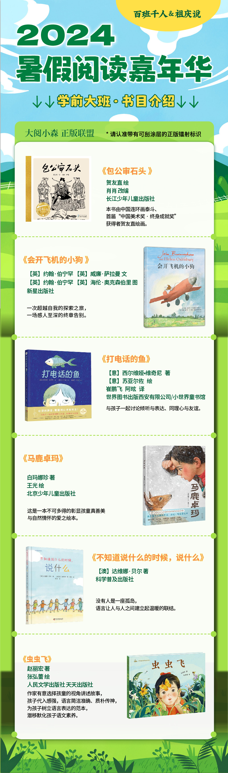 打电话的鱼 会开飞机的小狗 马鹿卓玛 包公审石头 虫虫飞 不知道说什么的时候说什么 2024年百班千人暑期书目学前大班|祖庆说名师推荐正版课外阅读现货速发