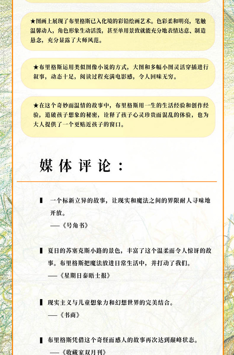 夏日的苏塞克斯小路的景色,丰富了这个温柔而令人惊讶的故事。布里格斯把魔法放进日常生活中,并打动了我们。