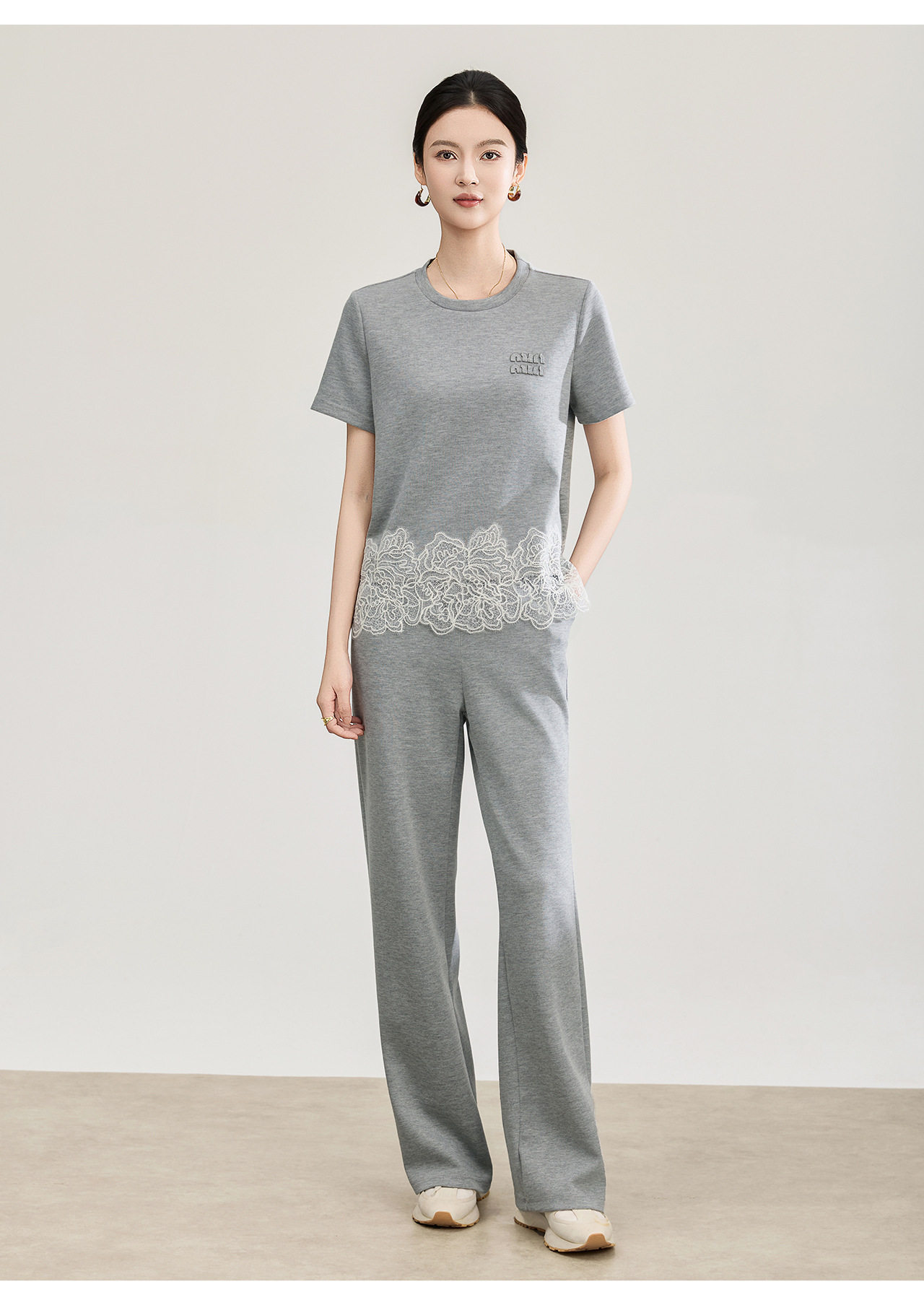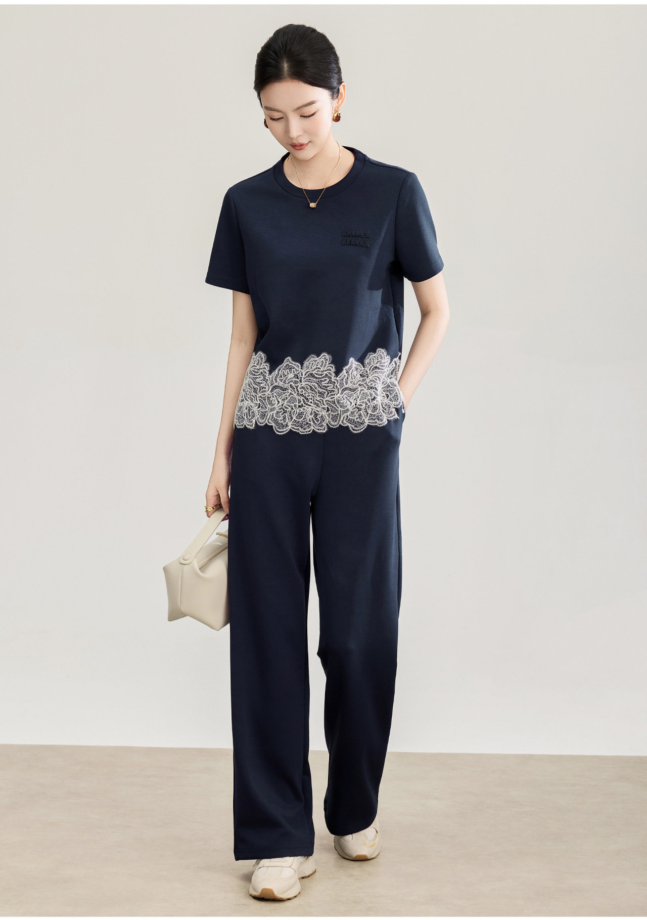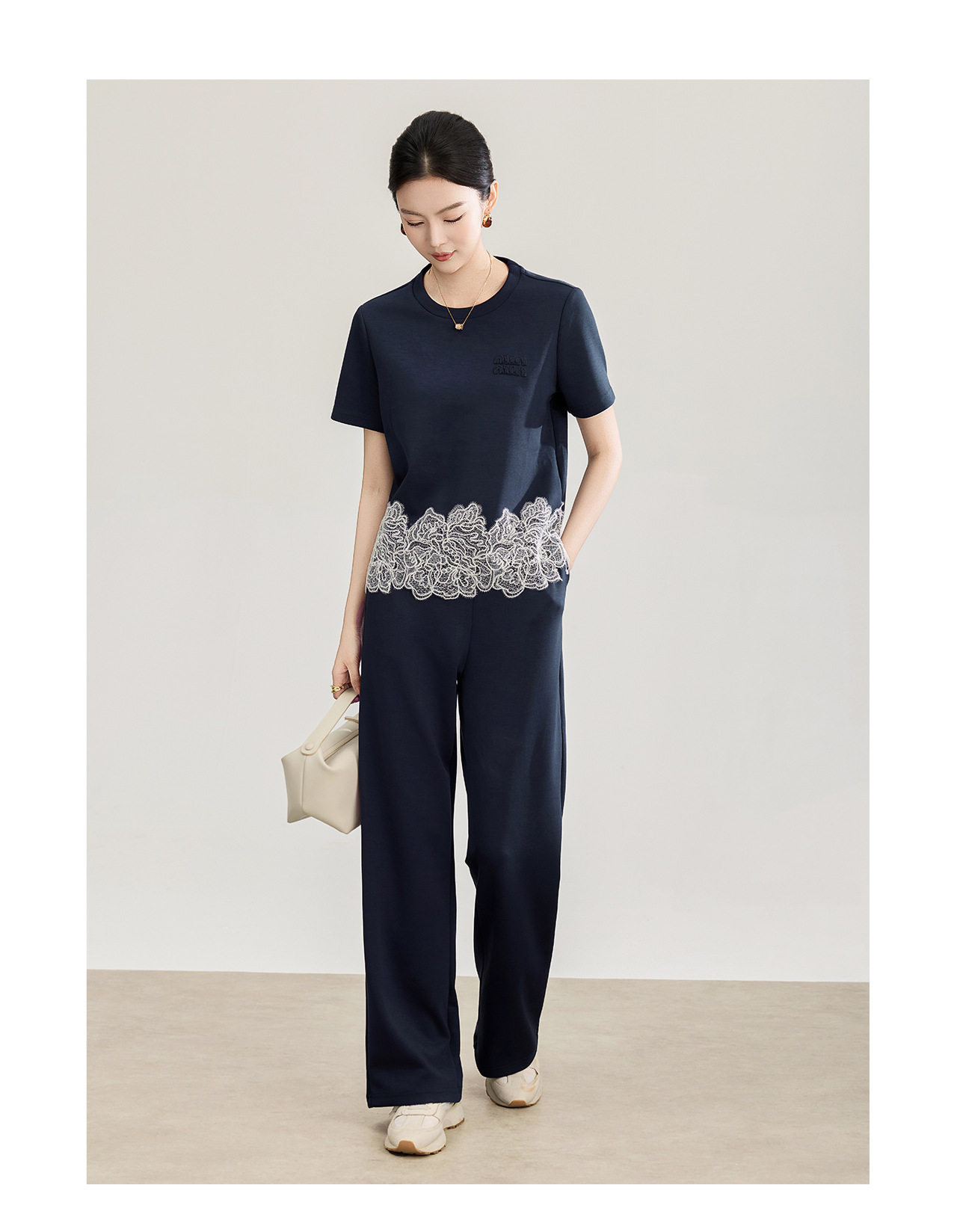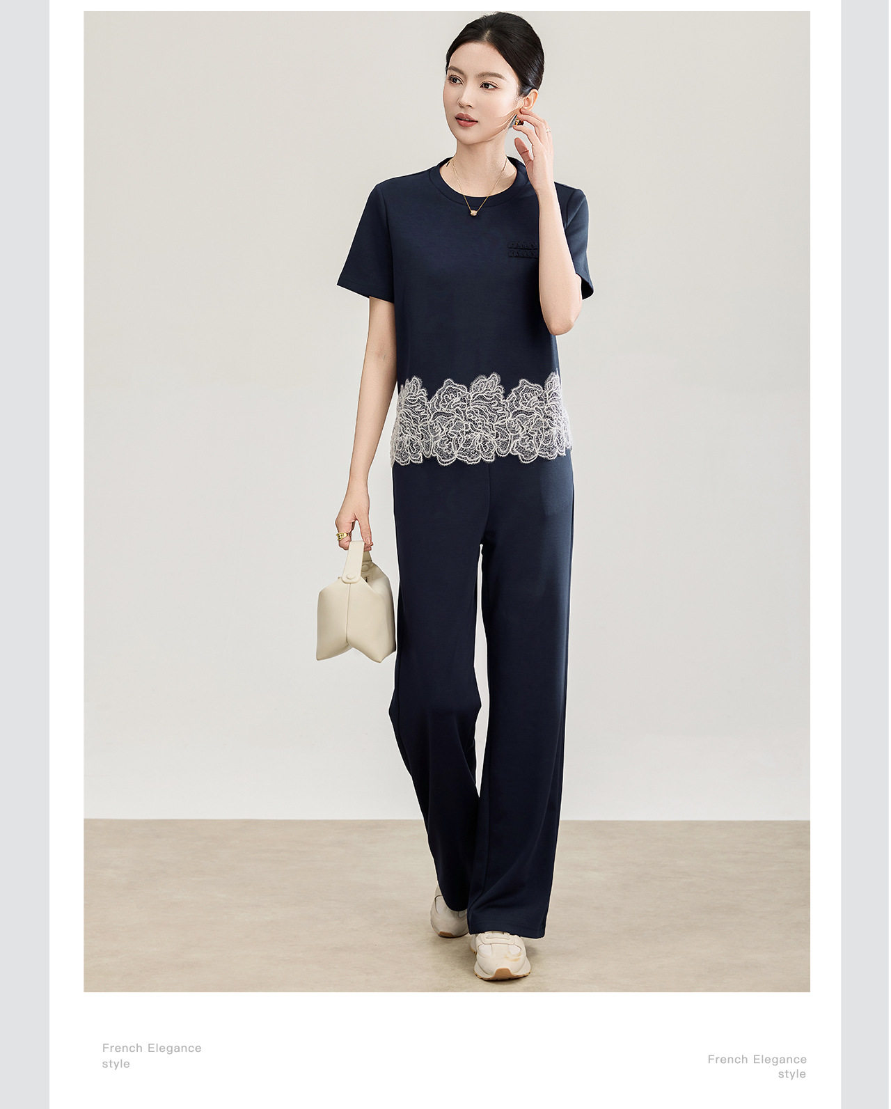 「高货wl」全新升级【铂金会员293/天猫389/差价96】(99419)洛诗琳2026春夏气质水溶蕾丝拼接上衣松紧腰休闲裤两件套