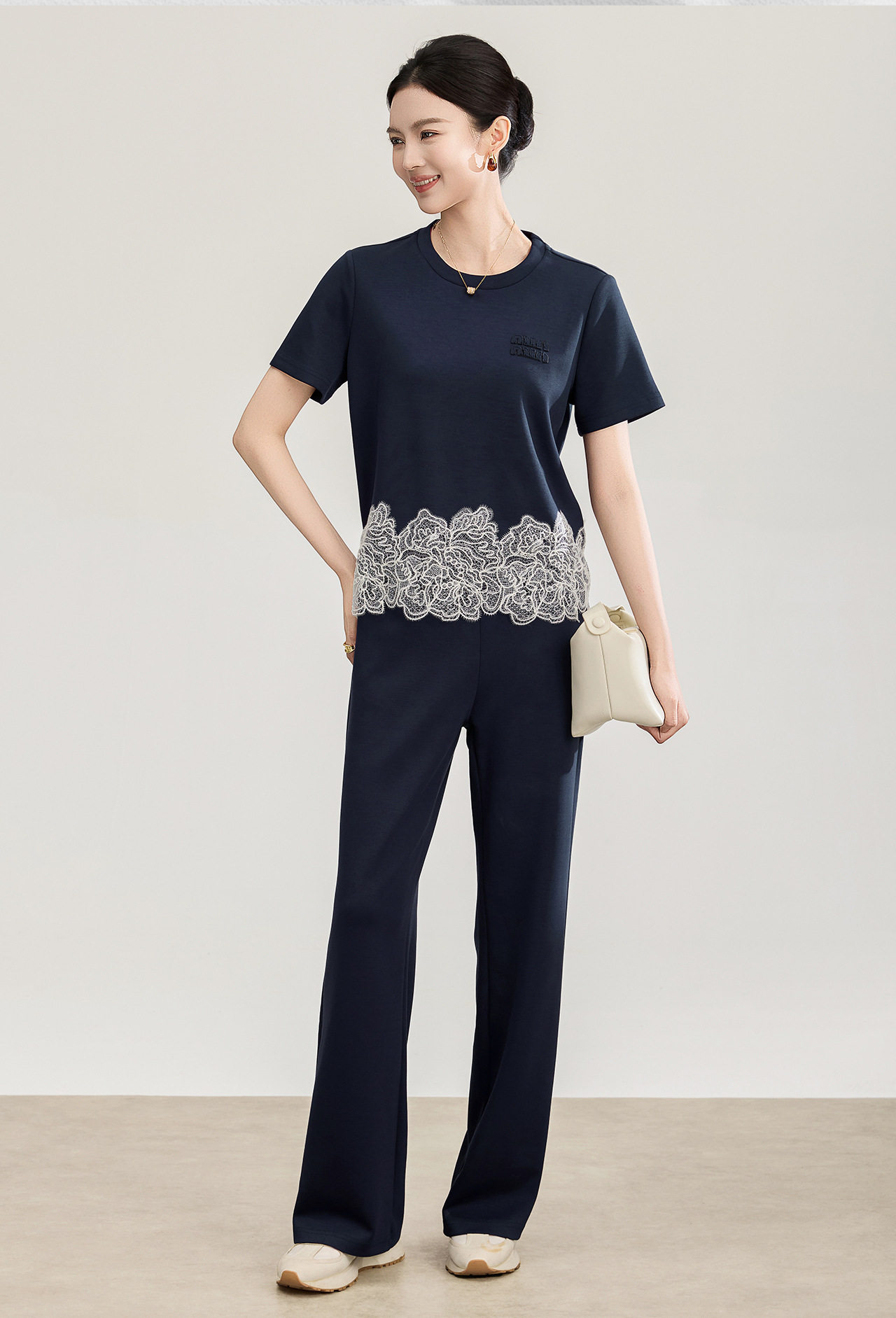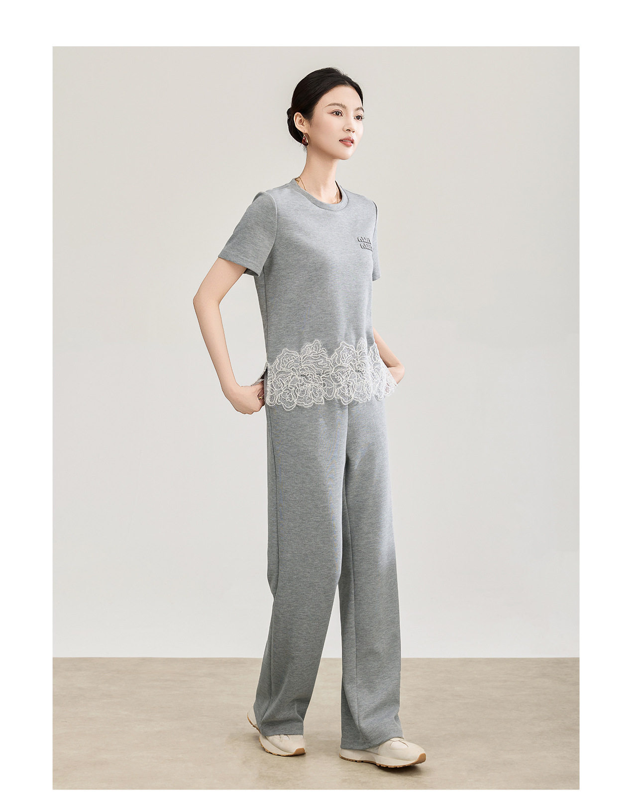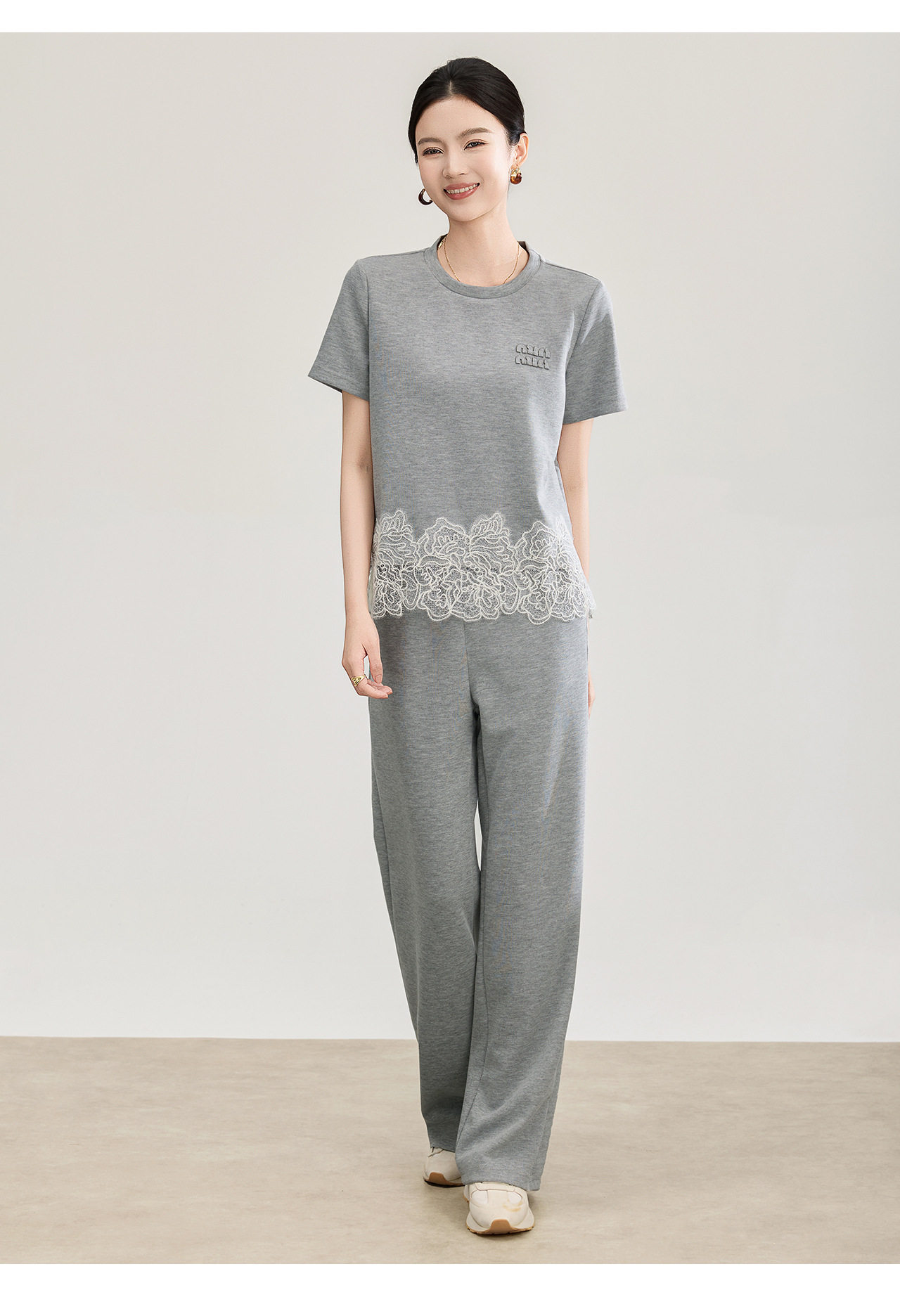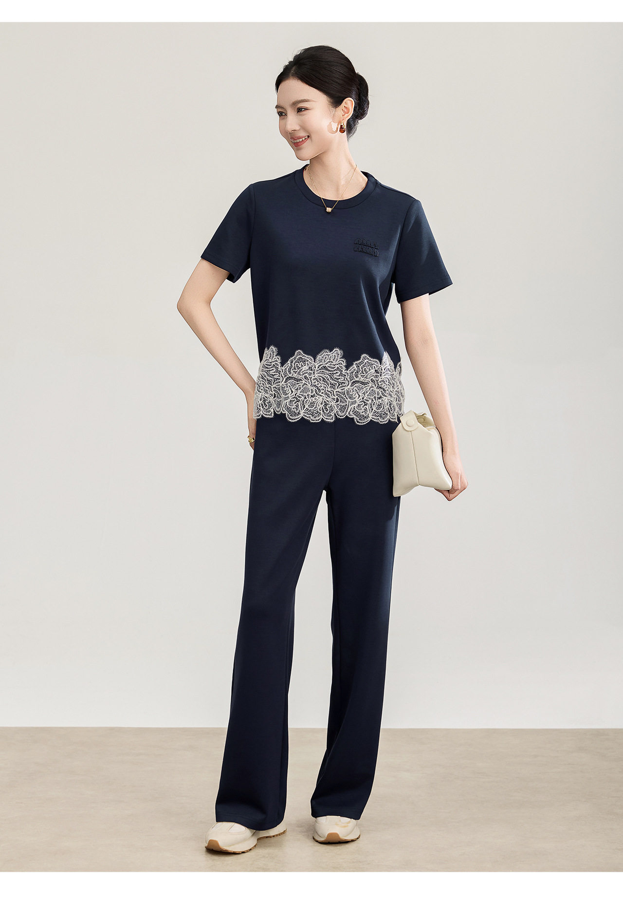 「高货wl」全新升级【铂金会员293/天猫389/差价96】(99419)洛诗琳2026春夏气质水溶蕾丝拼接上衣松紧腰休闲裤两件套