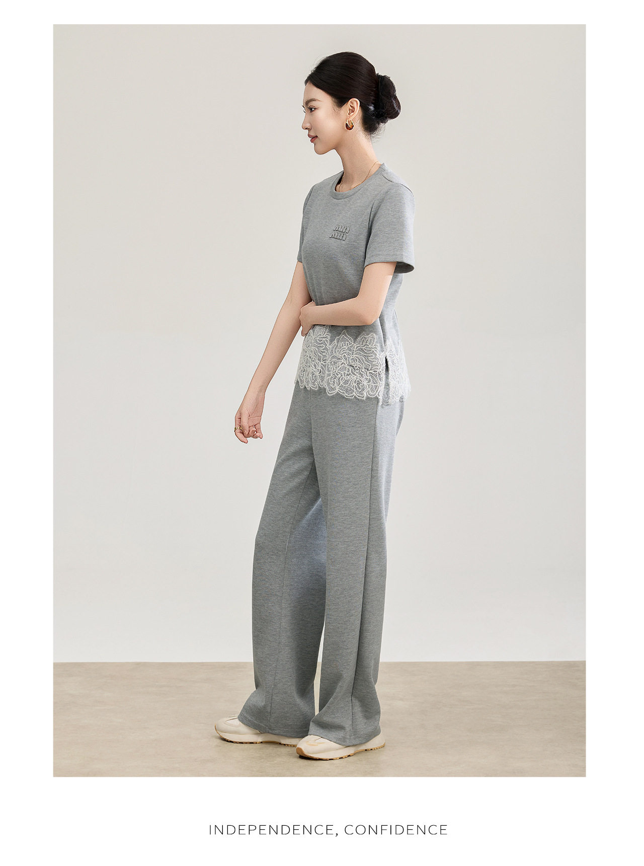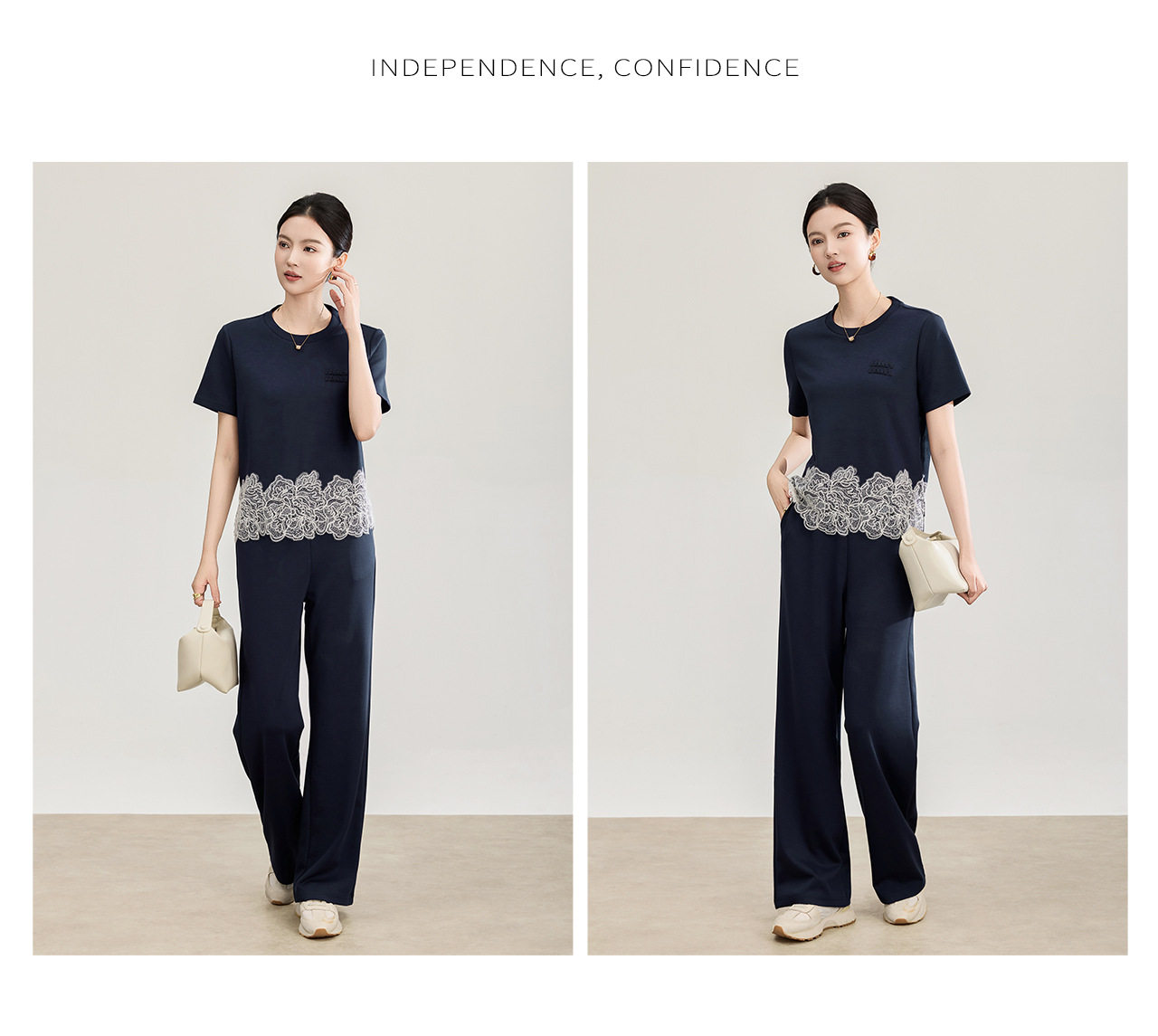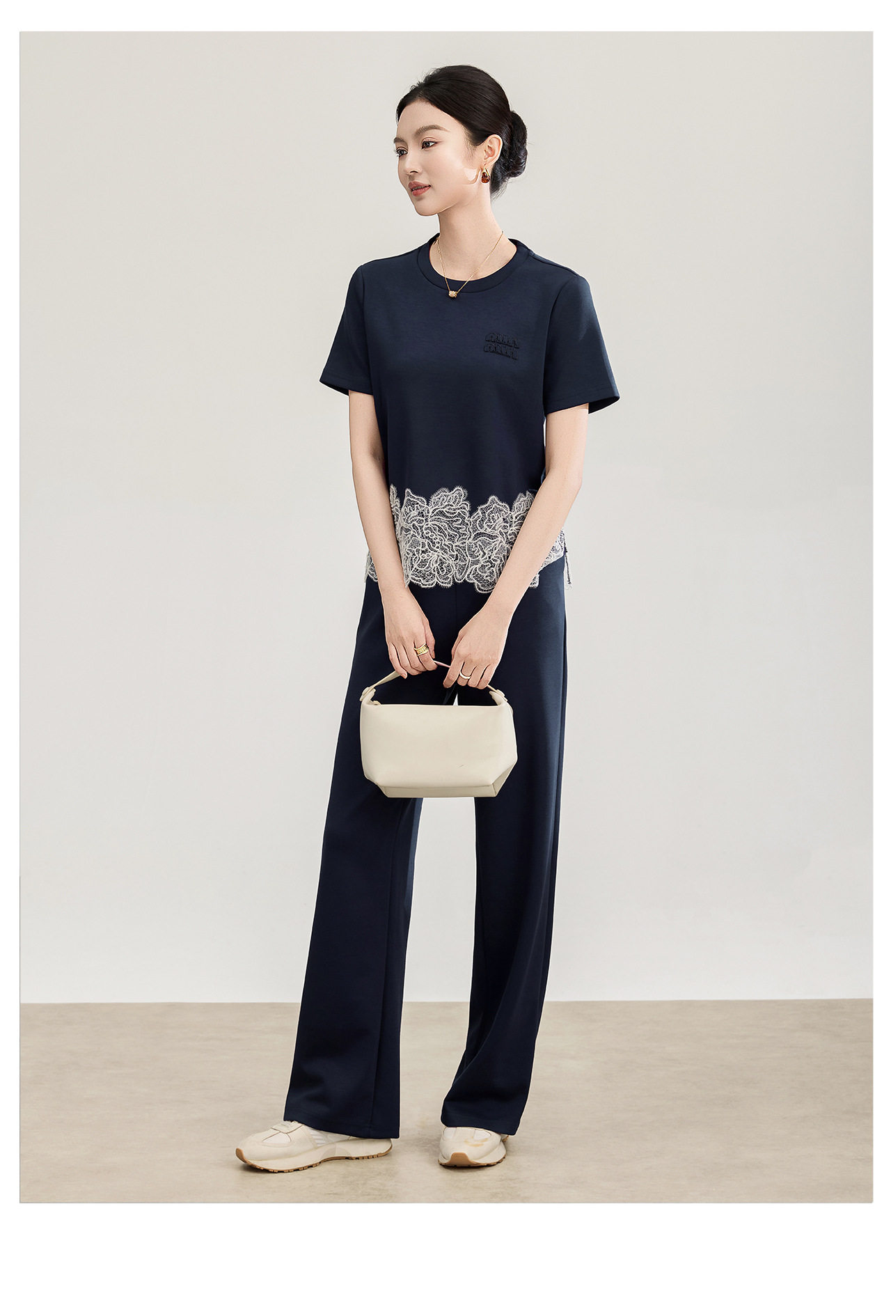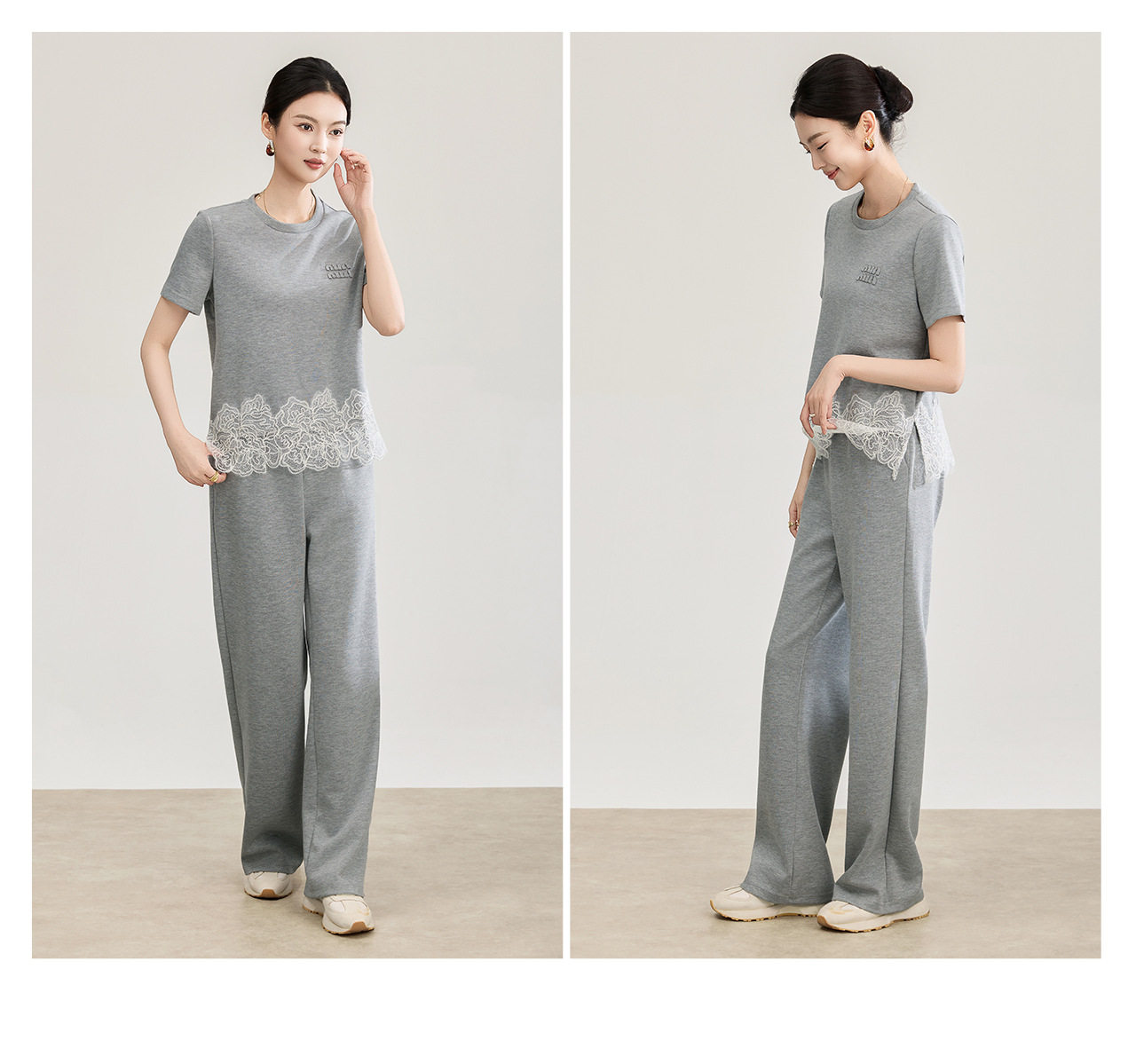 「高货wl」全新升级【铂金会员293/天猫389/差价96】(99419)洛诗琳2026春夏气质水溶蕾丝拼接上衣松紧腰休闲裤两件套