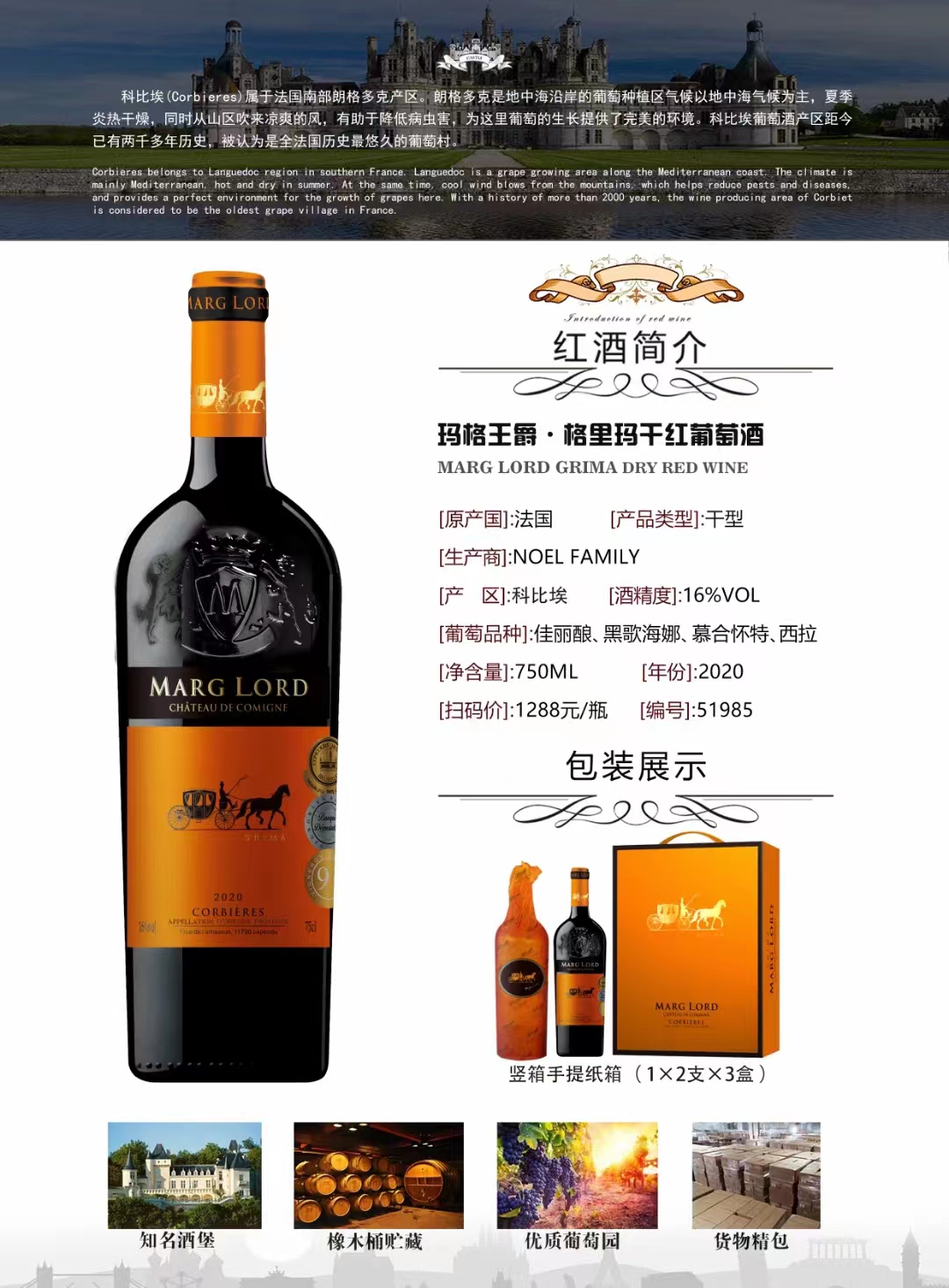 [红酒]玛格王爵格里玛干红葡萄局酒16度750ml