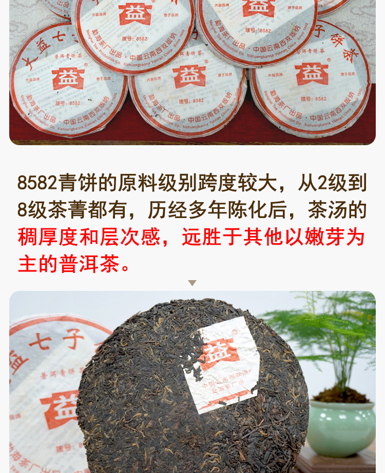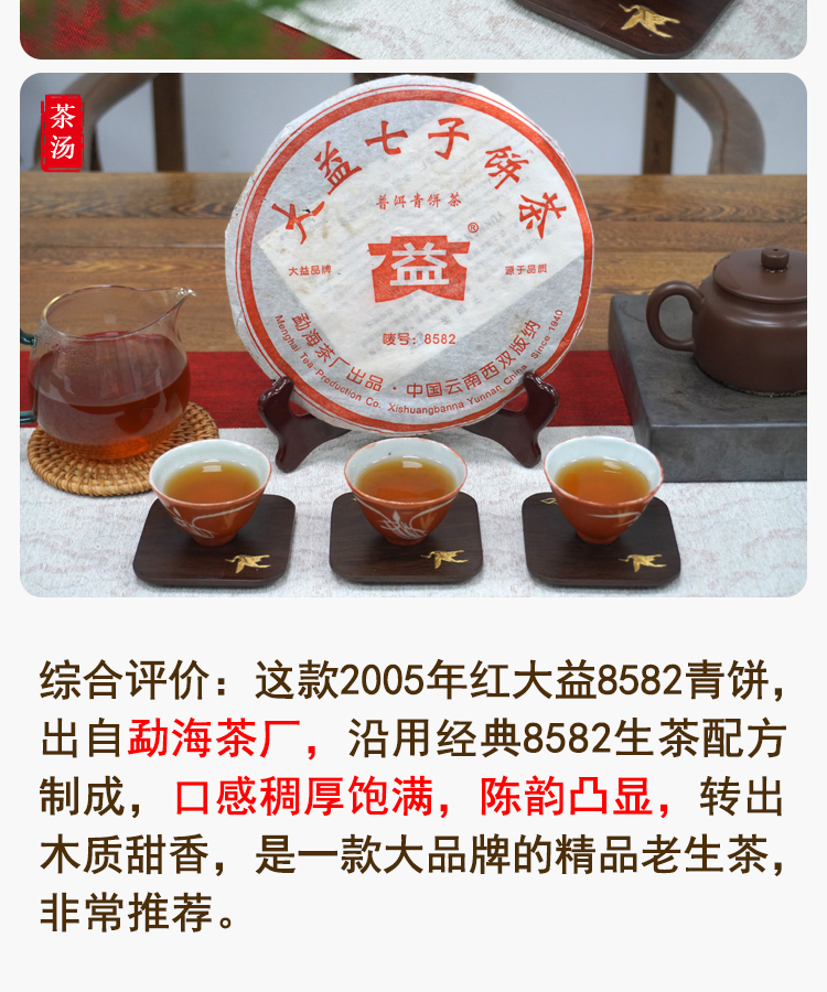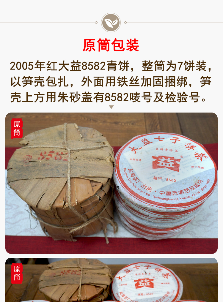 2005年502批次大益8582普洱茶生茶饼 经典大益唛号8582老配方 真品好仓储