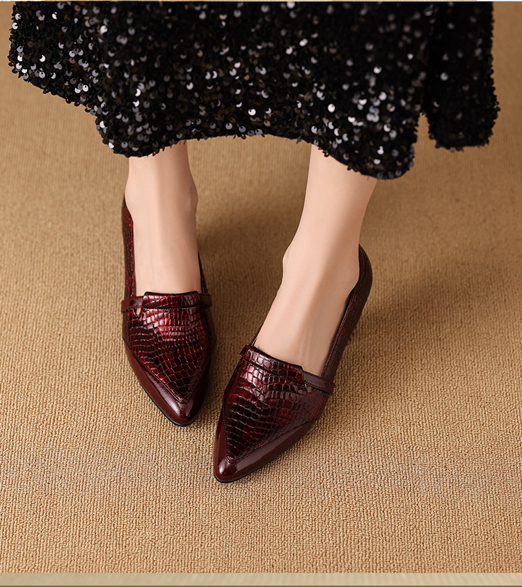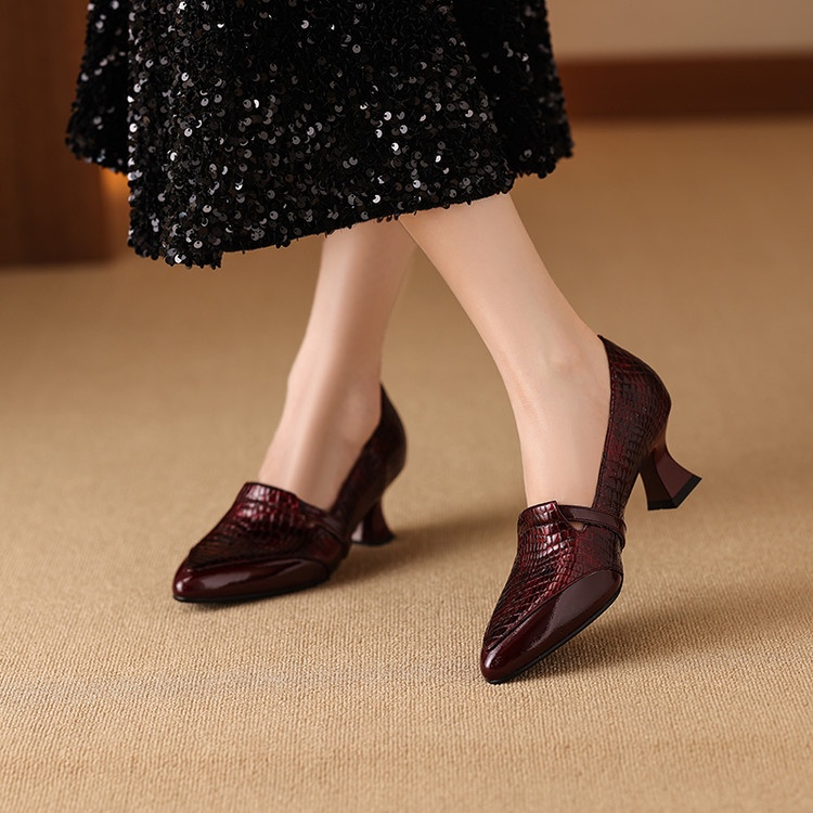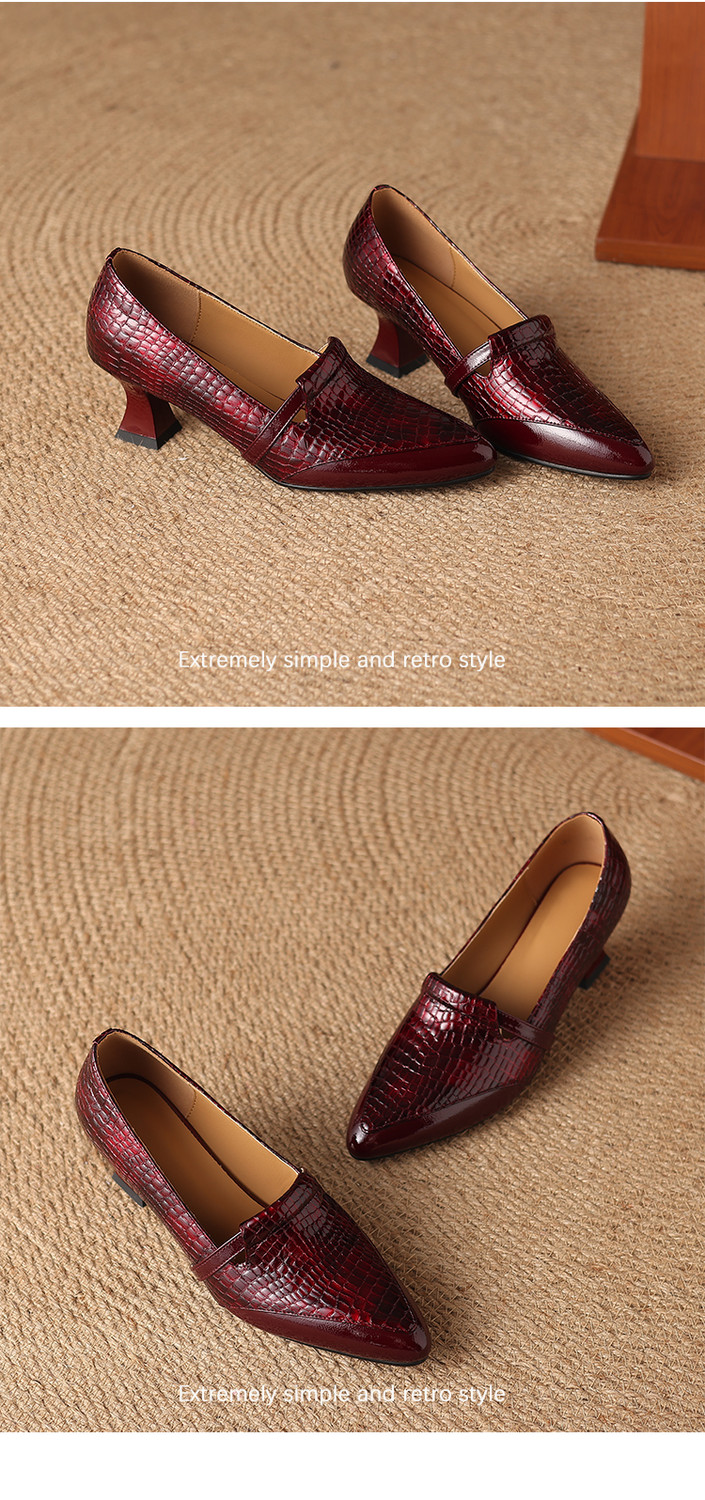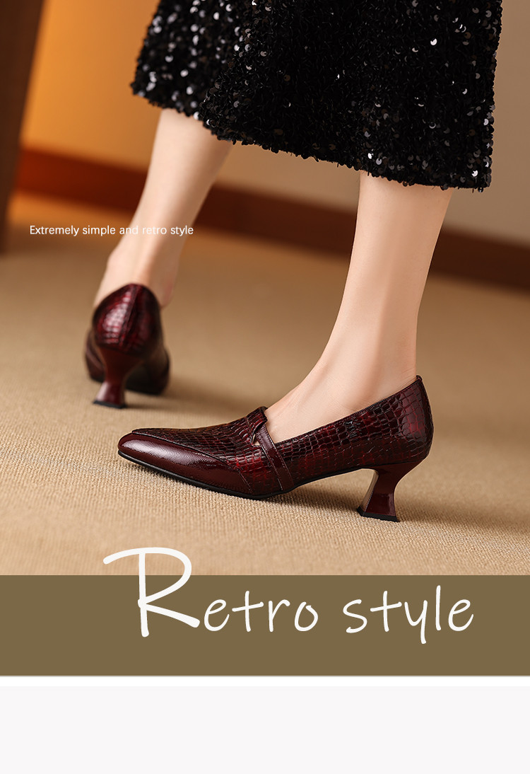 【预售5天】真皮高跟单鞋女春秋新款尖头小皮鞋粗跟时尚优雅百搭女鞋SY&fh506