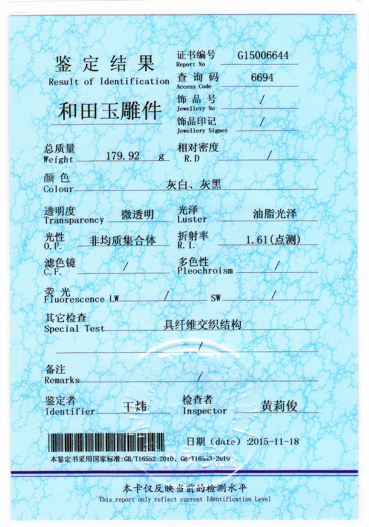 证书号:G15006644