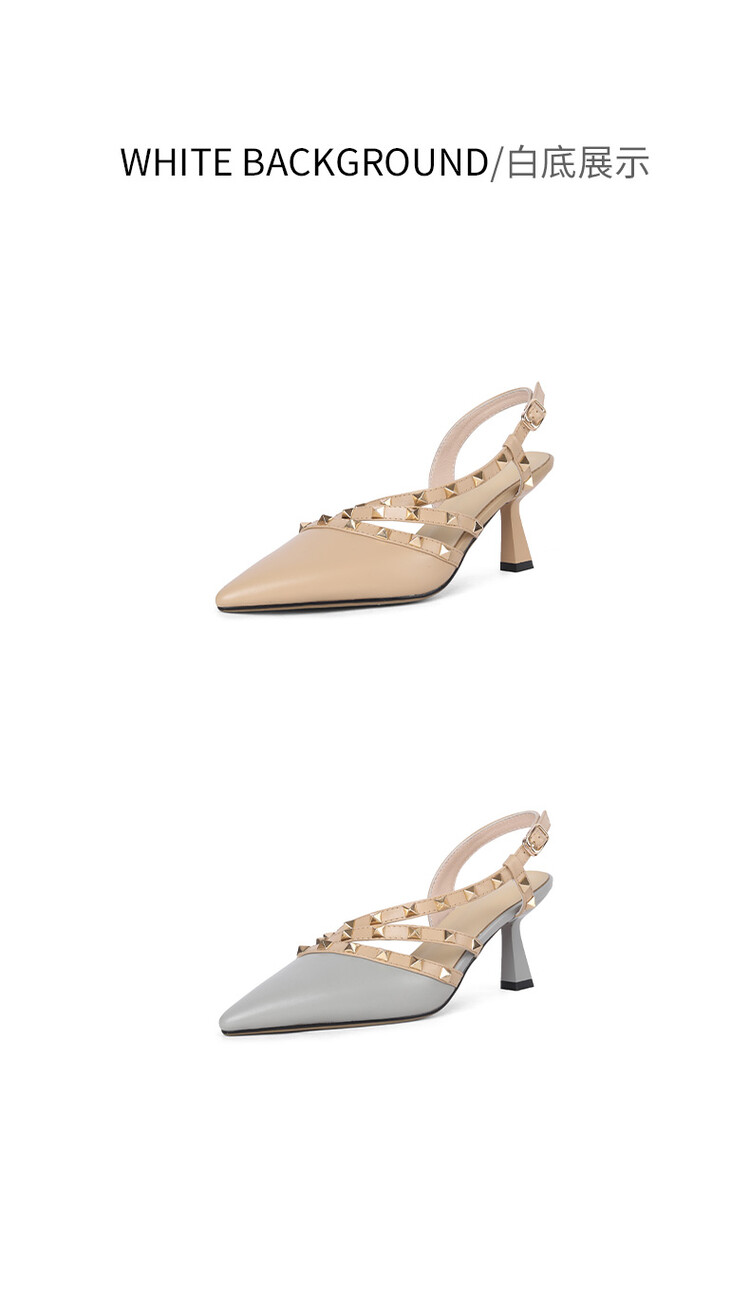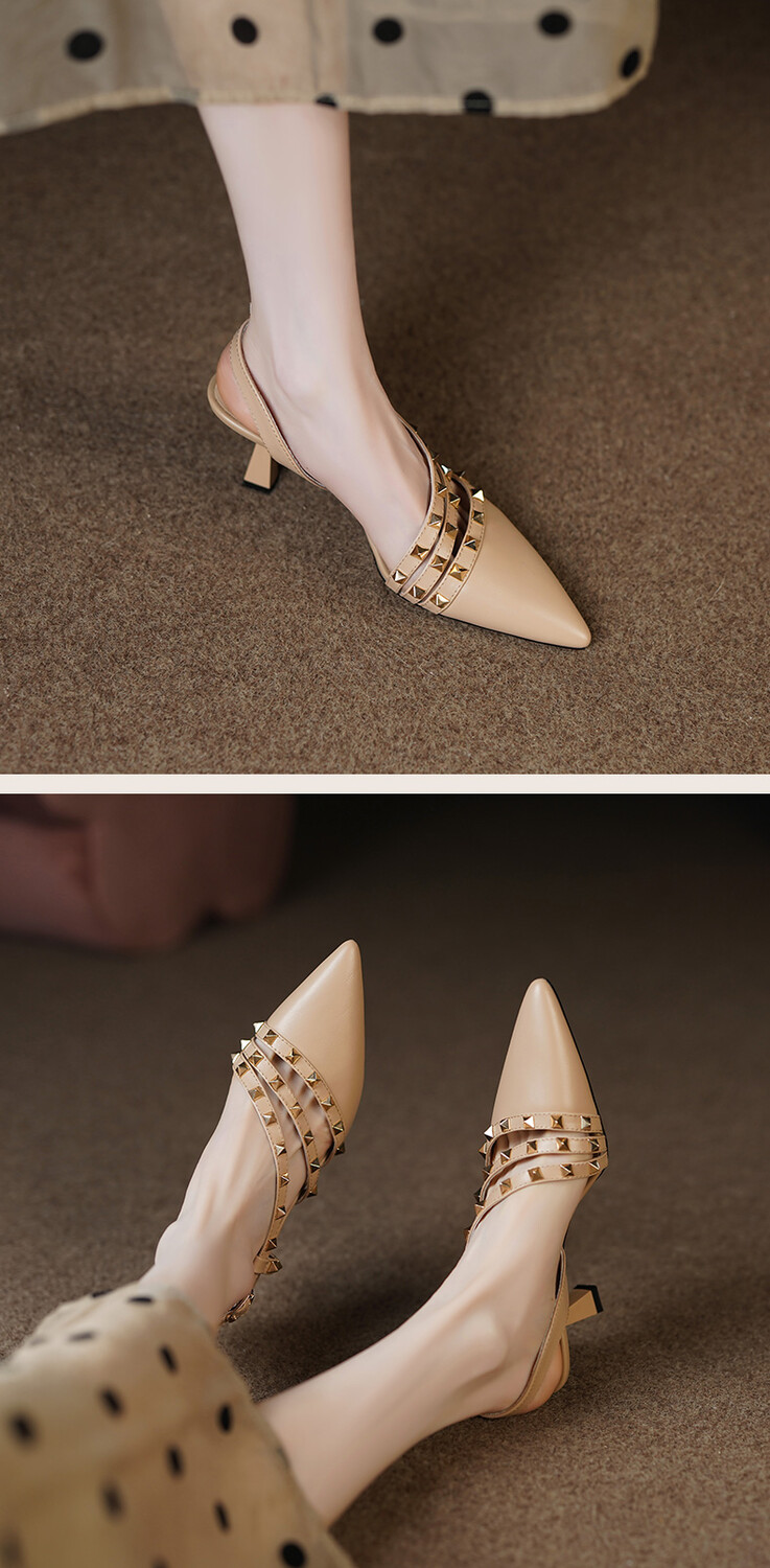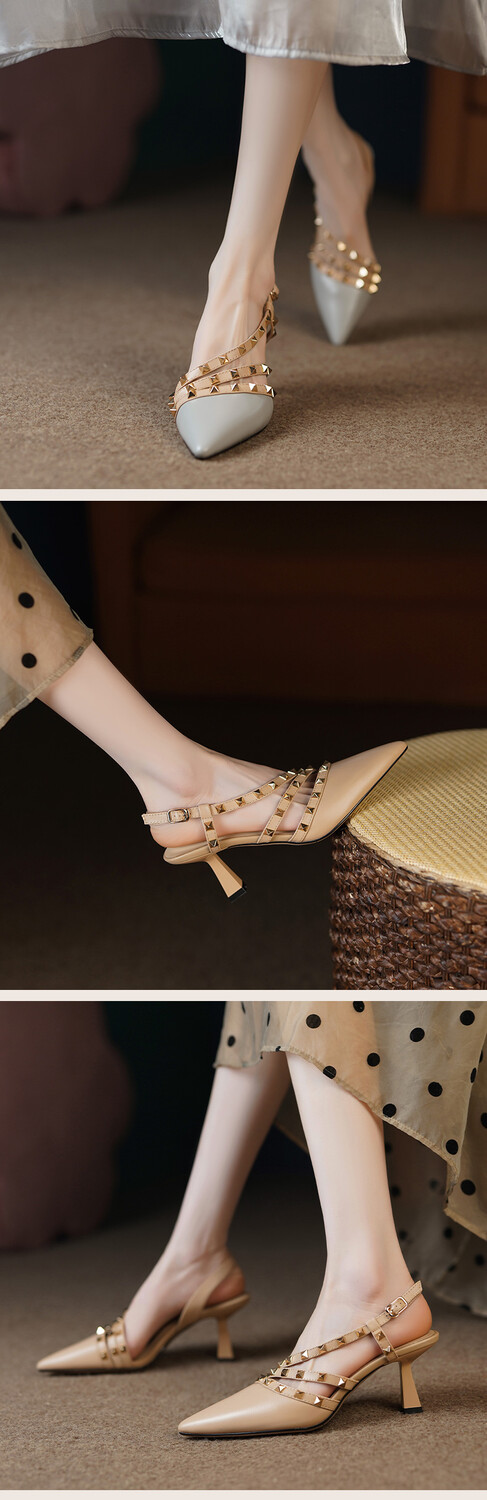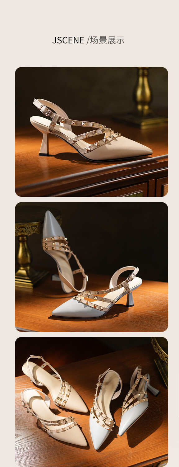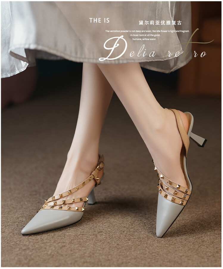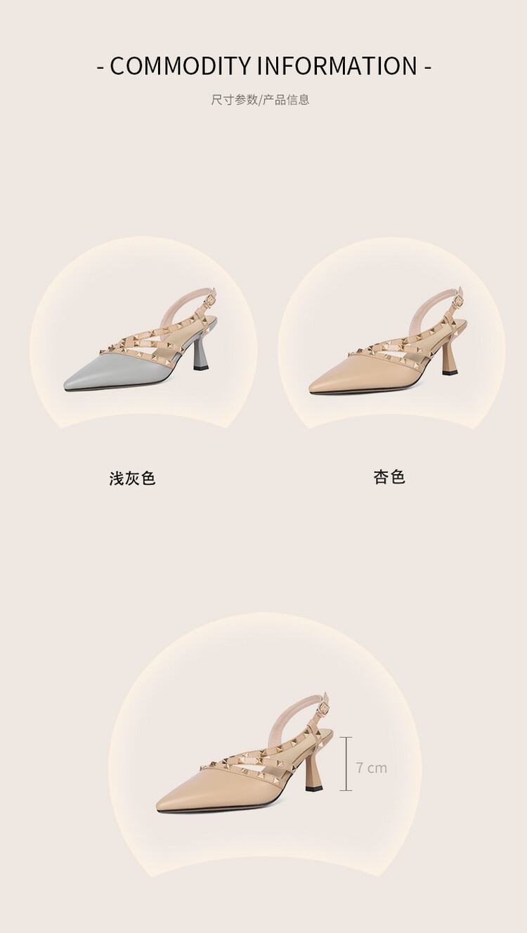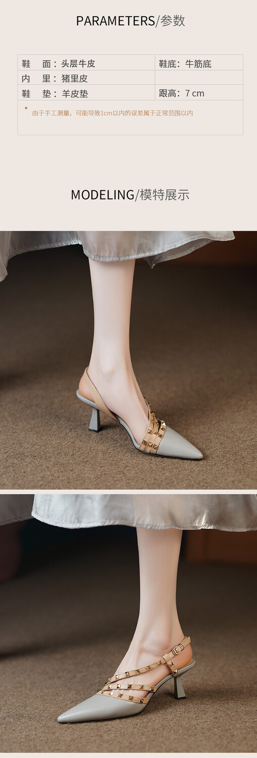 【预售5天】罗马铆钉包头细跟凉鞋女夏季新款时尚性感尖头后空高跟鞋HYDD&C-1055