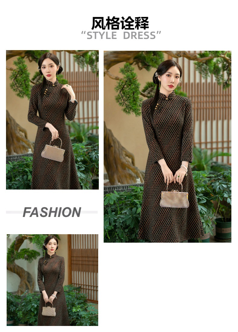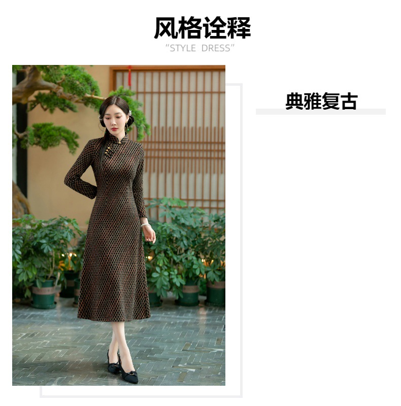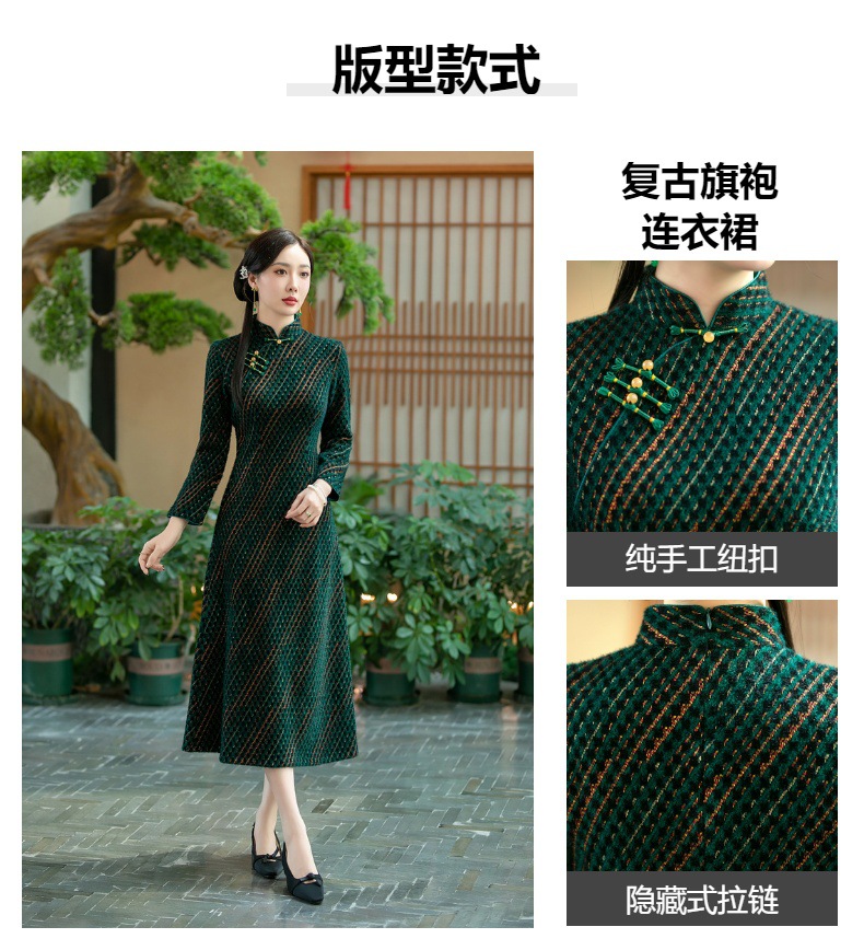 时尚显瘦,新款旗袍冬款加厚水貂绒长款复古高档连衣裙SYG-738