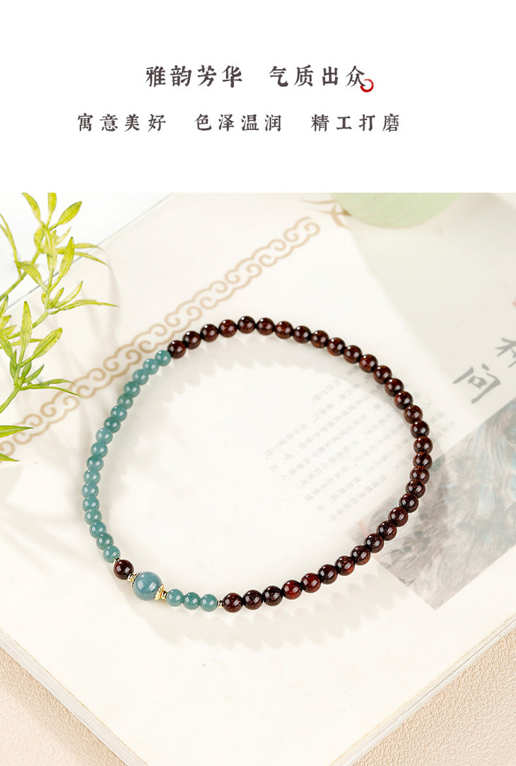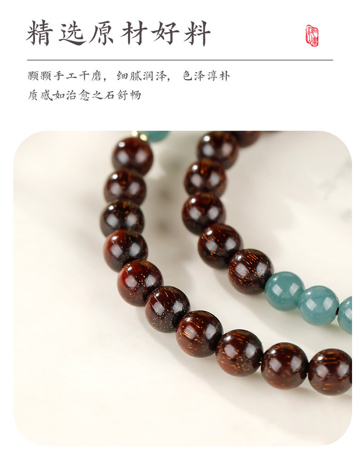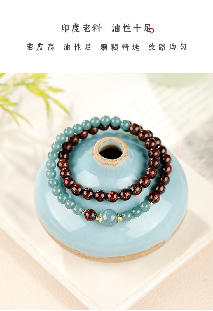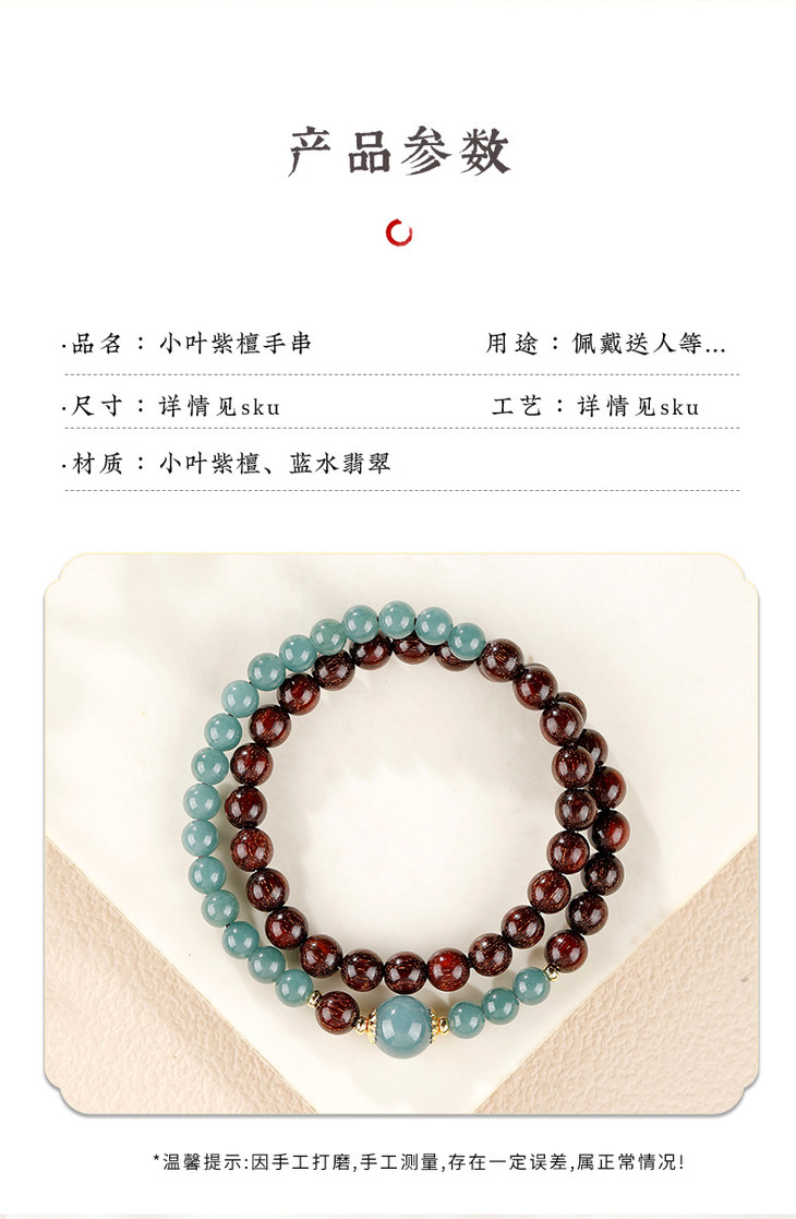 天然蓝水翡翠串珠手串,半山半水木质紫檀手链LJX-878