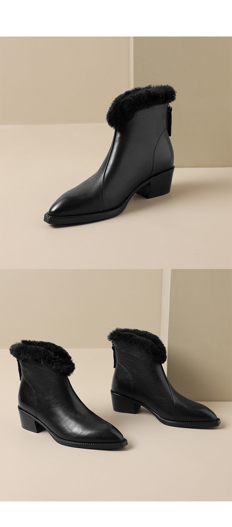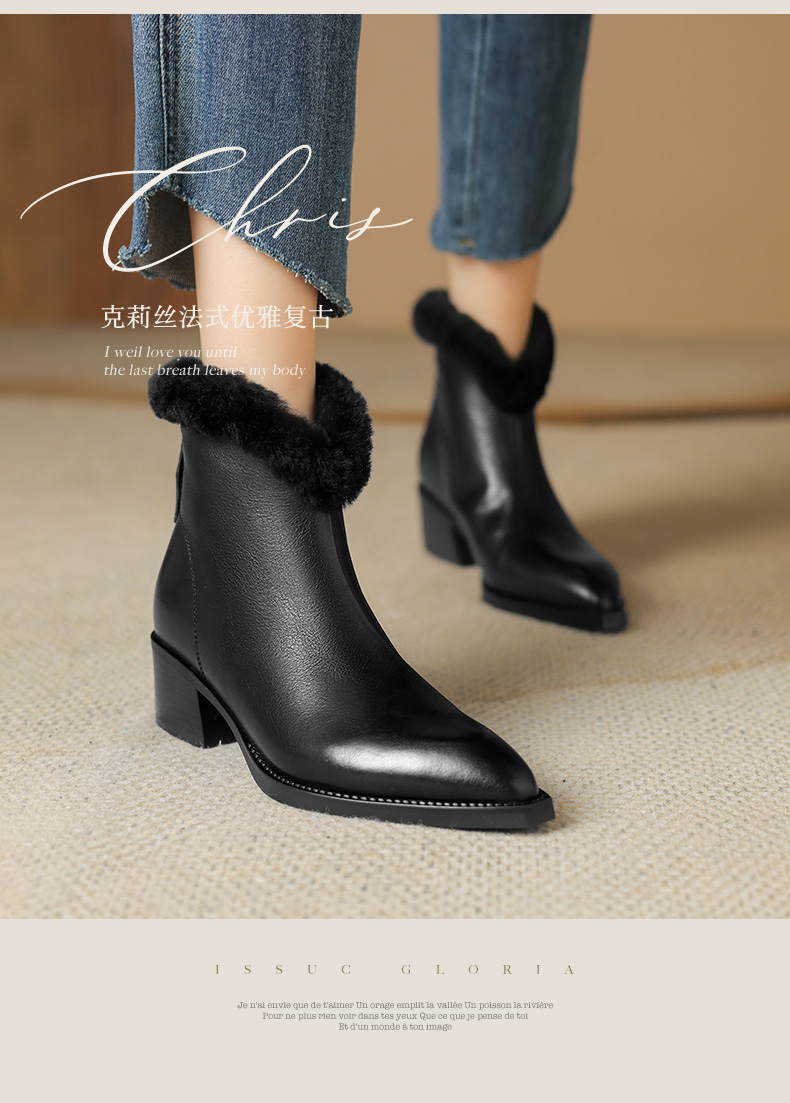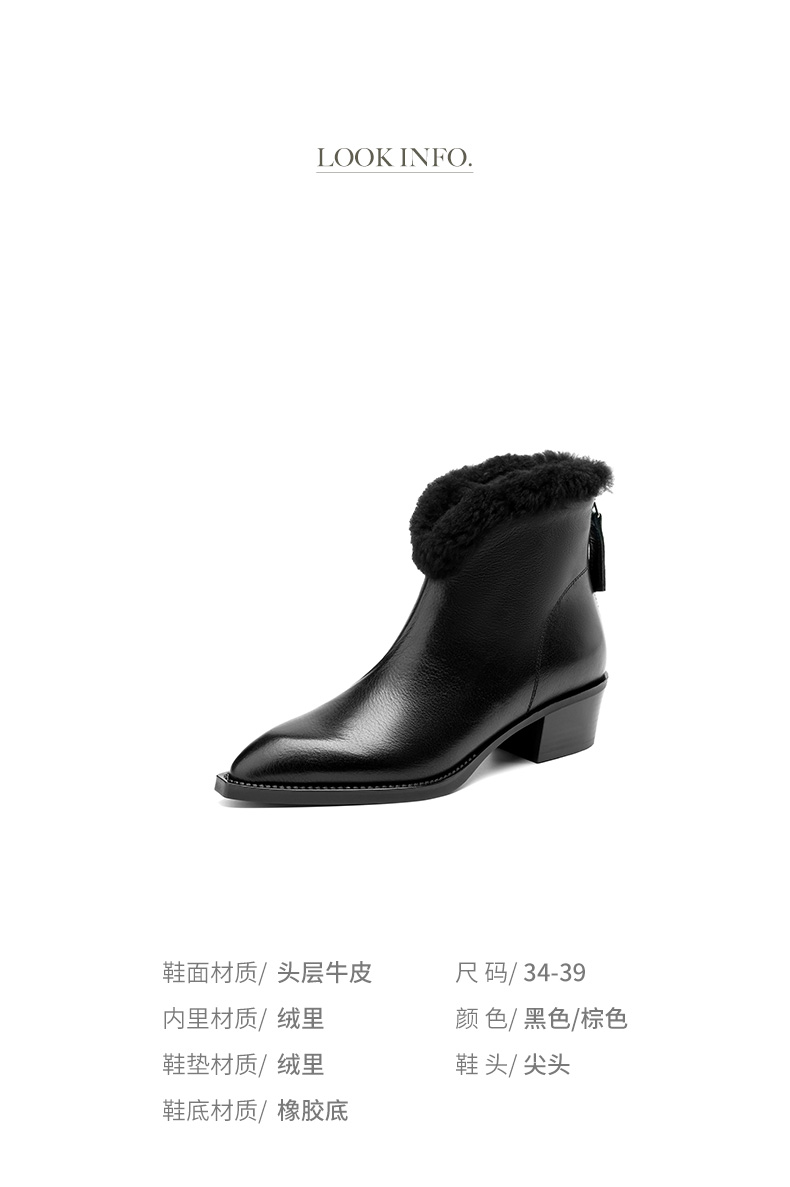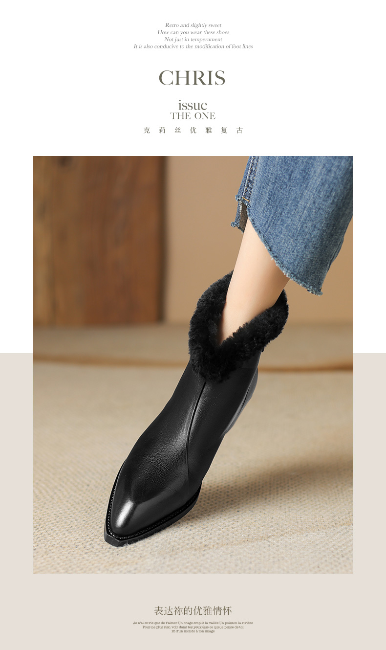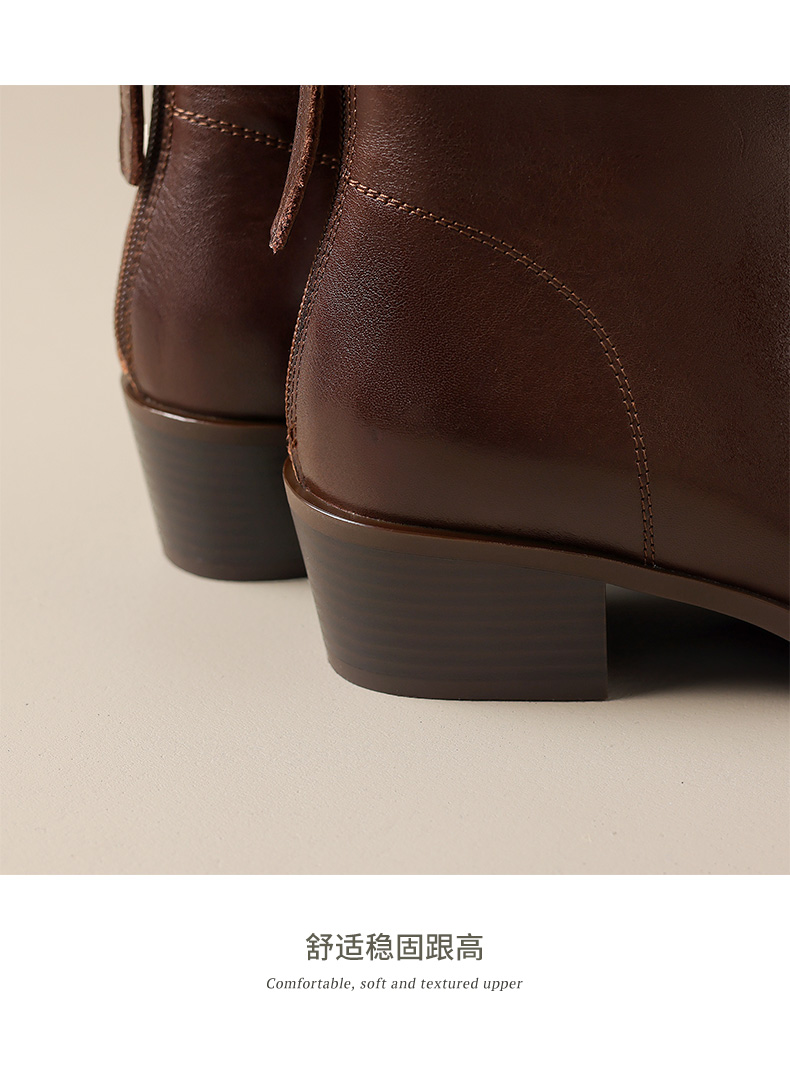 冬季新款,尖头真皮粗跟短靴YT-939-16