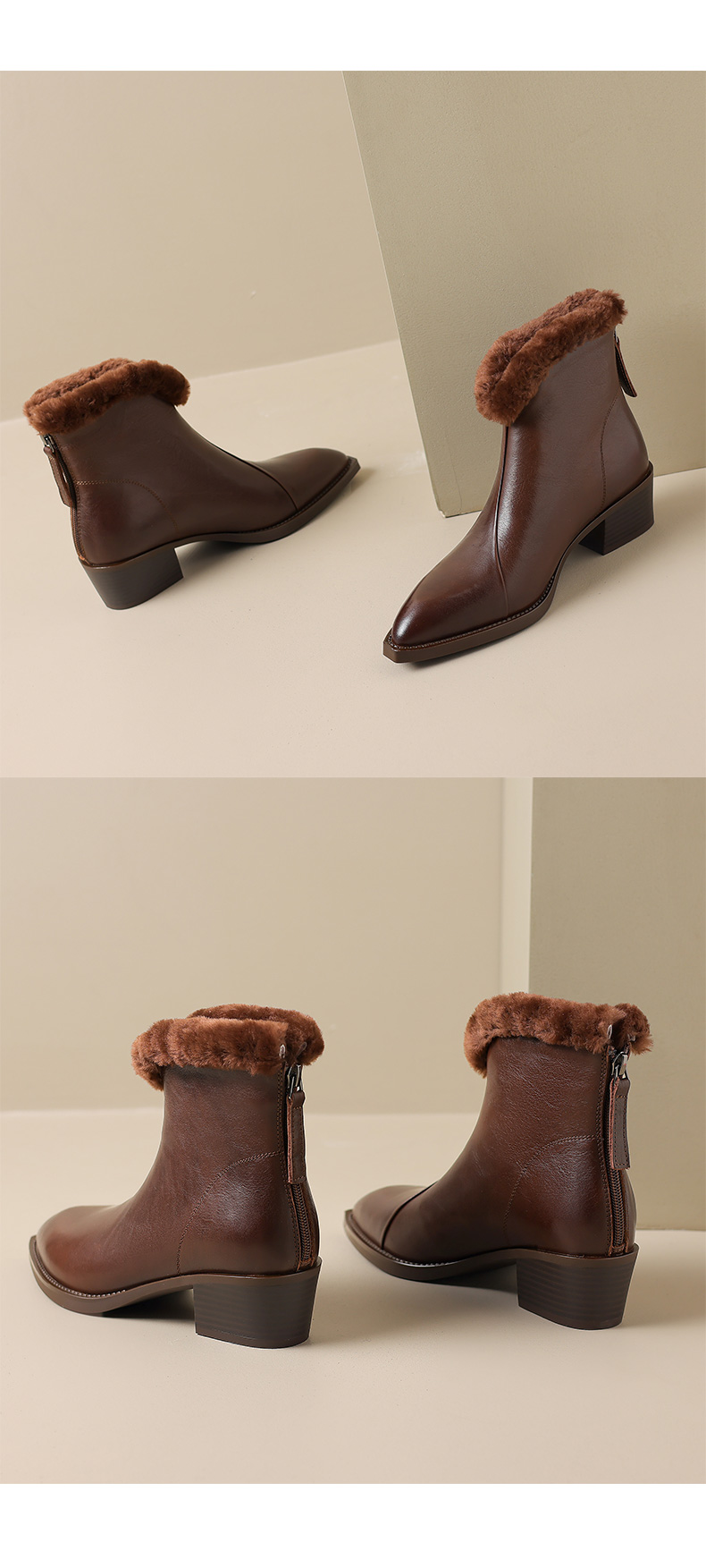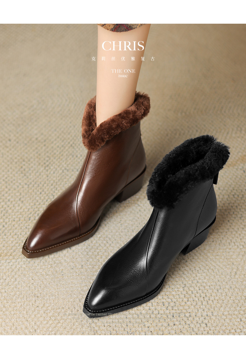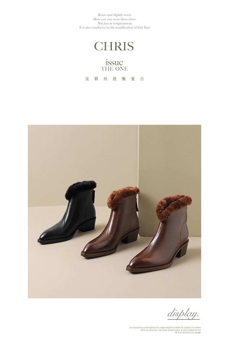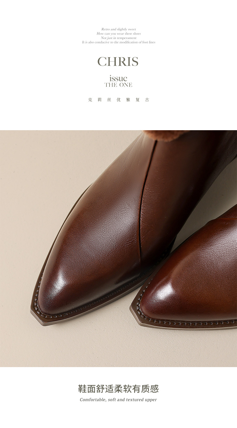 冬季新款,尖头真皮粗跟短靴YT-939-16